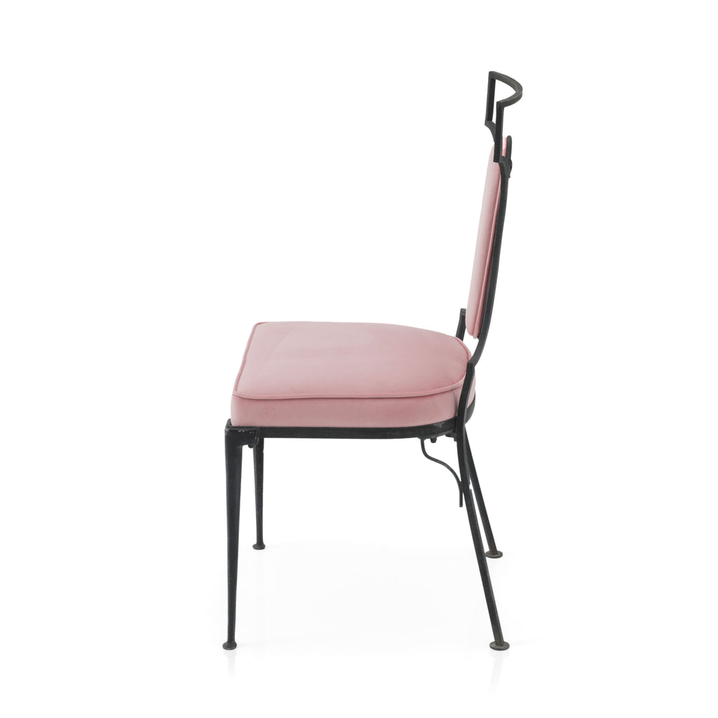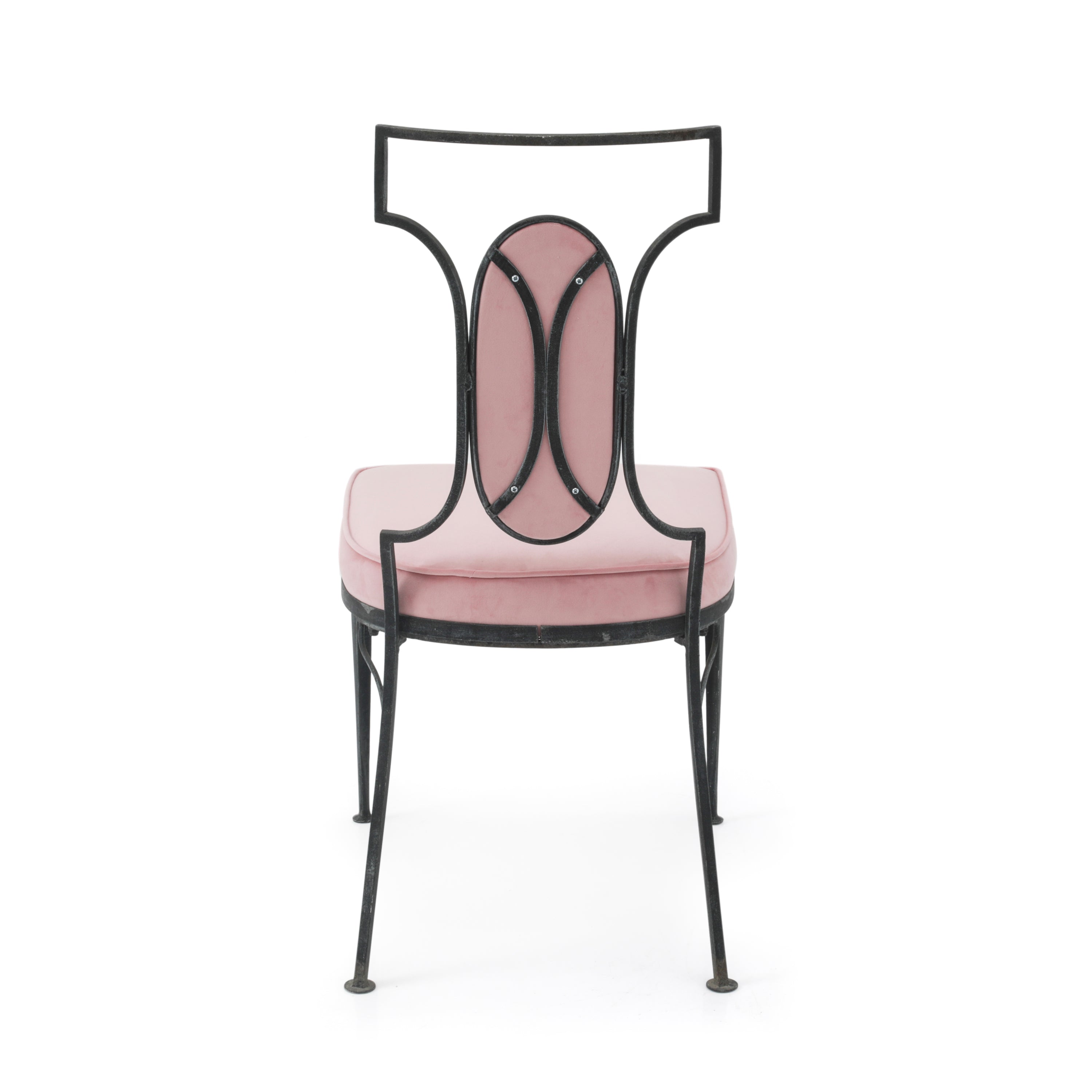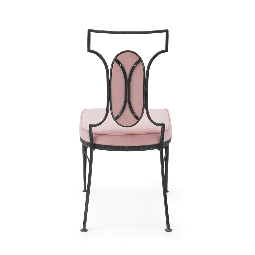 Details: Green floral vinyl vintage dining chair with metal legs (rented separately from matching table and chairs) Dimensions: 36" H x 15" W x 19" D...