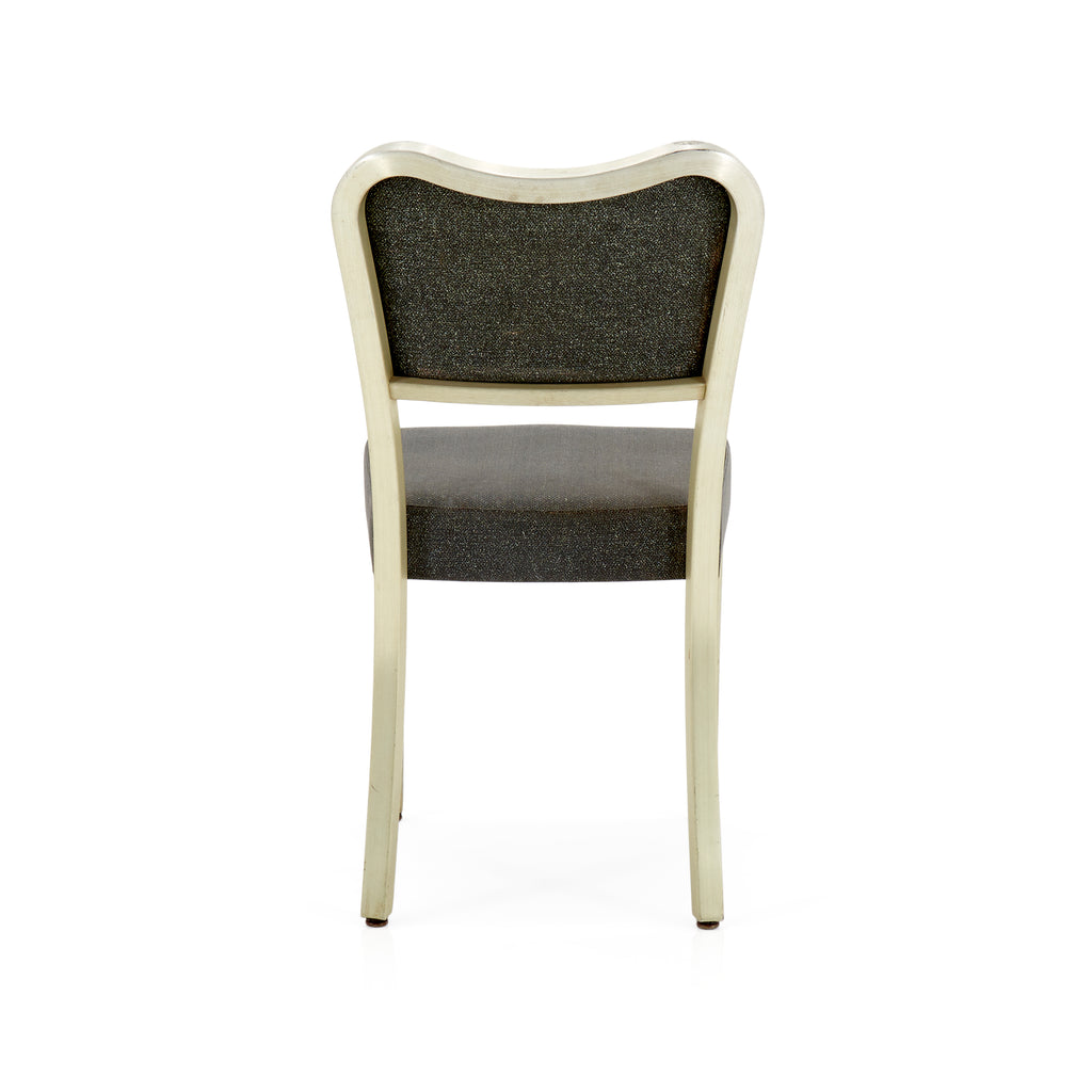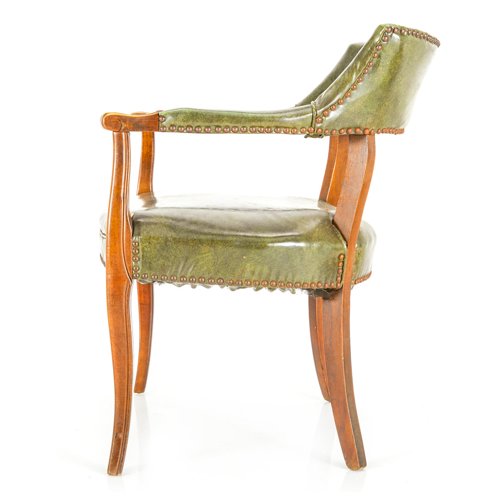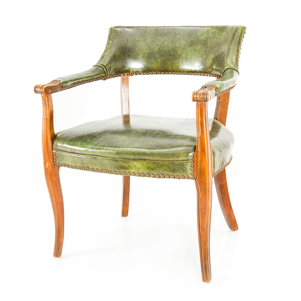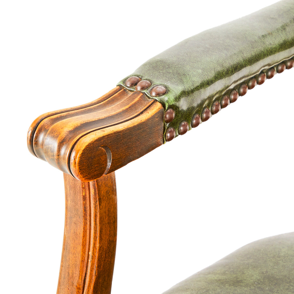 Details: Thonet dining chair with wooden legs and frame and dark green vinyl upholstered seat and back Dimensions: 30" H x 17.5" W x 18.5" D Quantity:...