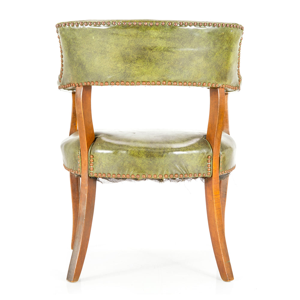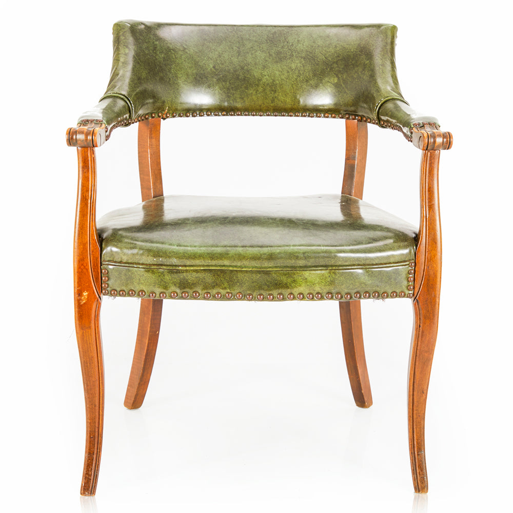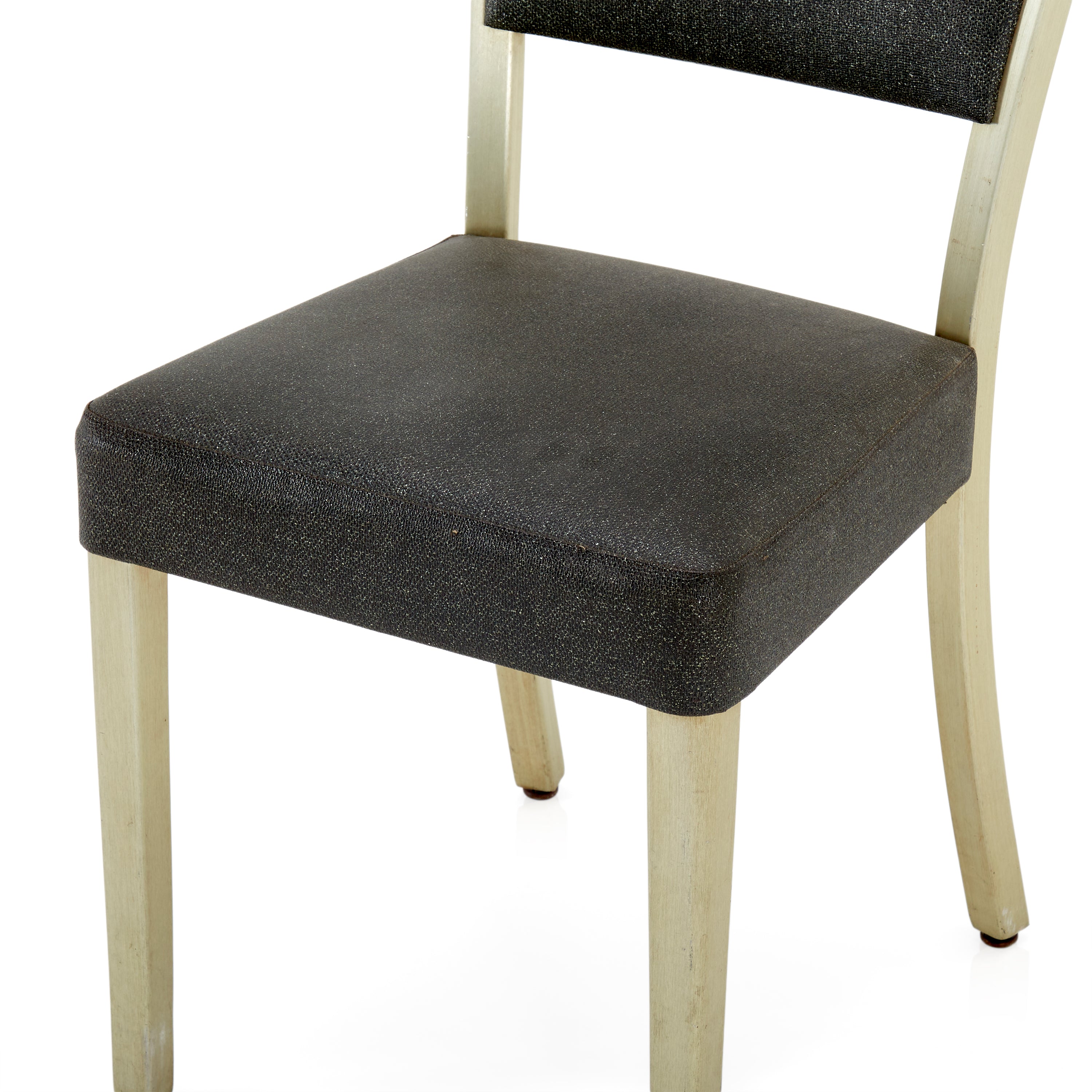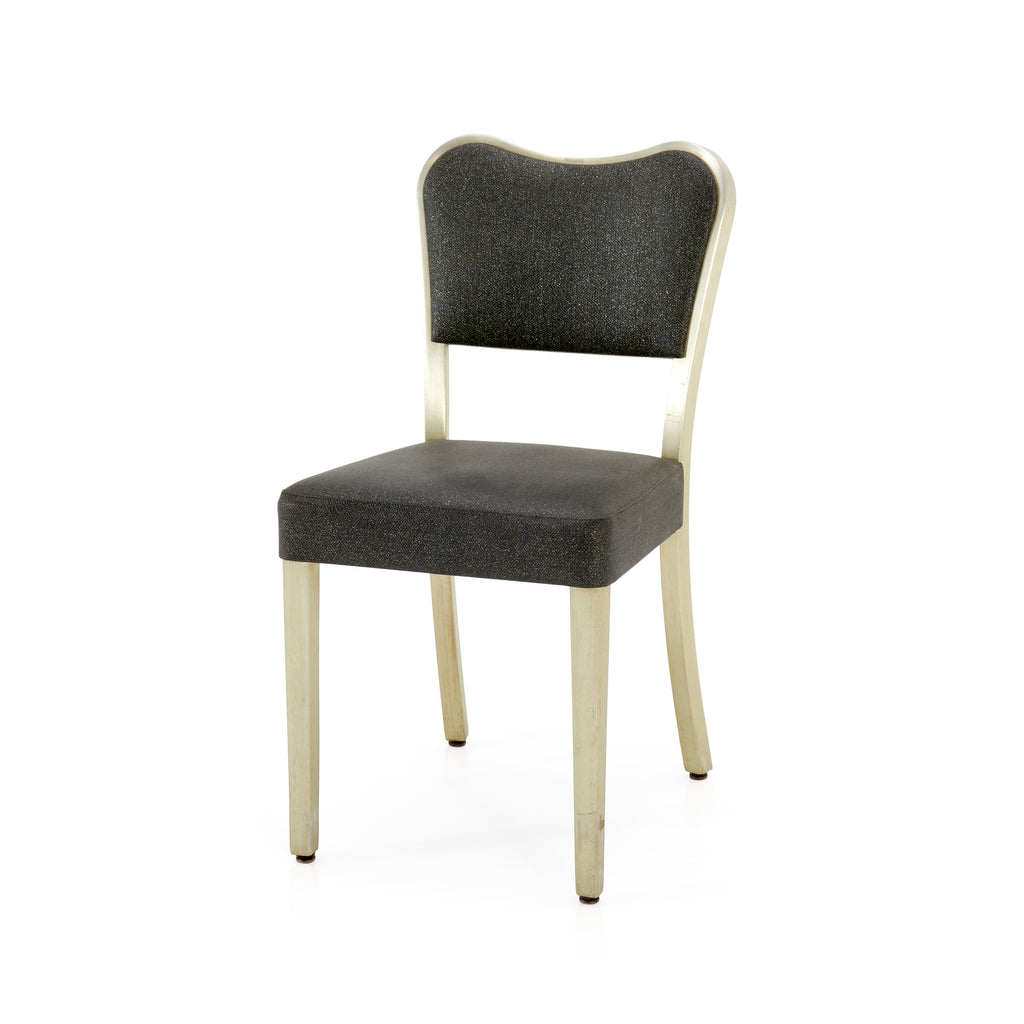 Details: Thonet dining chair with wooden legs and frame and dark green vinyl upholstered seat and back Dimensions: 30" H x 17.5" W x 18.5" D Quantity:...