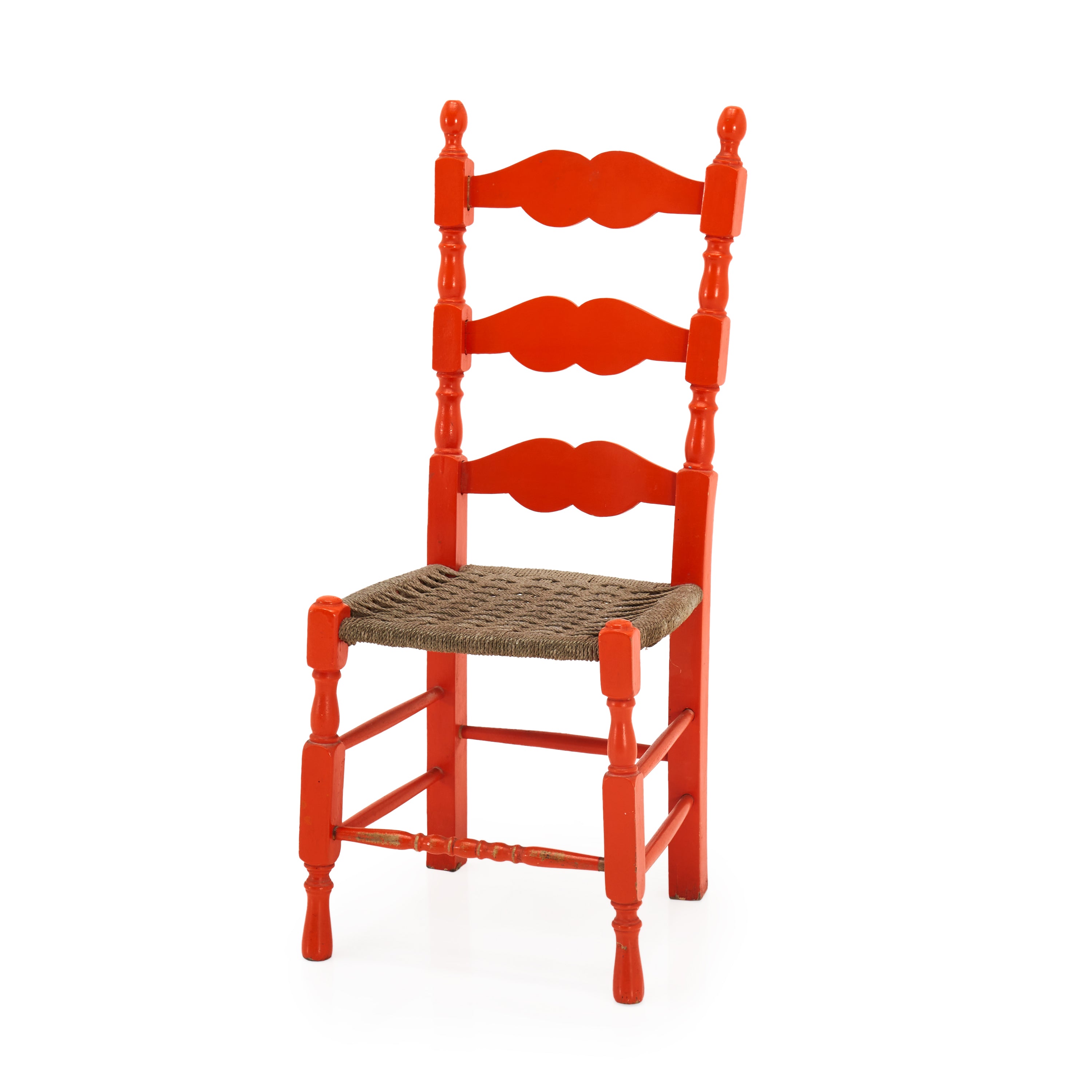 Details: Memphis Style bowling chair with orange and purple frame and bowling ball feet and back **These are actually bowling balls - HEAVY! - if renting,...