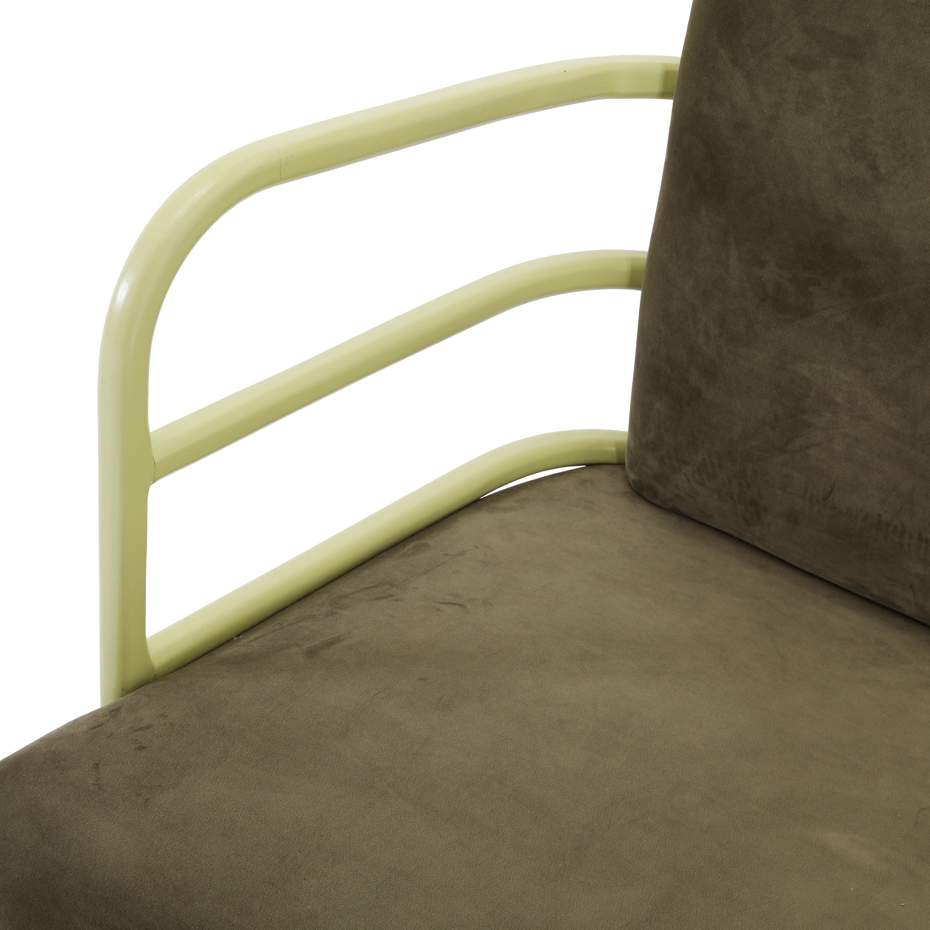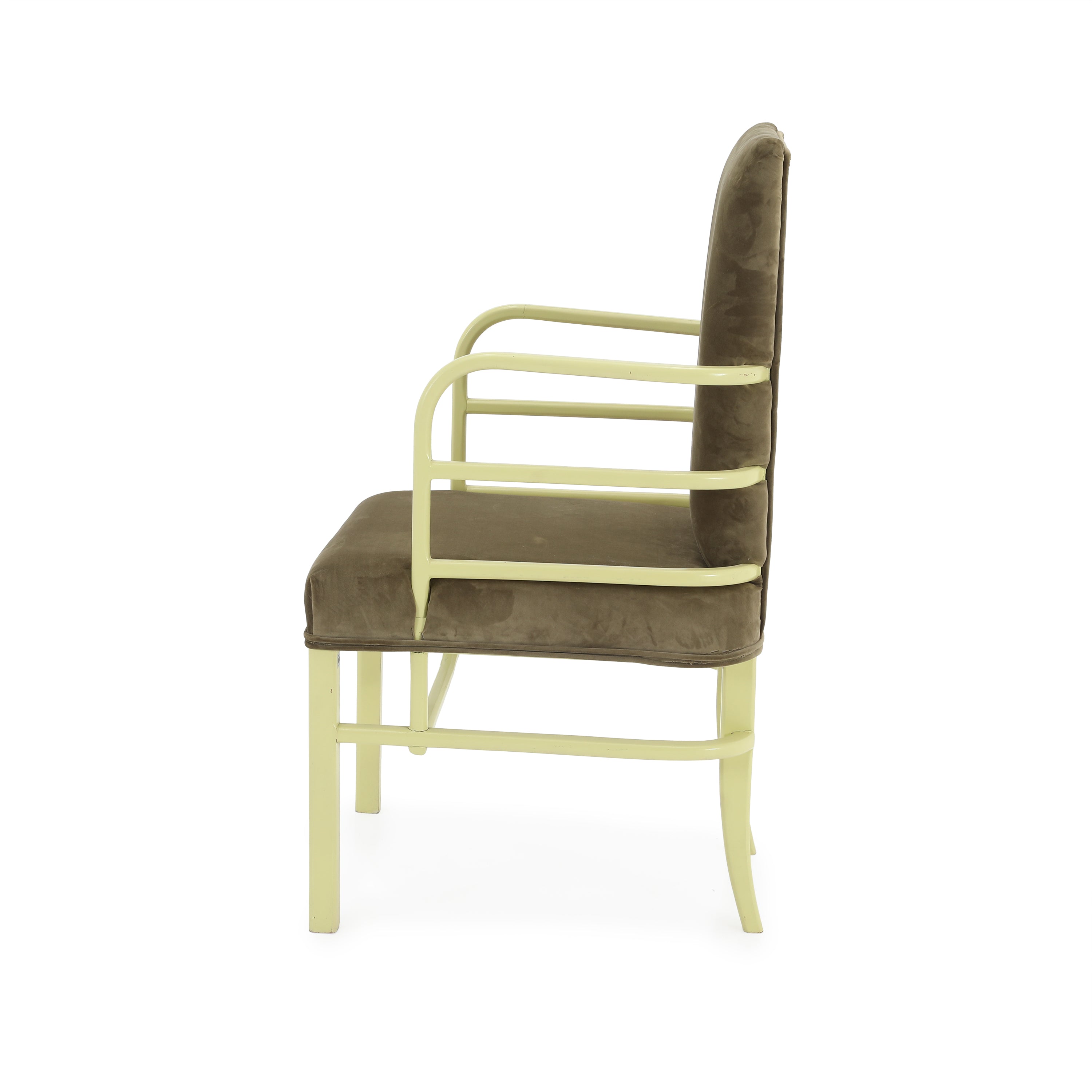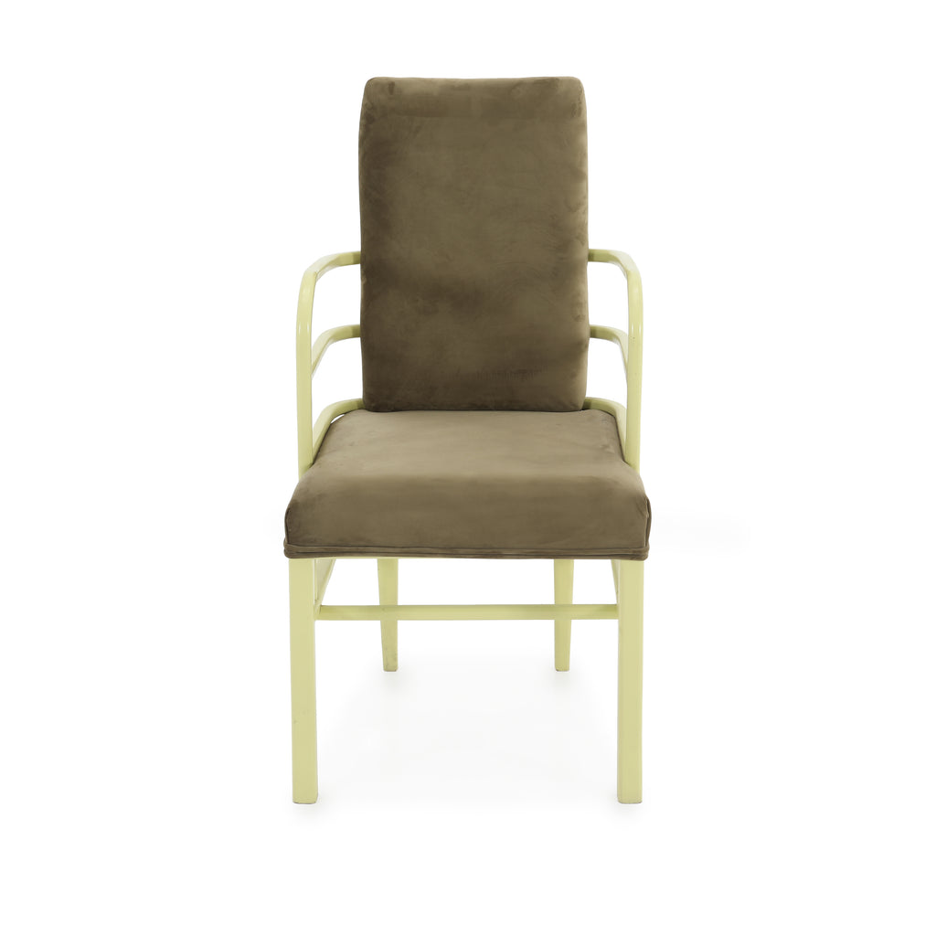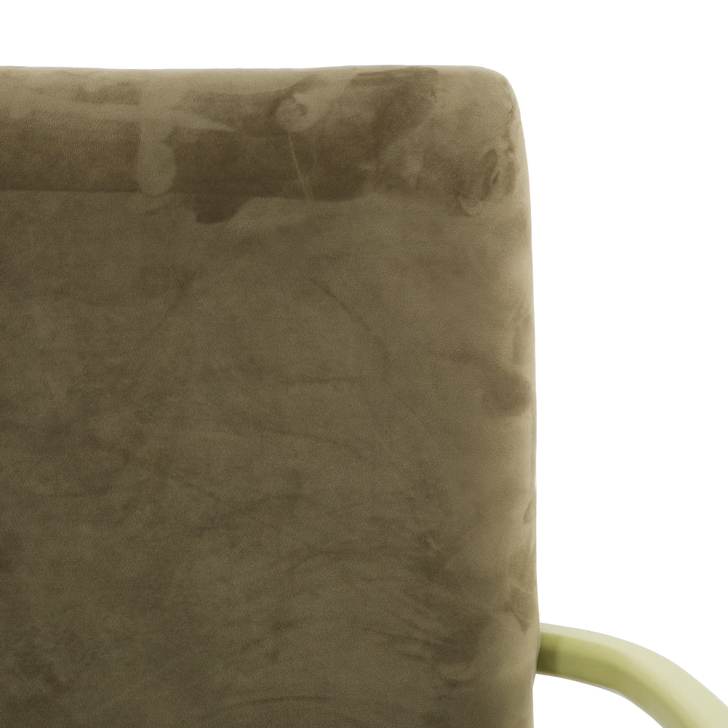 Details: High-back velvet chairs with green upholstery and light green frame.