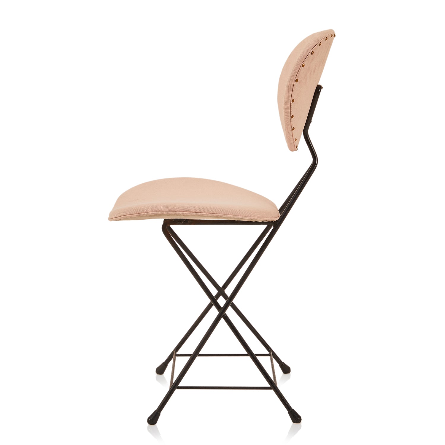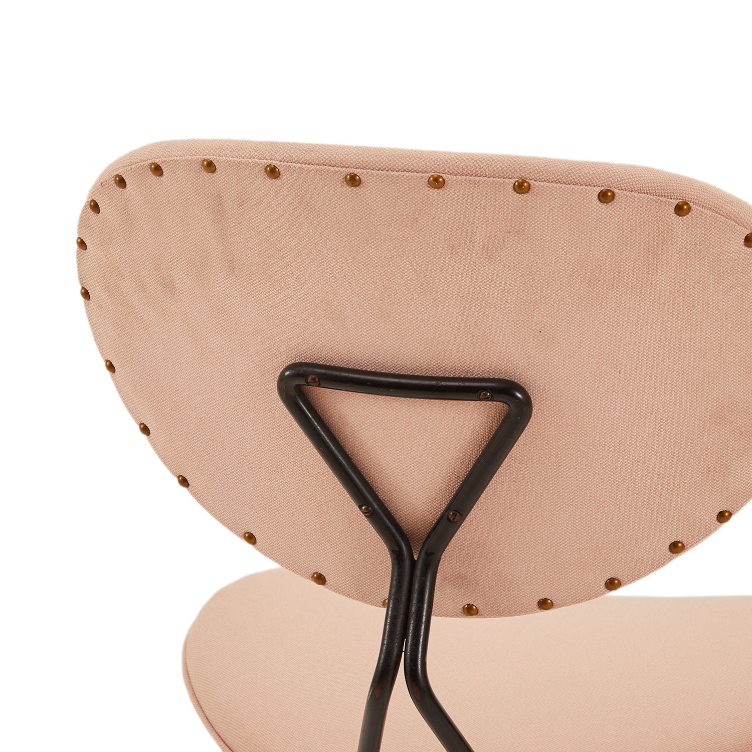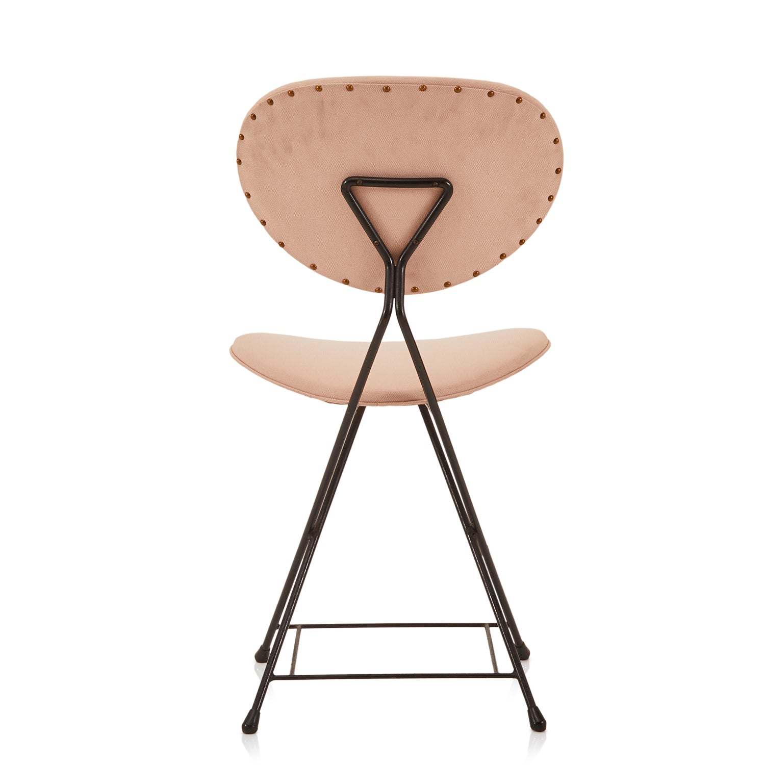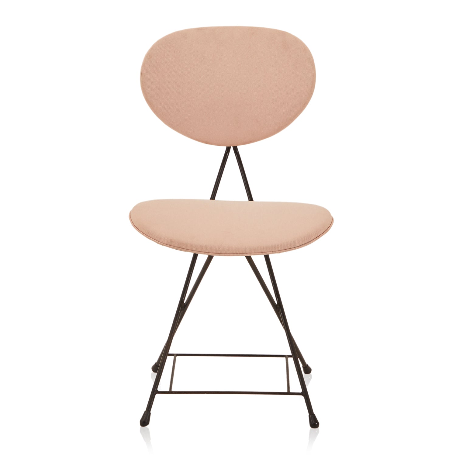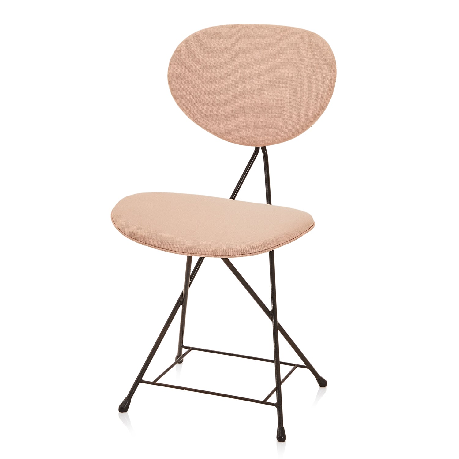 Details: Stylish side chair with a modern triangular black wire frame and round pale pink cushions