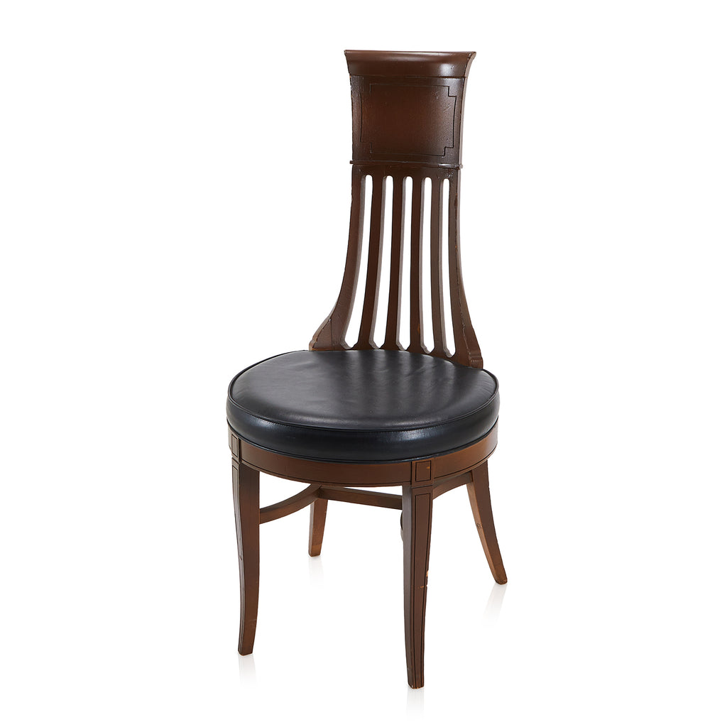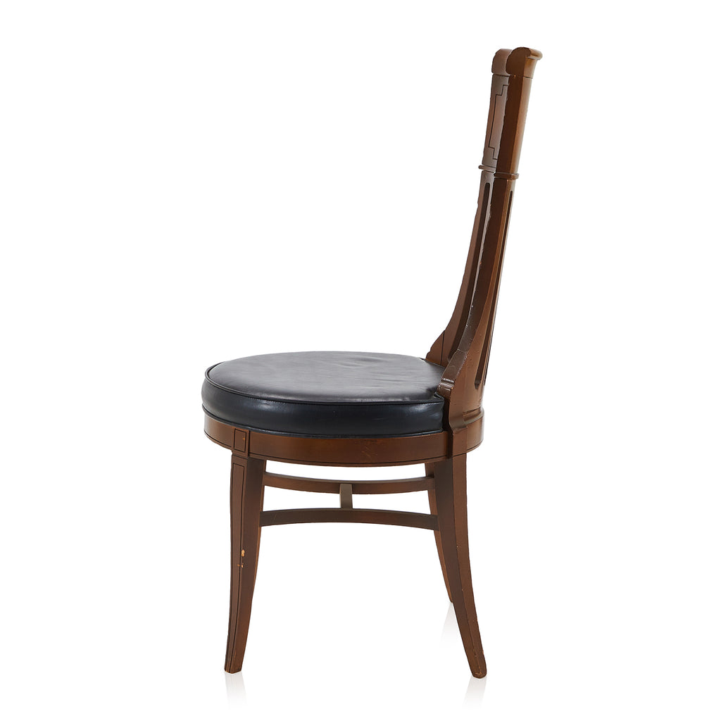 Details: Black leather and wood swivel dining chair Dimensions: 31" H x 18" W x 18" D Quantity: 4