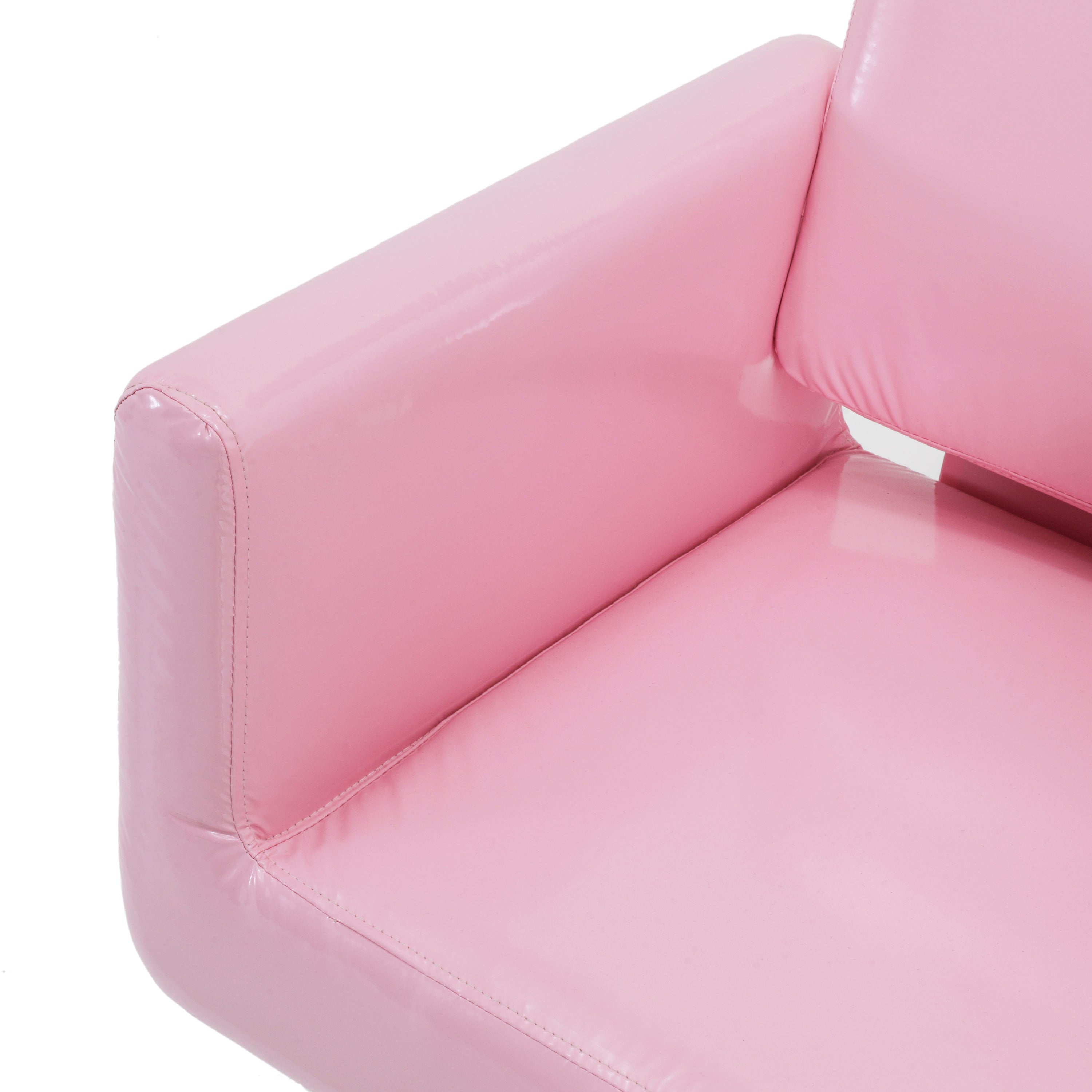 Details: White leather armchair with wide, angled armrests. Part of a matching set (sofa and loveseat rented separately). Dimensions: 31" H x 43" W x...
