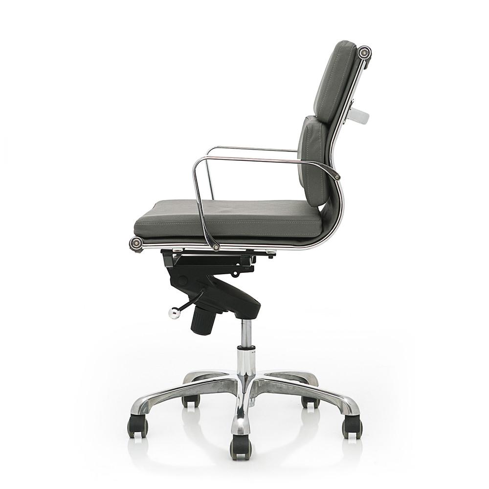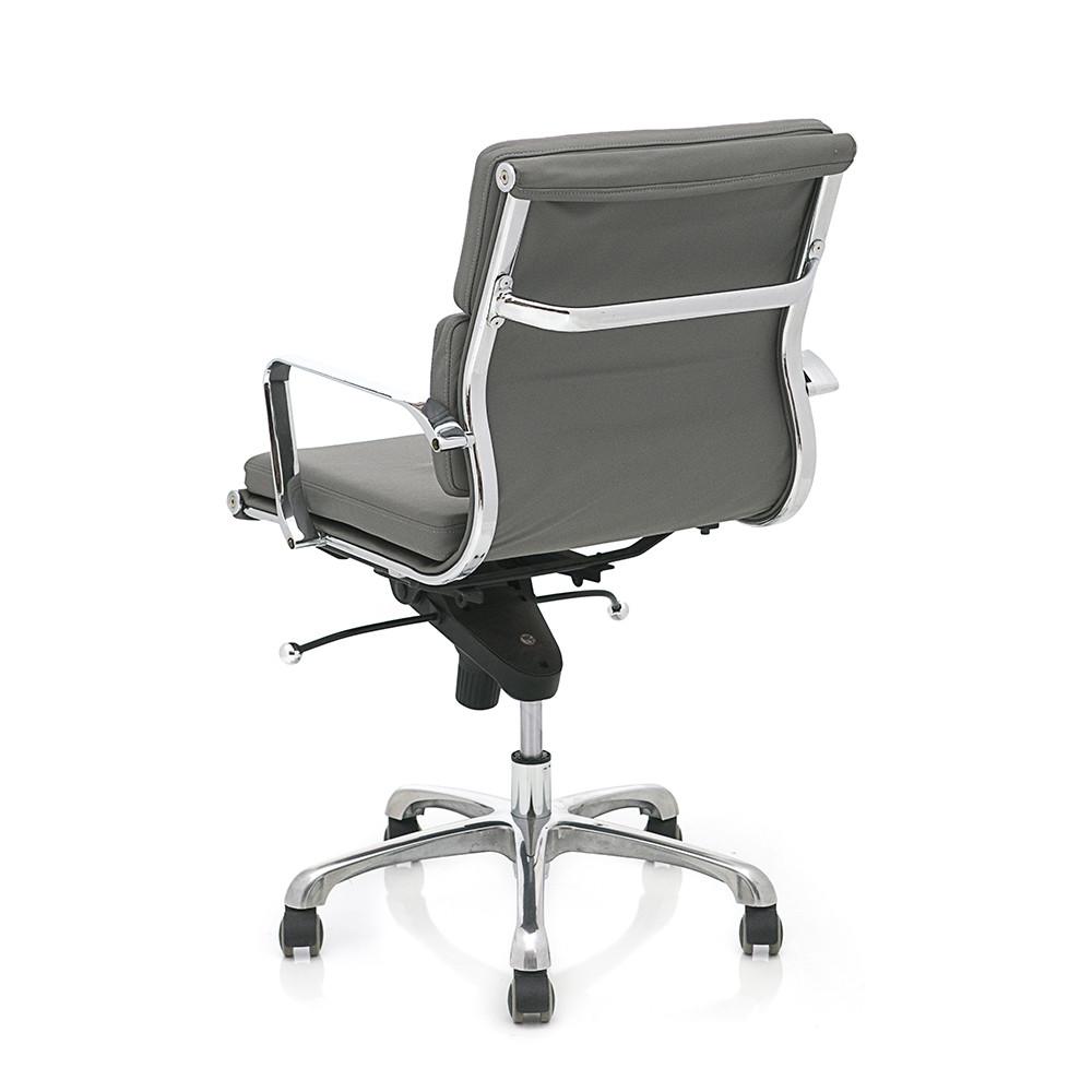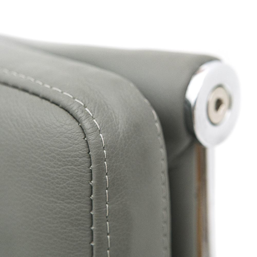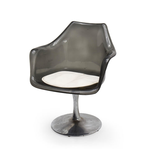 Details: Futuristic arm chair with grey leather upholstery, white plastic shell, and clear base. (Vintage piece with high replacement value) Dimensions: 25" H x 41" W x...