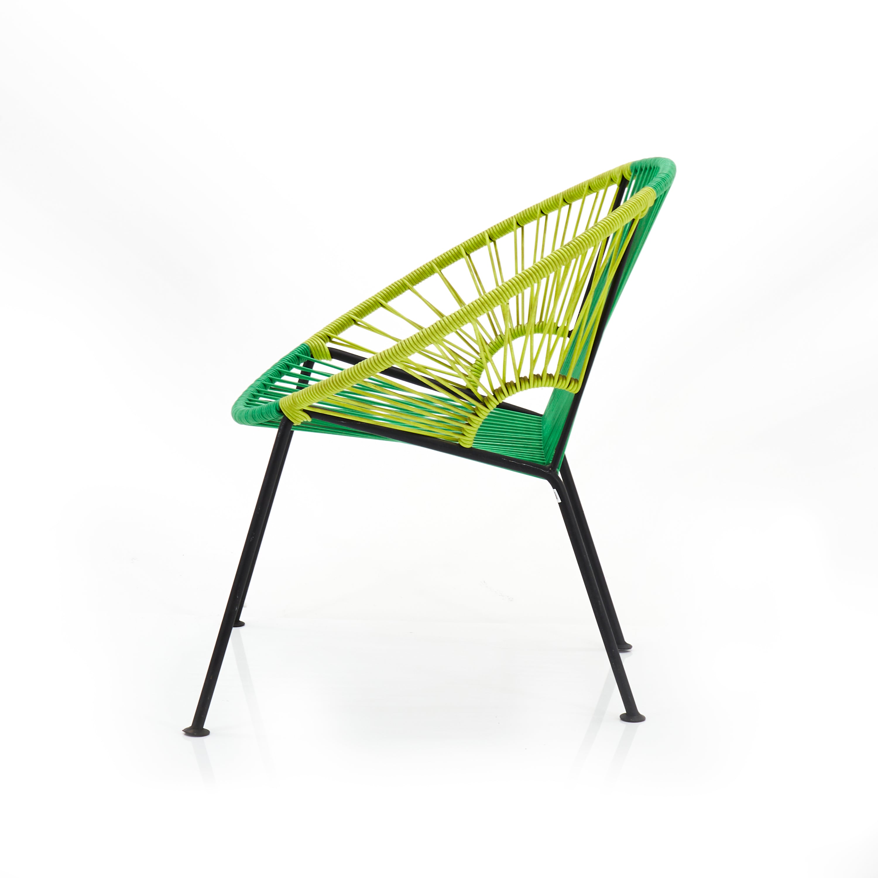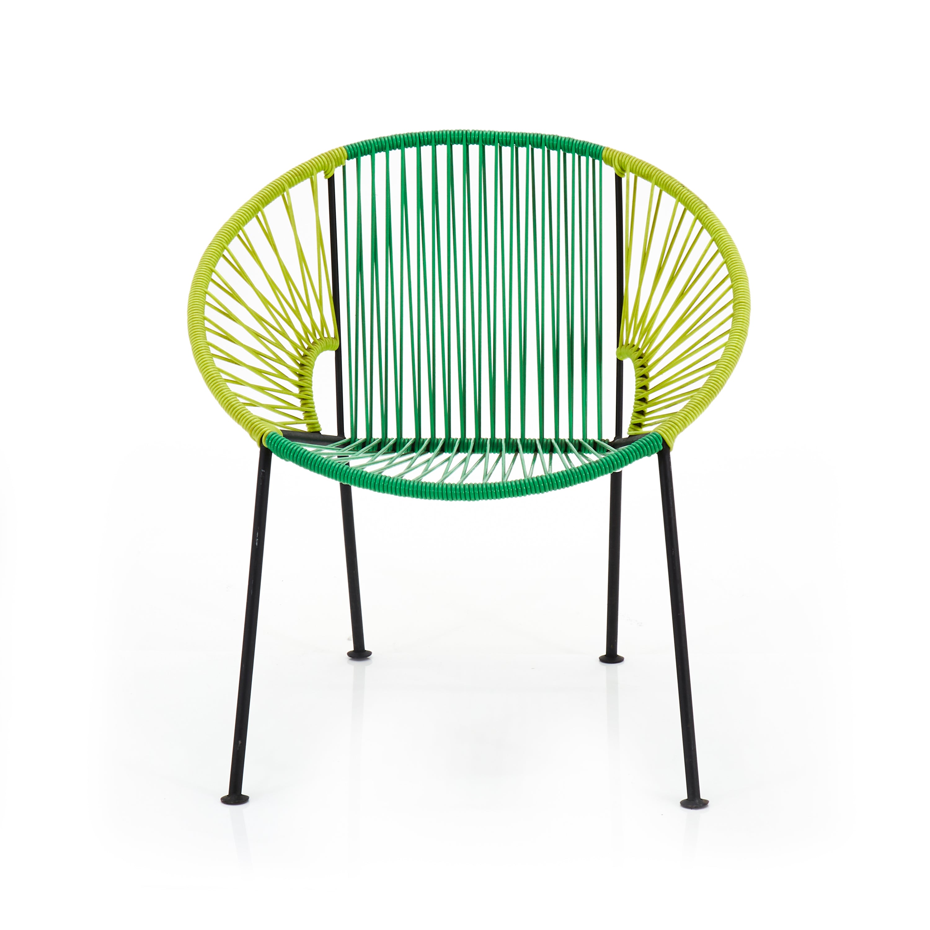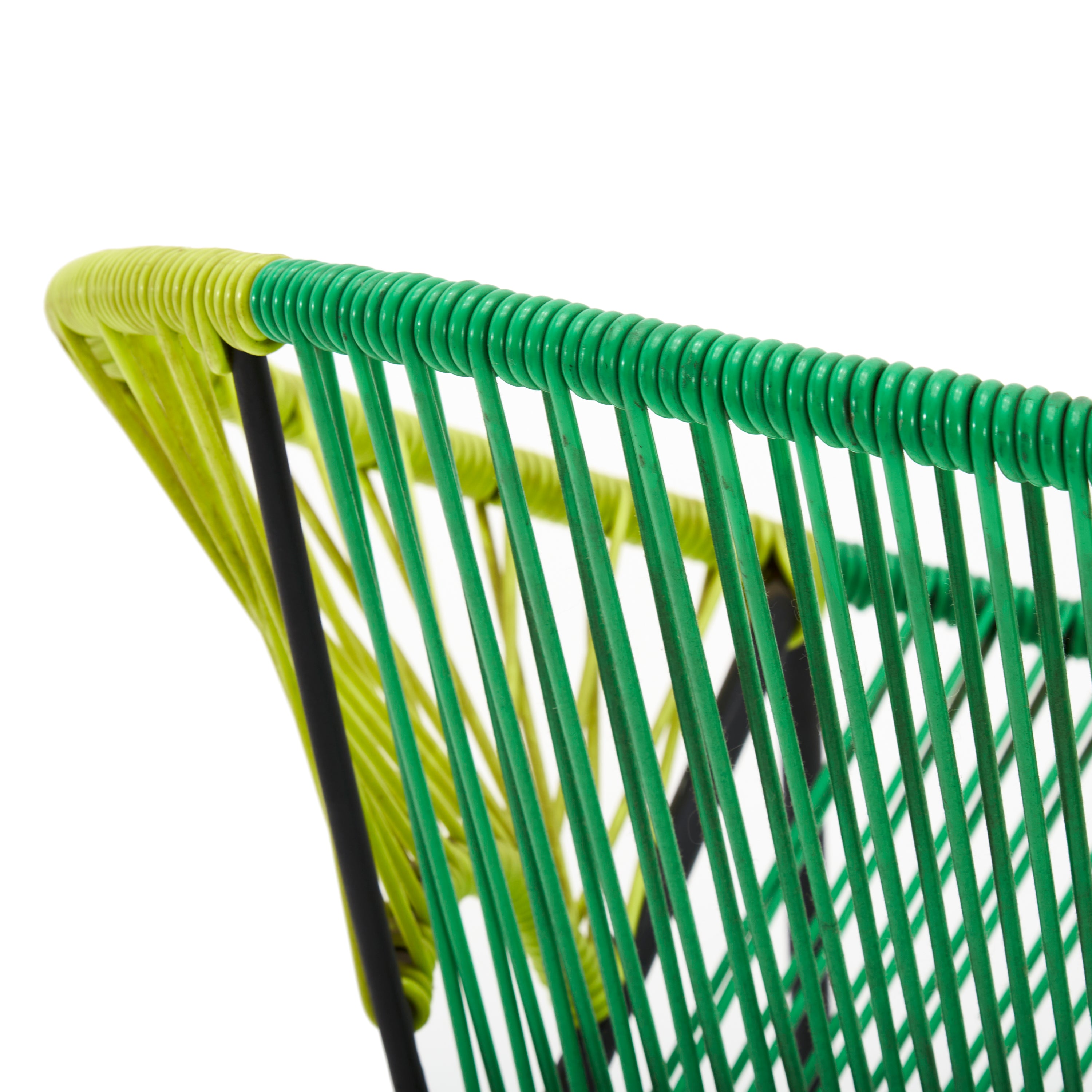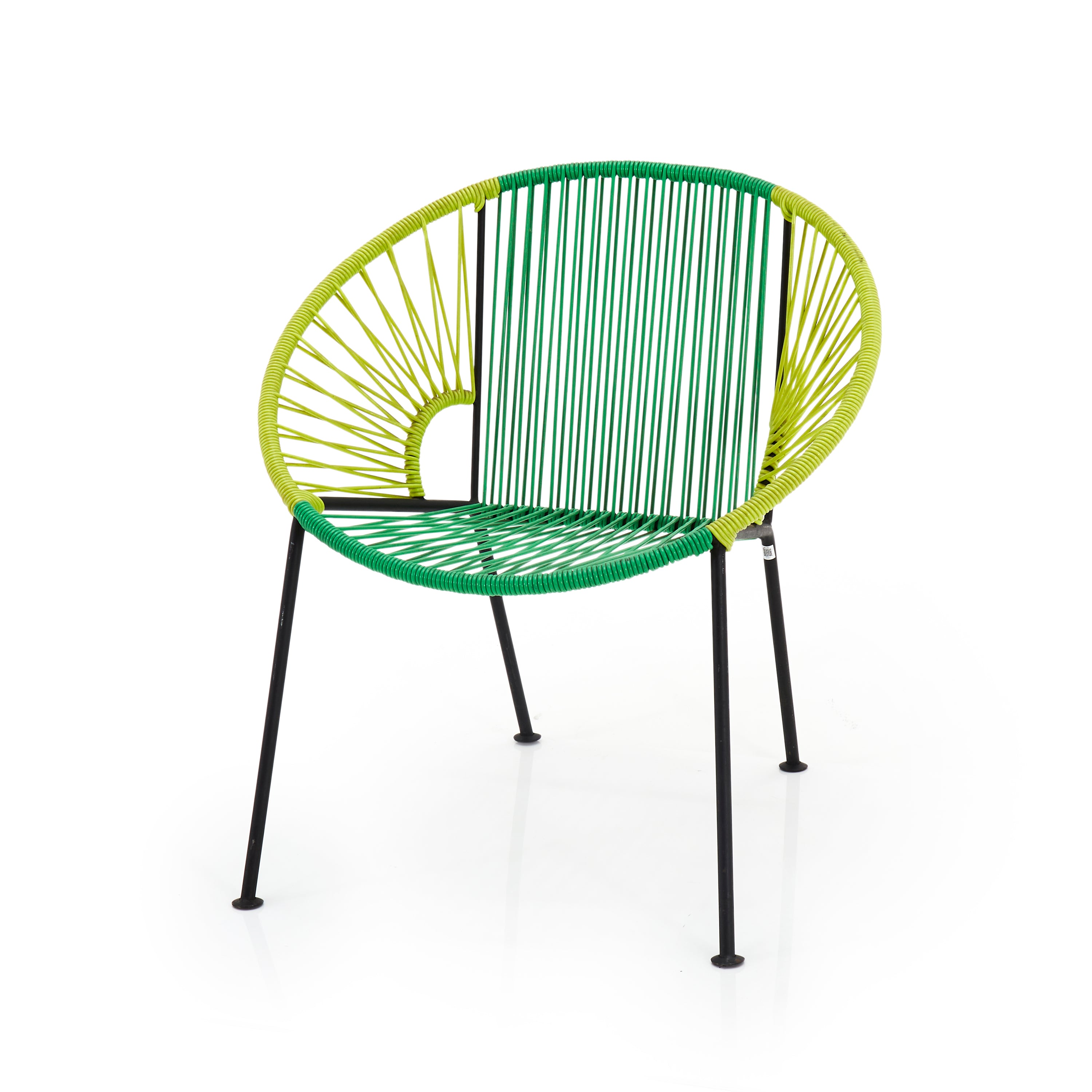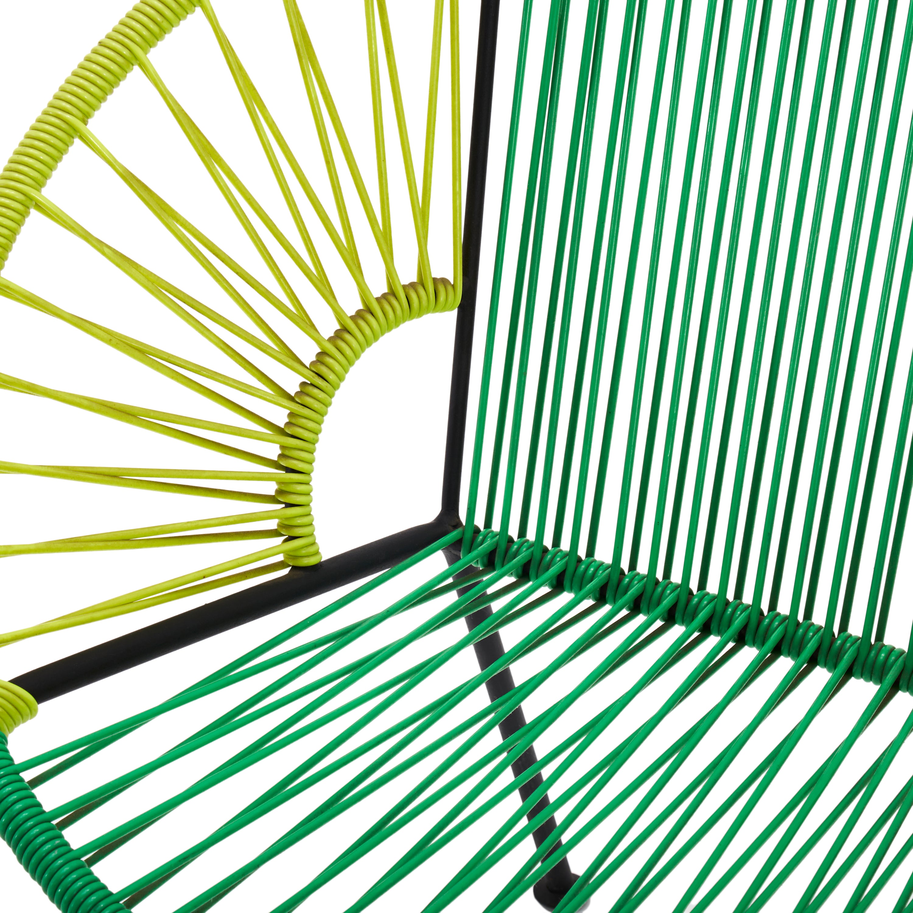Description: Dark green and lime outdoor modern woven cord Acapulco lounge chair.