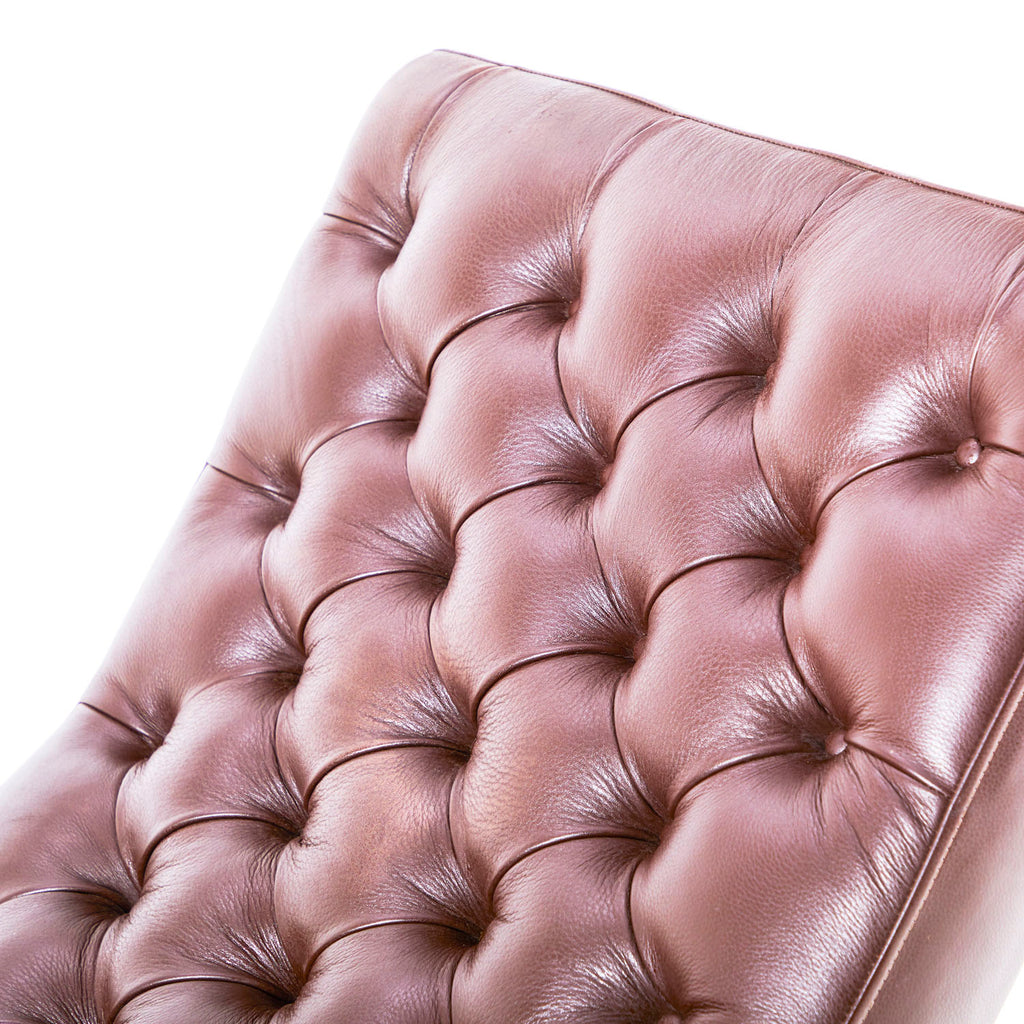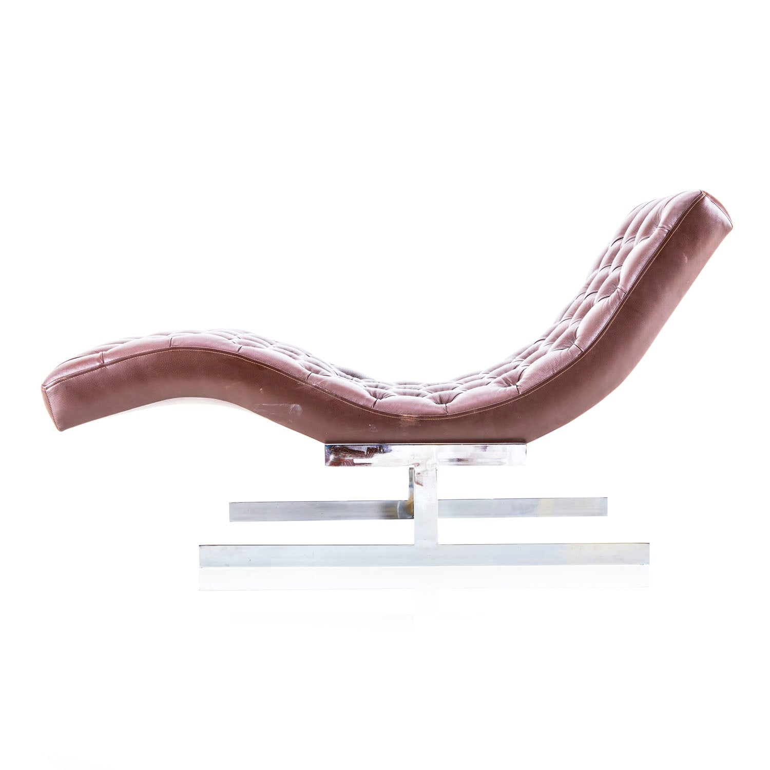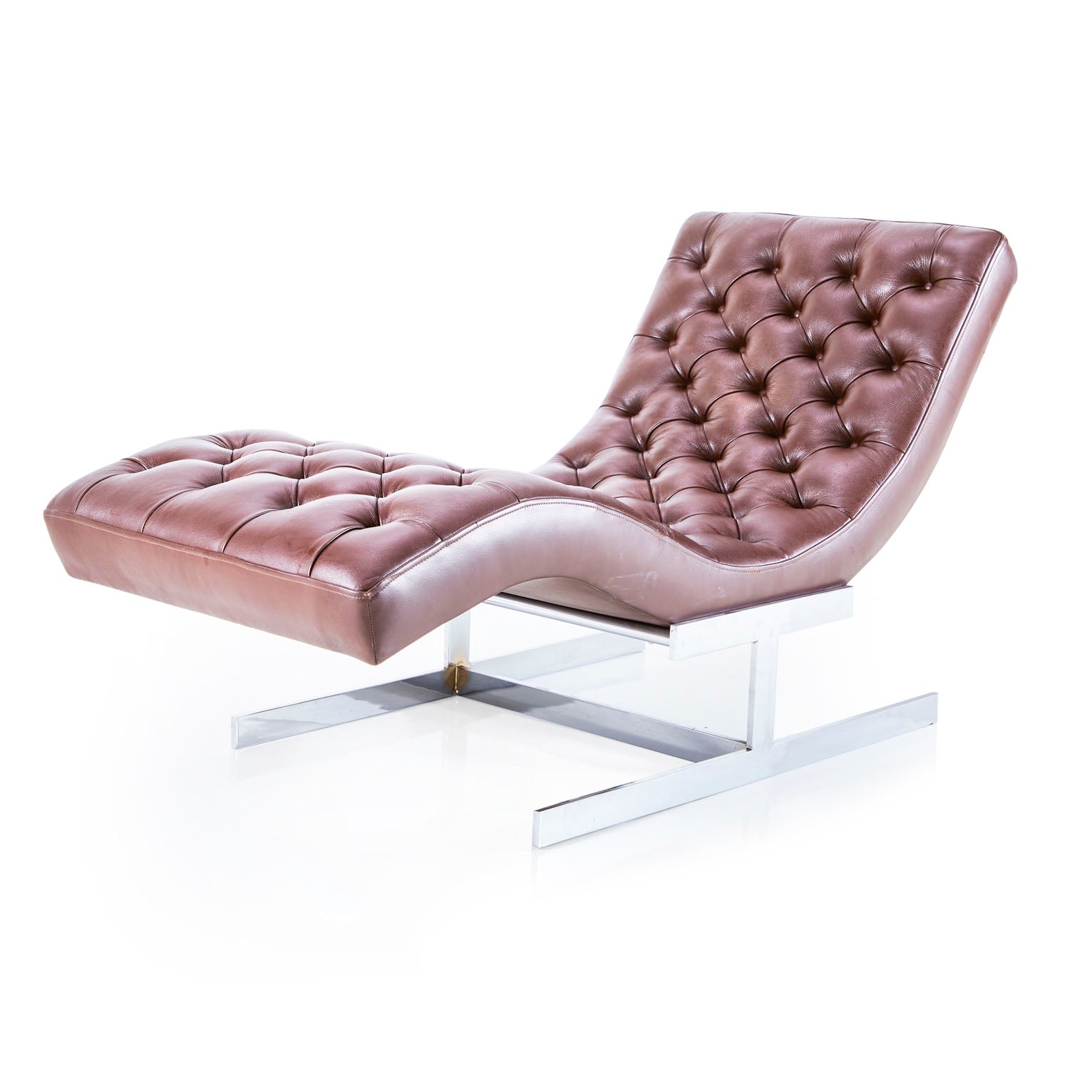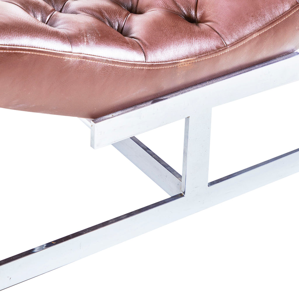 Details: Camel Brown Leather Chaise With Curved Chrome Tube Frame **HEAVY - must bring 2 people to help load, we do not offer assistance Dimensions: 22" H...