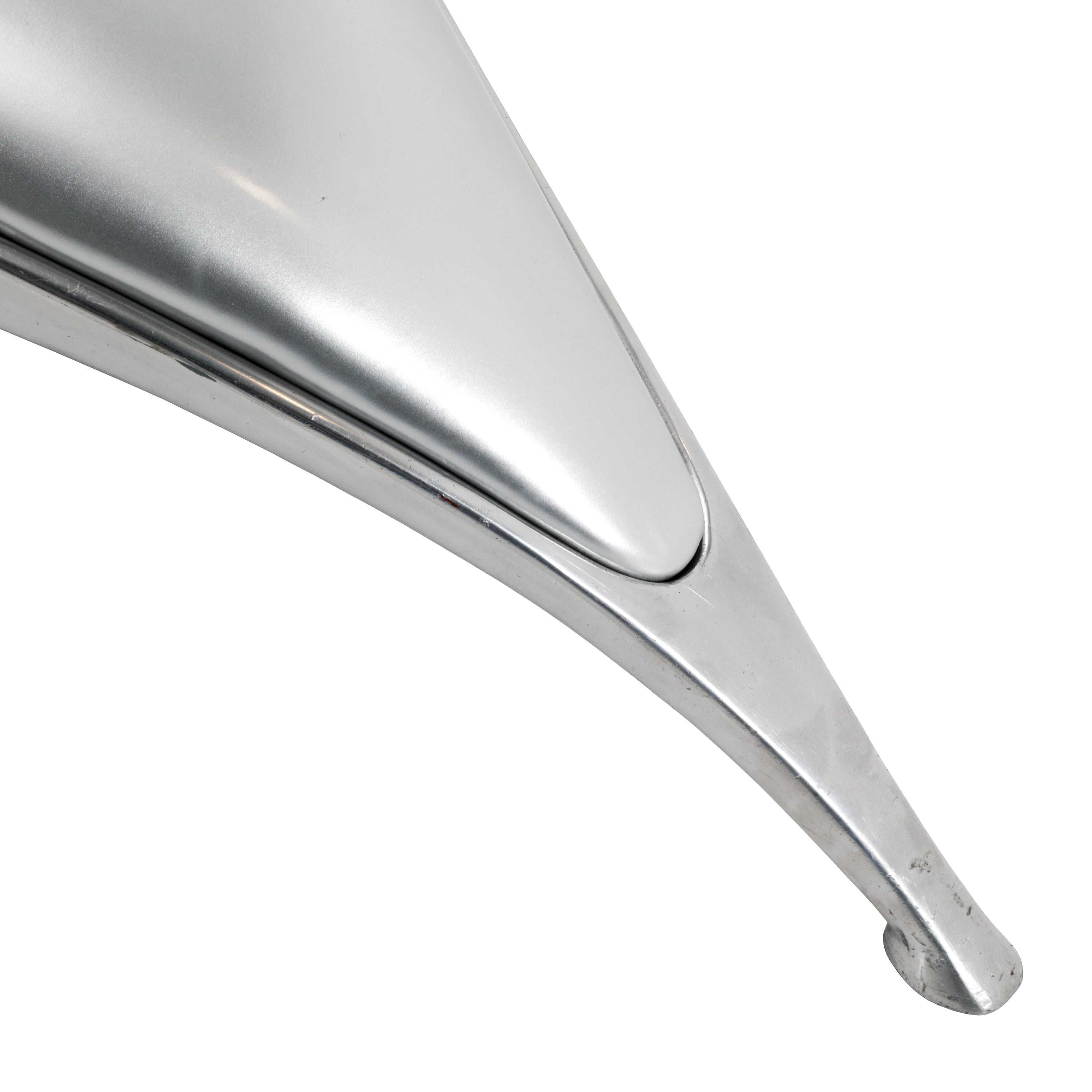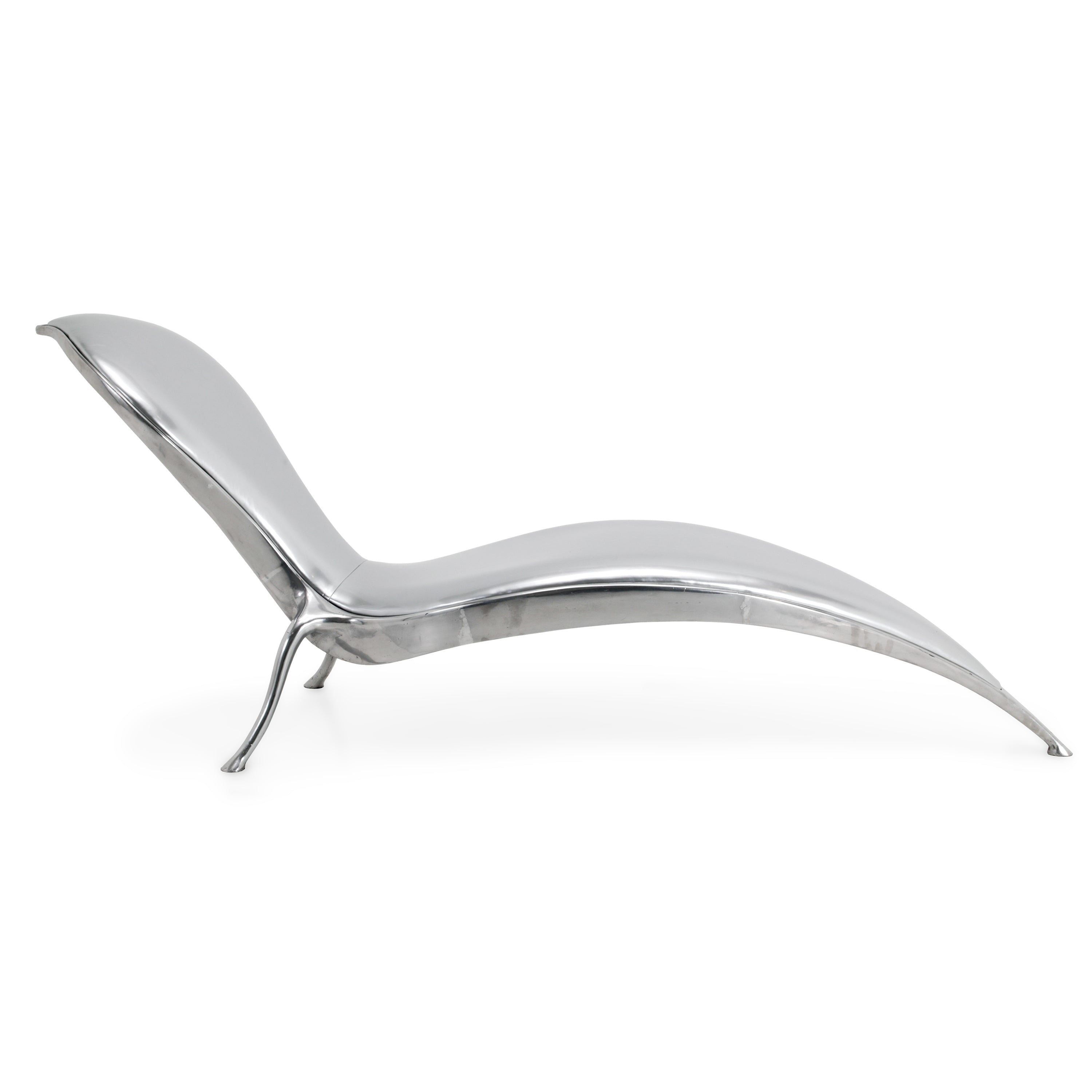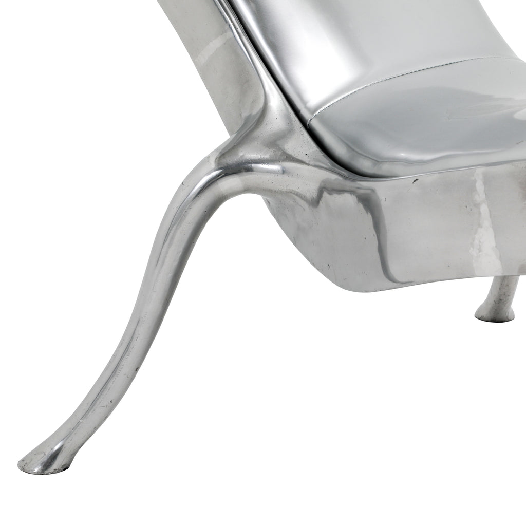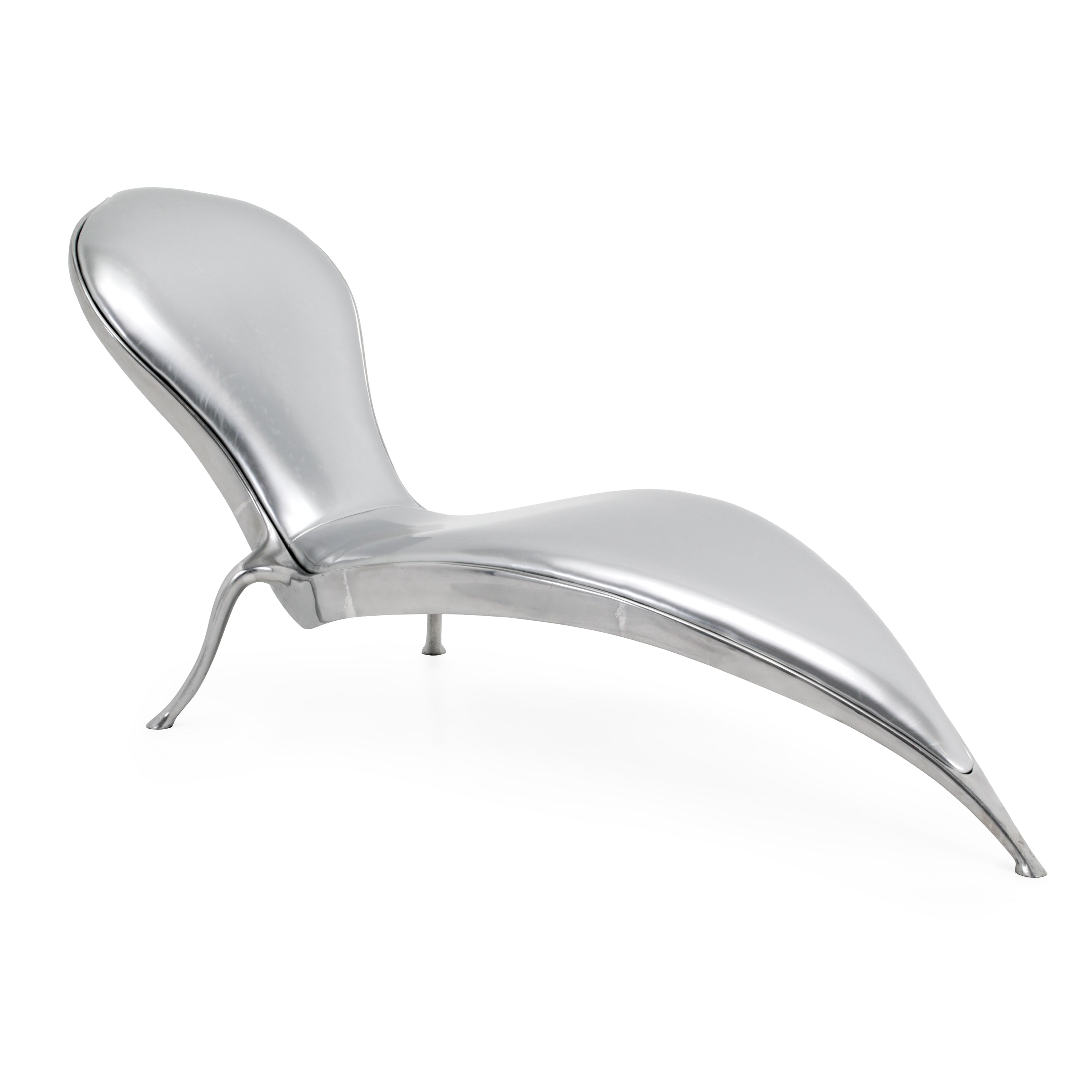 Details: Vintage Nouveau Leaf chaise designed by Stephane Rondel with silver vinyl seating and chrome frame. High replacement value, handle with care. Dimensions: 31.5" H...