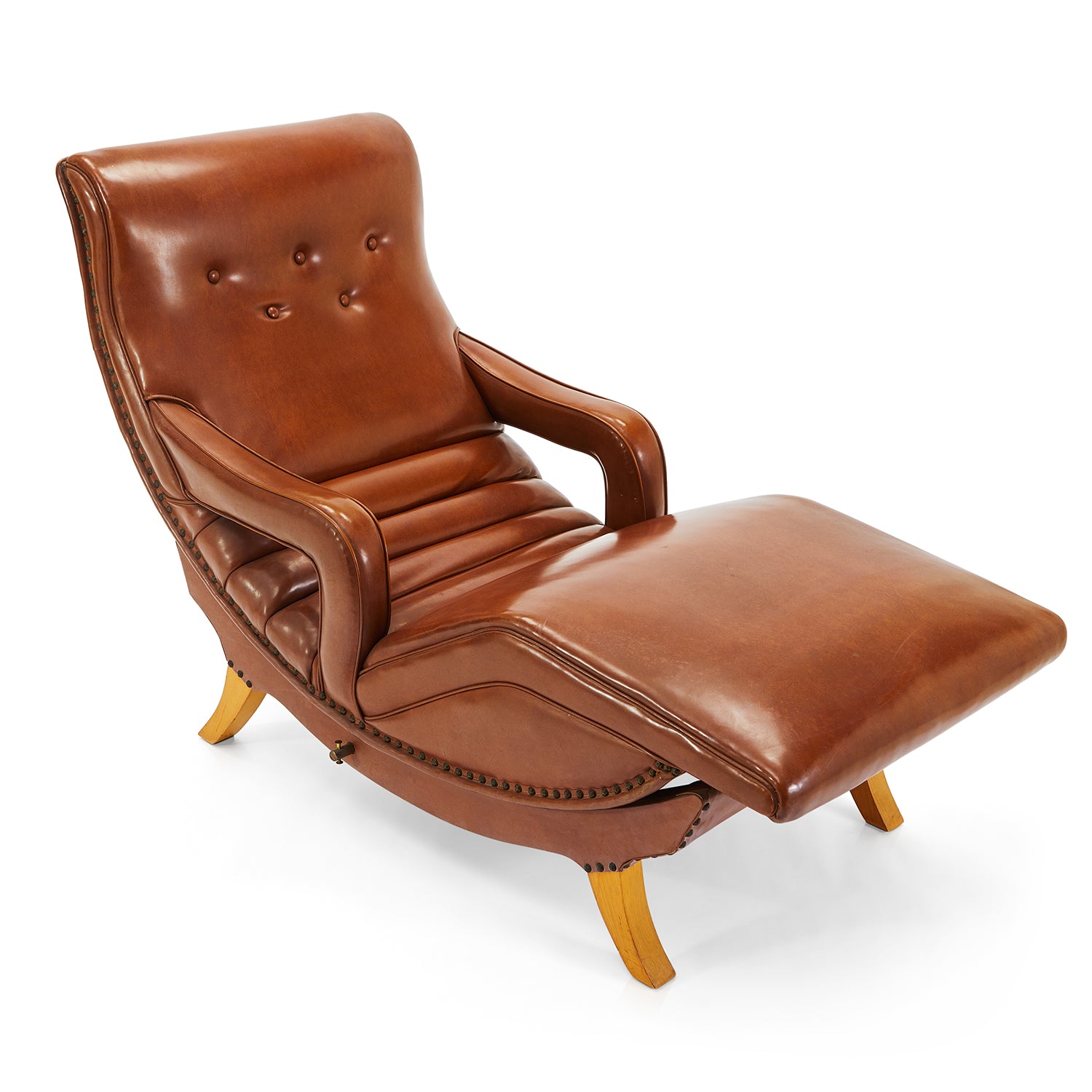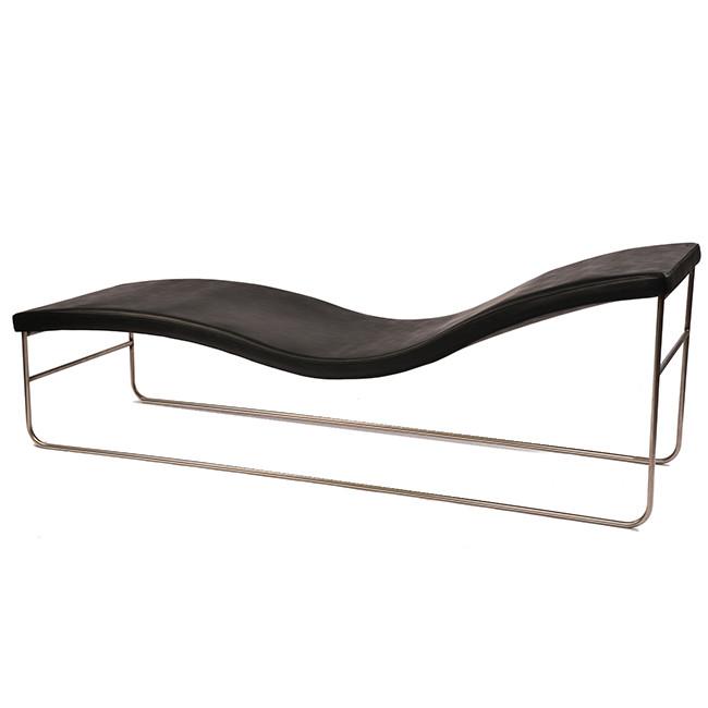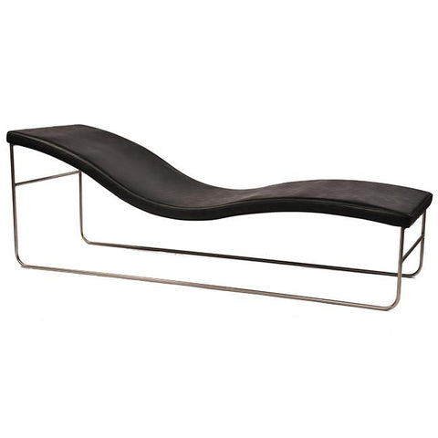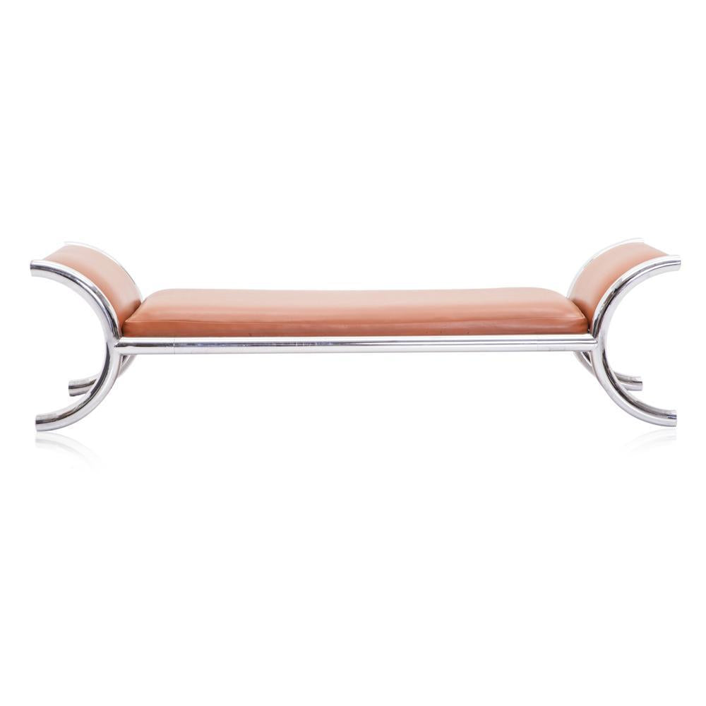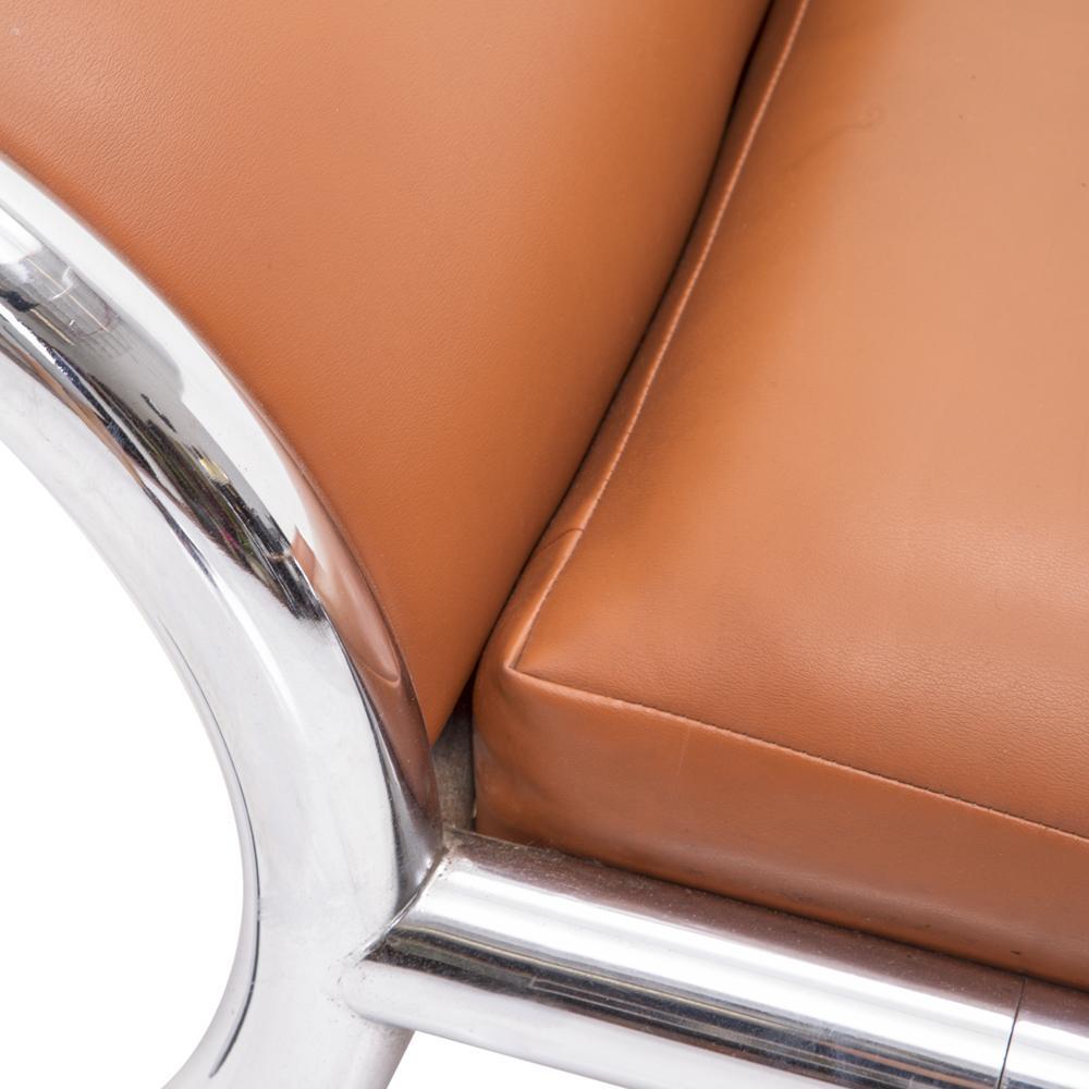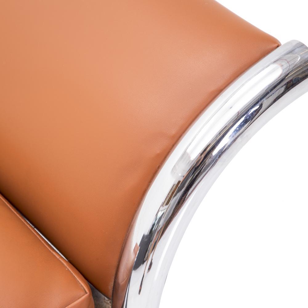 Details: Camel Brown Leather Chaise With Curved Chrome Tube Frame **HEAVY - must bring 2 people to help load, we do not offer assistance Dimensions: 22" H...
