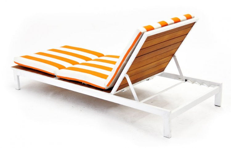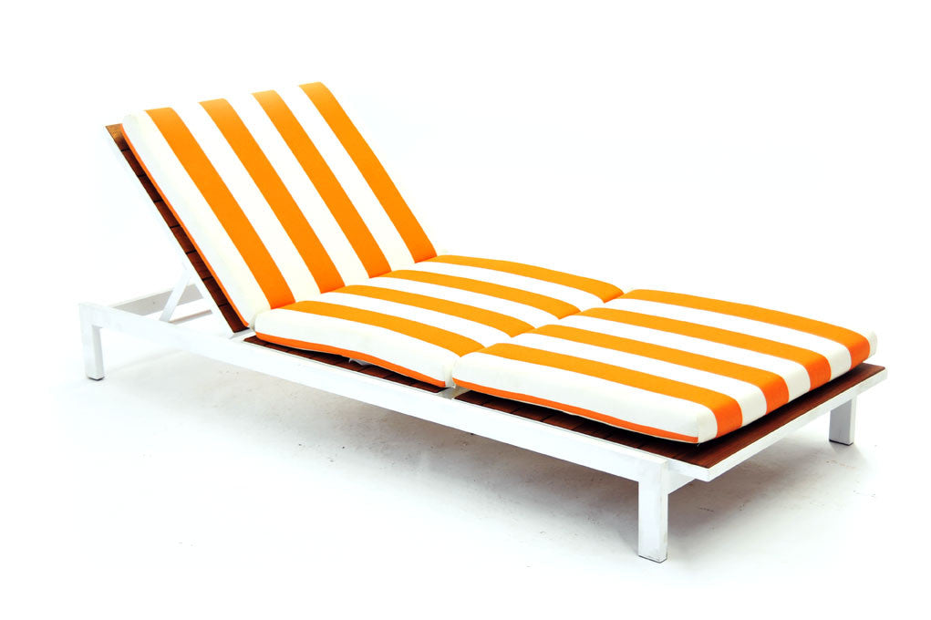 Details: White Teak, Chaise, Lounge Quantity: 12 AVAILABLE *Cushions Also Available : 10 White, 2 Blue, 2 White and Orange Stripes Dimensions: 81 1/8" H...