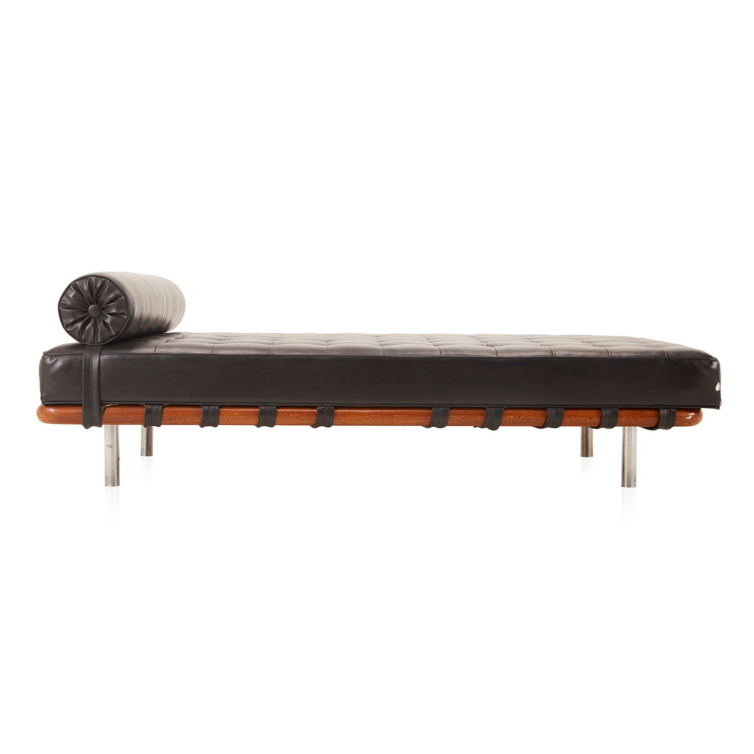 Details: Case study bentwood armless sofa daybed with laminated dark wood frame *multiple bases and colored fabrics also available* Dimensions: 27" H x 77" L x...