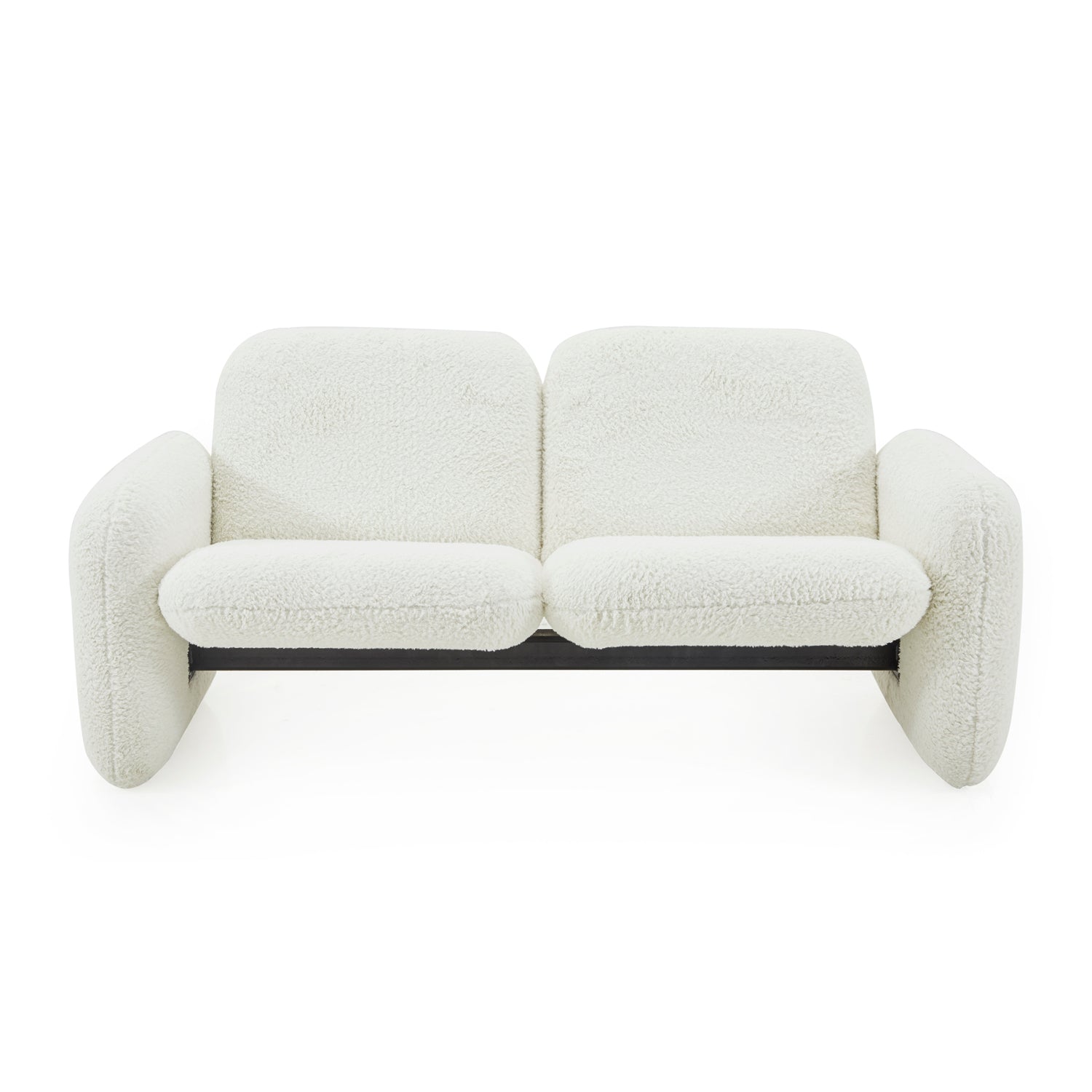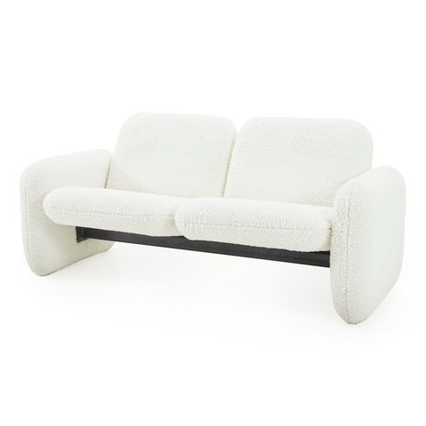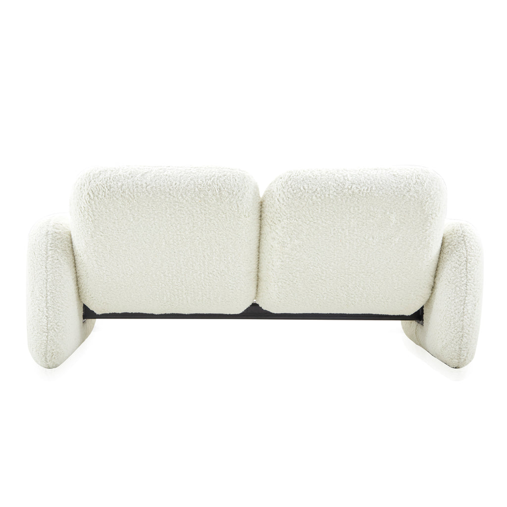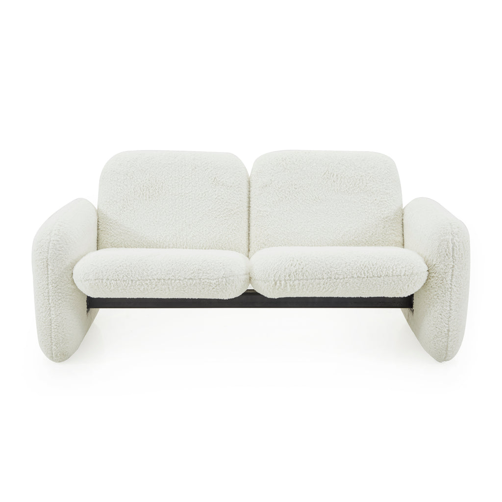 Details: Chiclet love seat with white faux fur upholstery Dimensions: 27" H x 61" W x 23" D Quantity: 1
