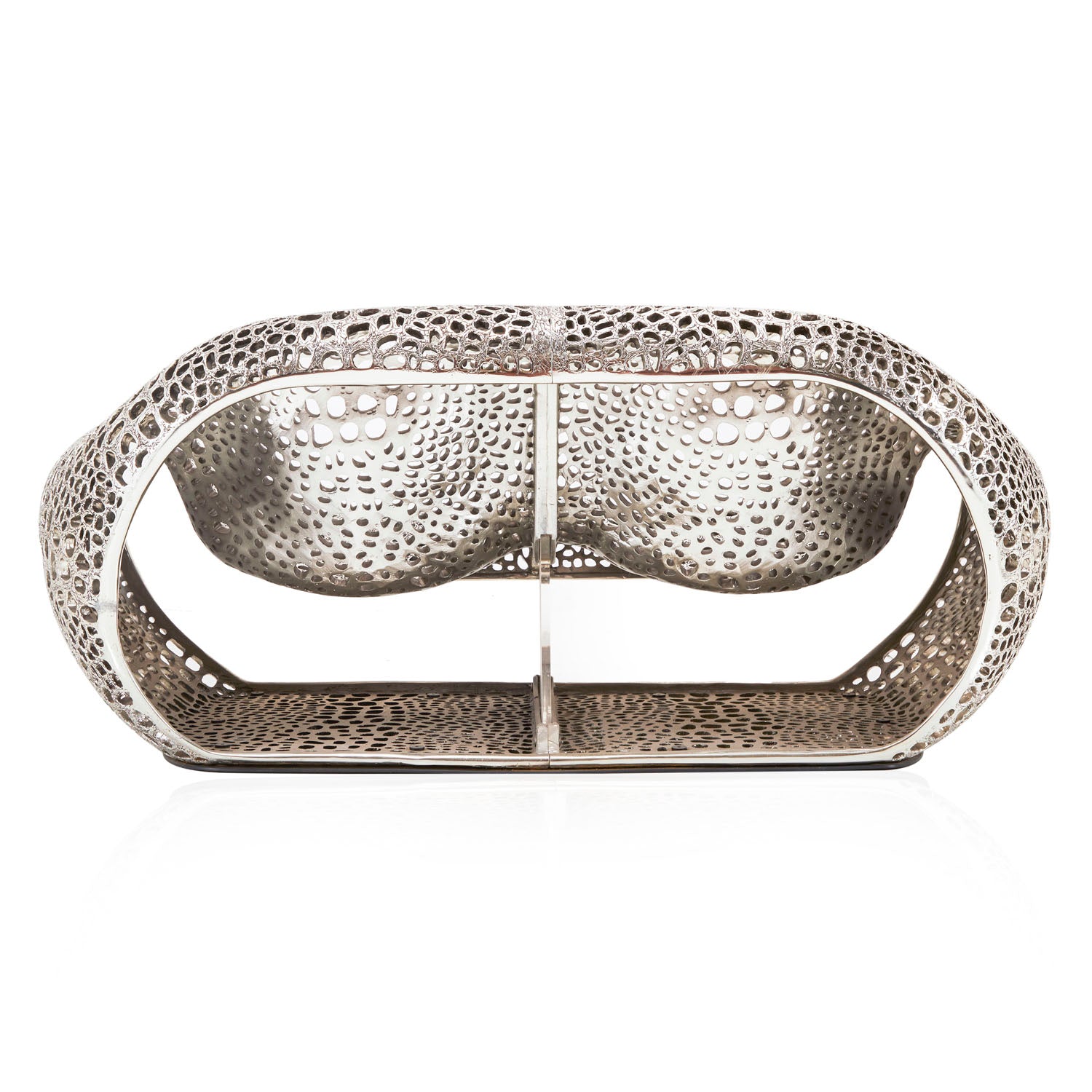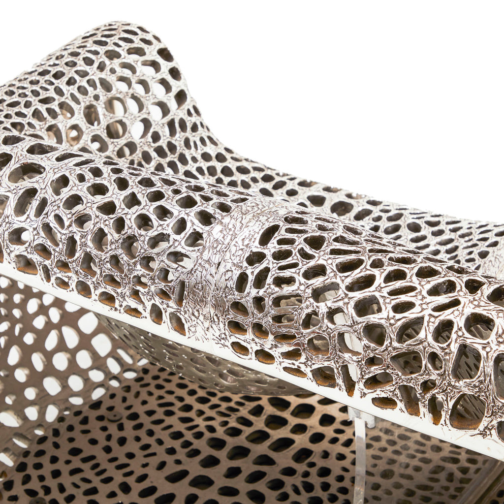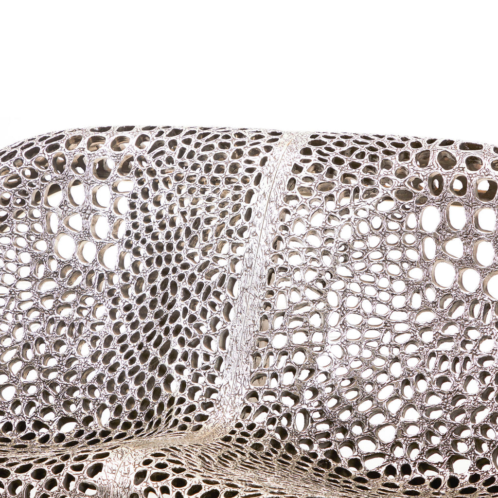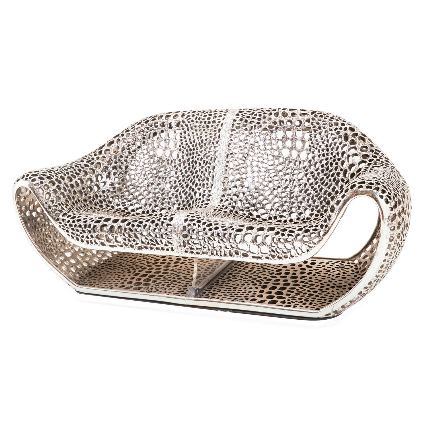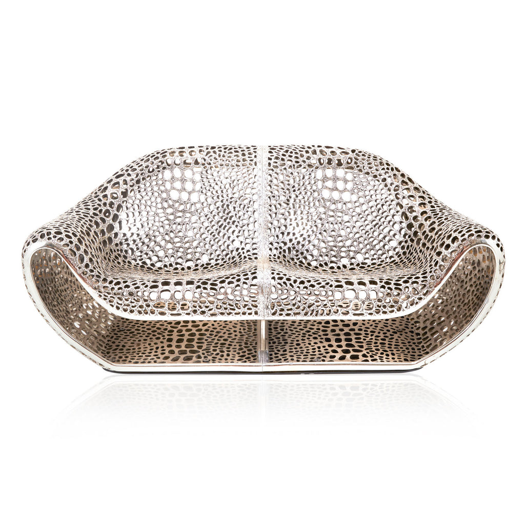Details: Cast resin loveseat with organic porous design and chrome finish Dimensions: 31" H x 72" W x 33" D Quantity: 1