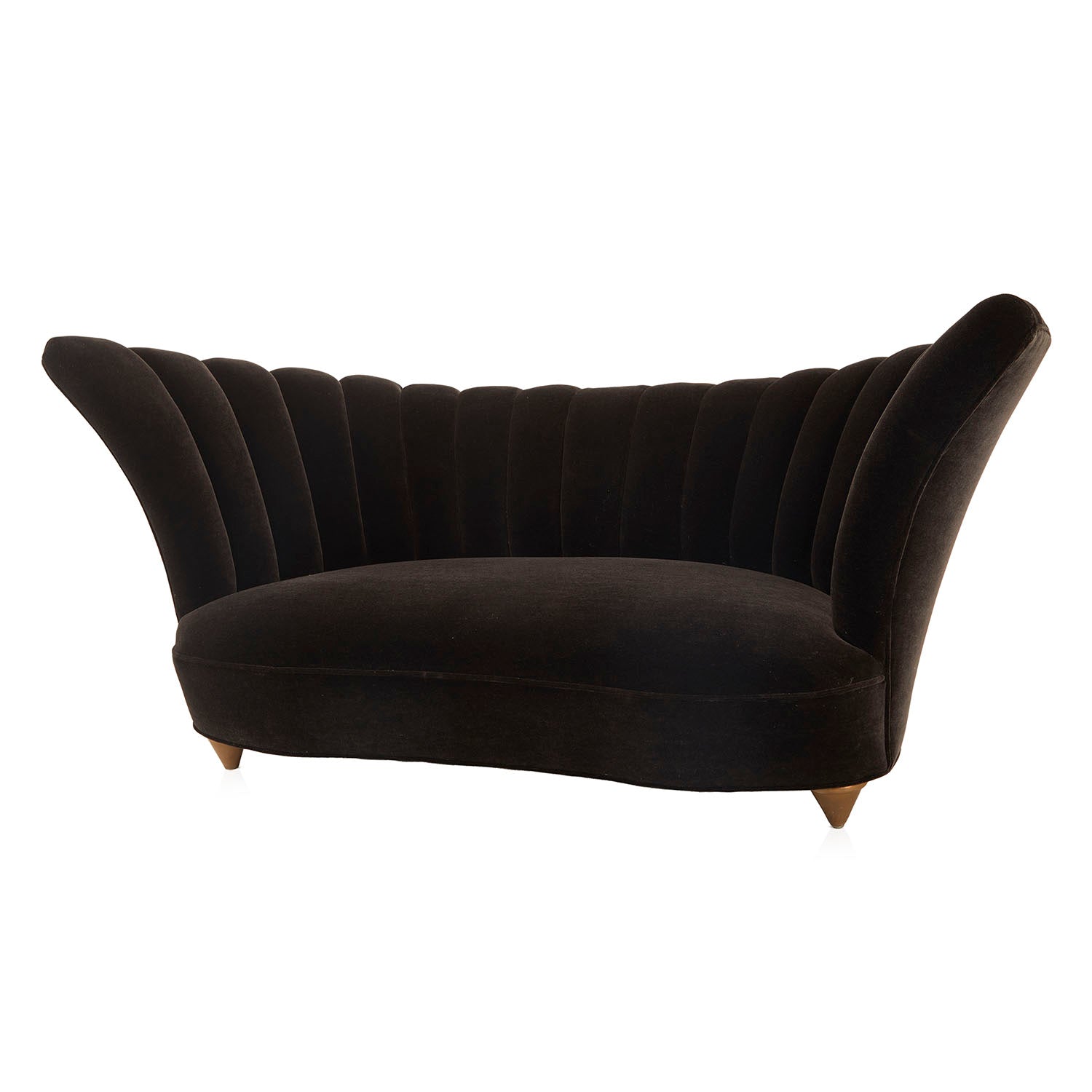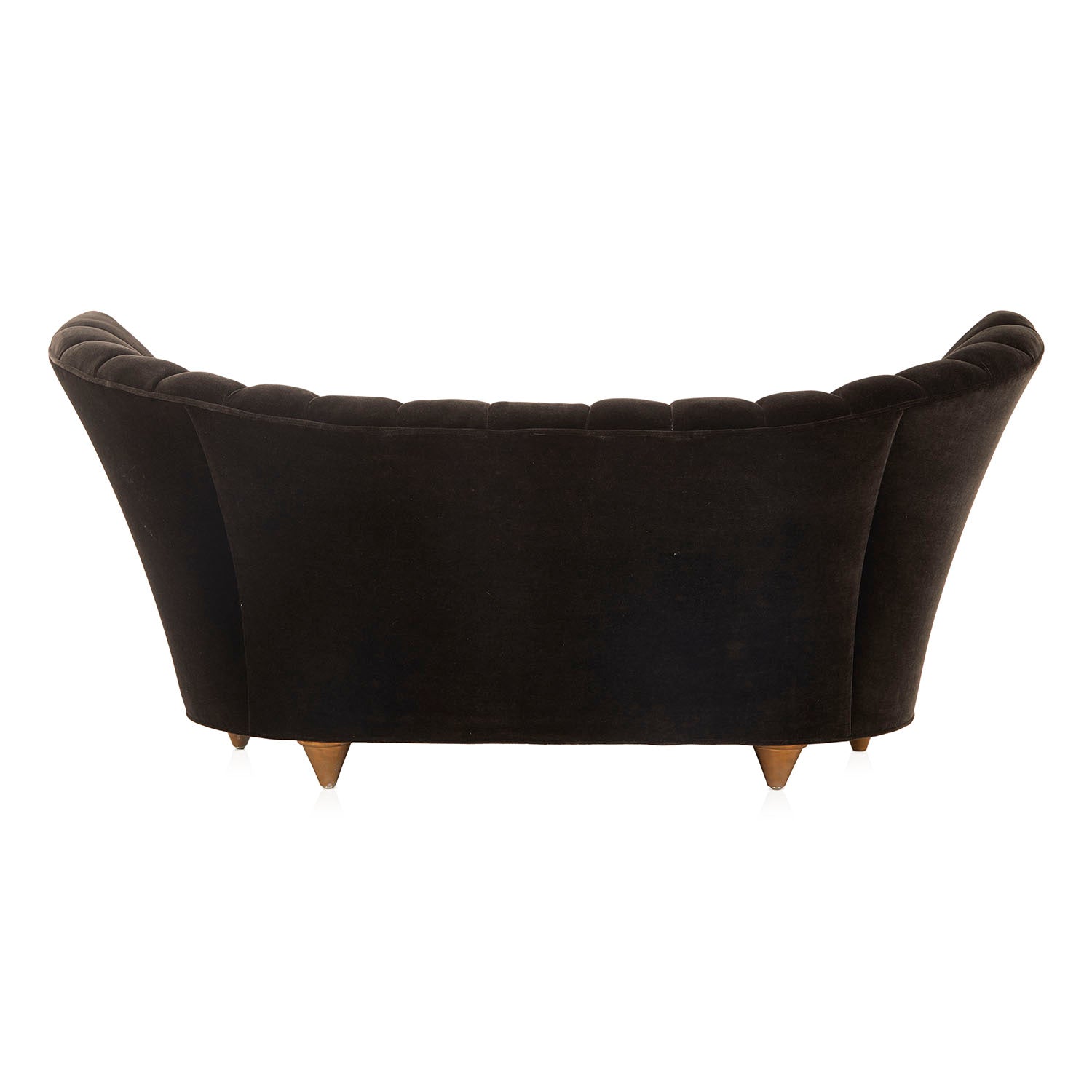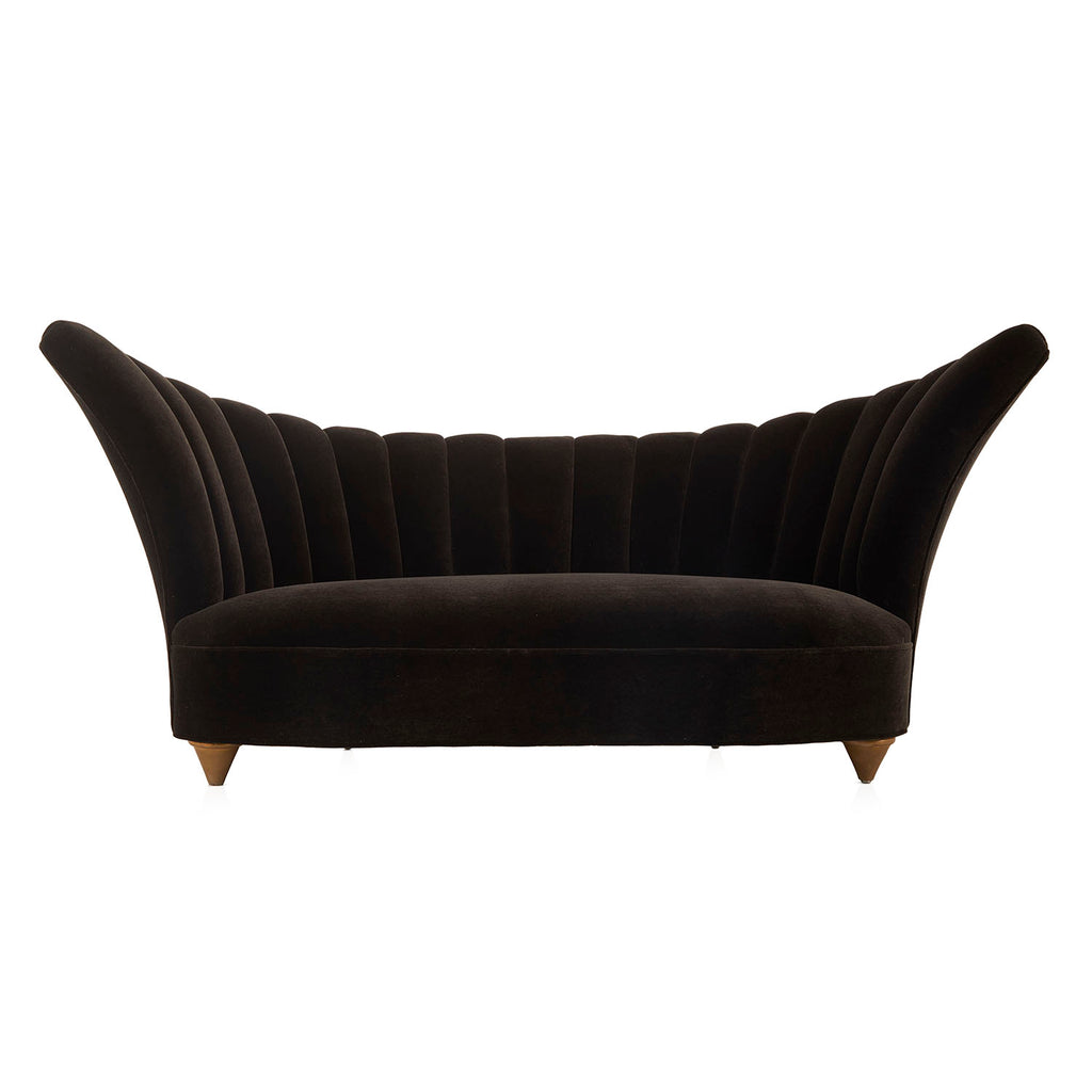 Details: Black tufted velvet symmetrical contemporary deco style sofa Dimensions: 40" H x 86" W x 40" D