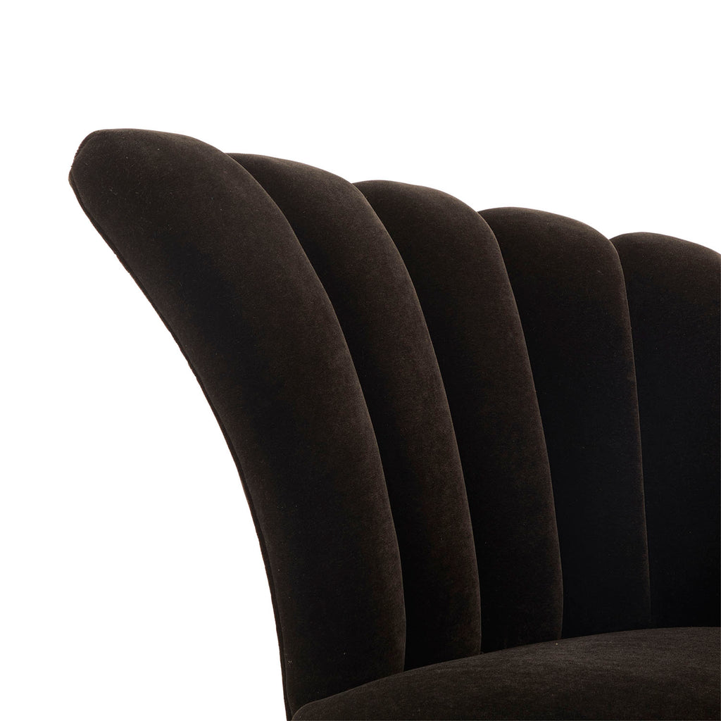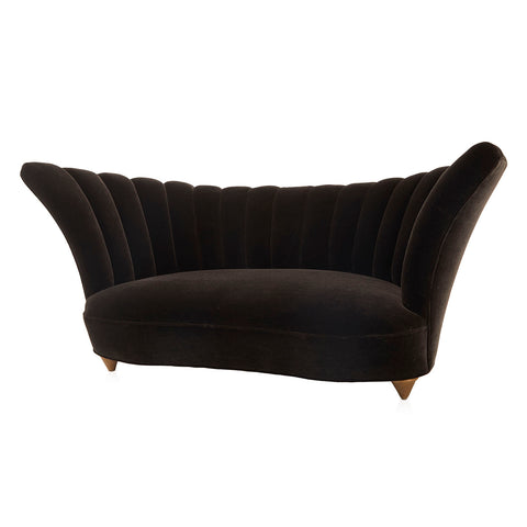 Details: Black modern velvet settee. Design pulls inspiration from art deco movement. Dimensions: 33" H x 56" W x 28" D