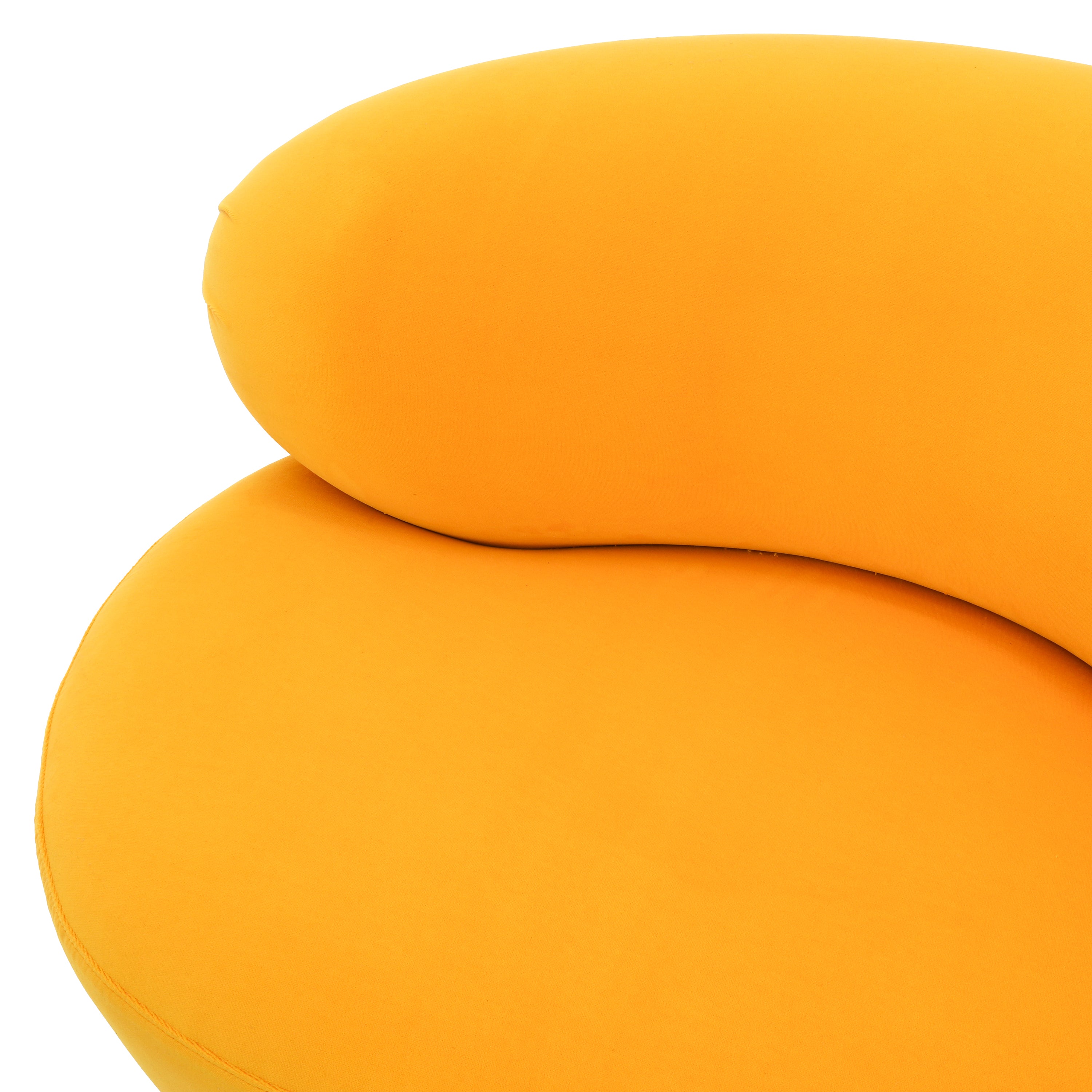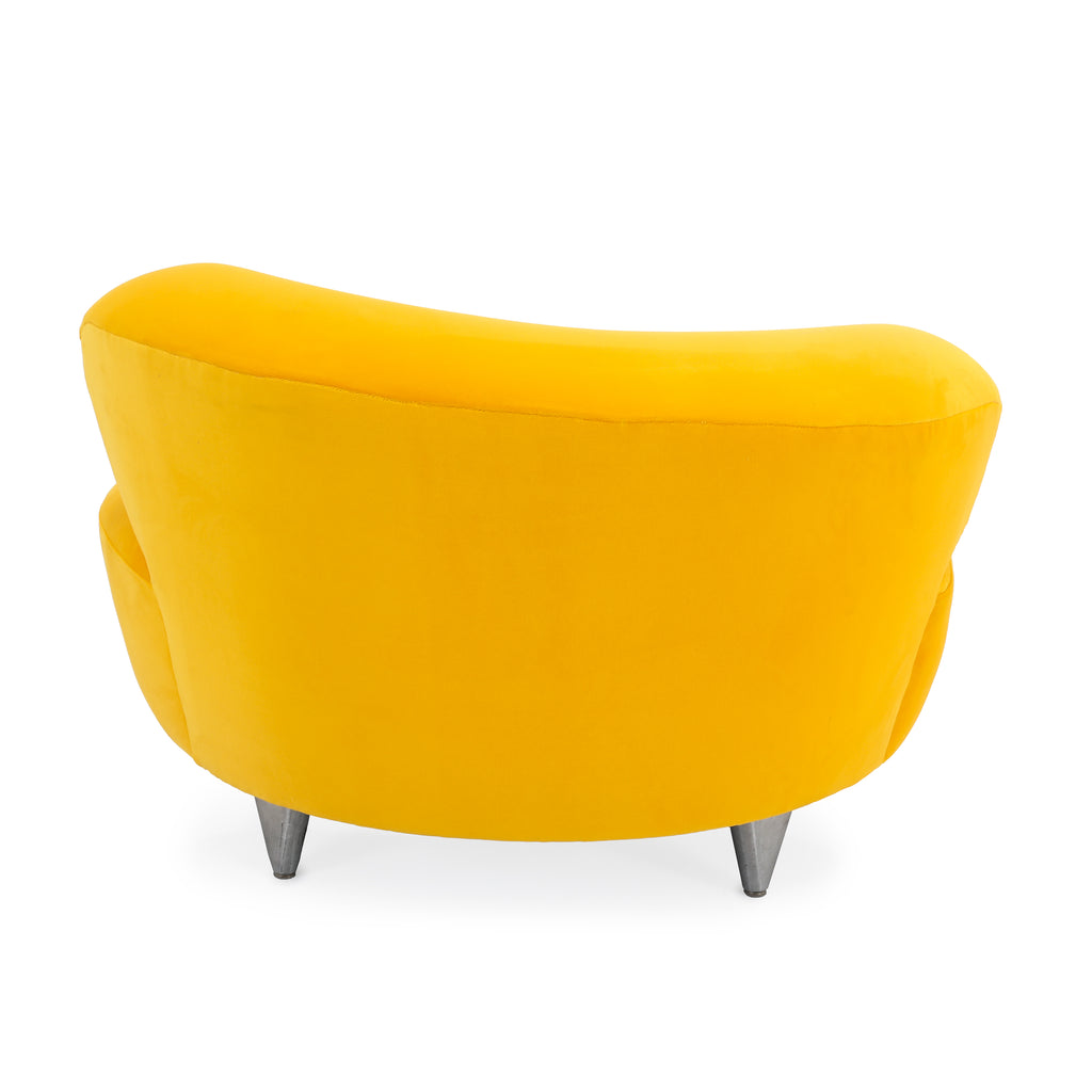 Details: Yellow velvet tufted plush round sofa/couch. Dimensions: 29" H x 71" W x 32" D Matching chair available. Item #: 28843 Matching ottoman available. Item #:...