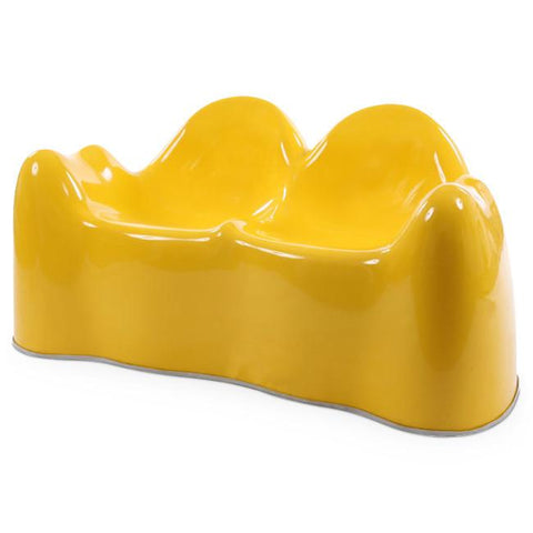 Details: Yellow curvy fiberglass symmetrical two seat loveseat Dimensions: 26" H x 53" W x 31" D