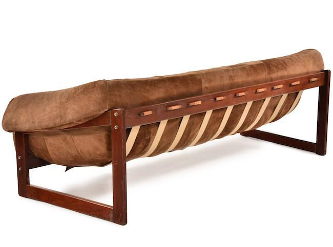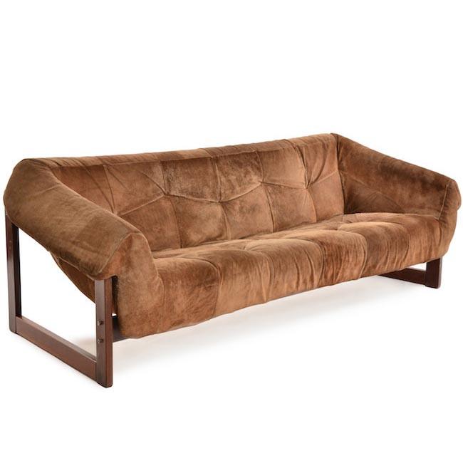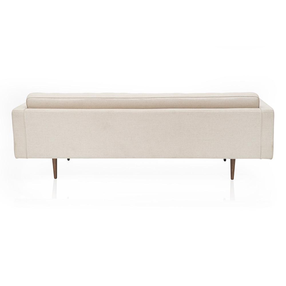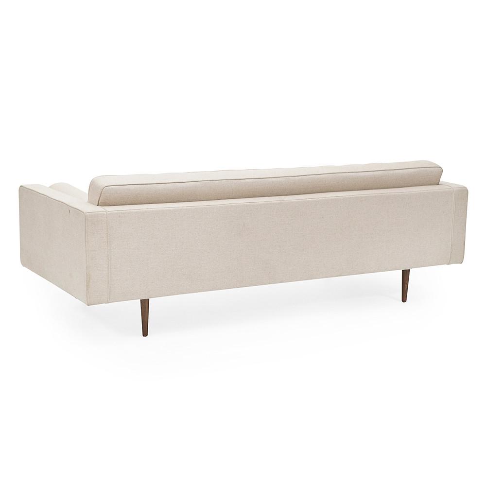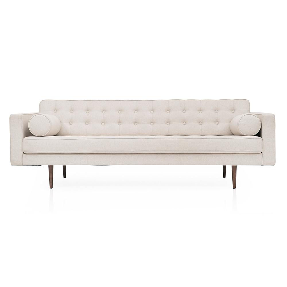 Details: Large white sofa with gold trim on base. Matching armchairs available (rented separately). Vintage piece with some noticeable scuffs / wear, rented as is. Dimensions: 33" H...