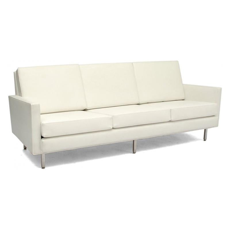 Details: White modern circular leather cutouts couch with black metal base *** This is EXTREMELY heavy. It requires 2 very strong people to load this into...
