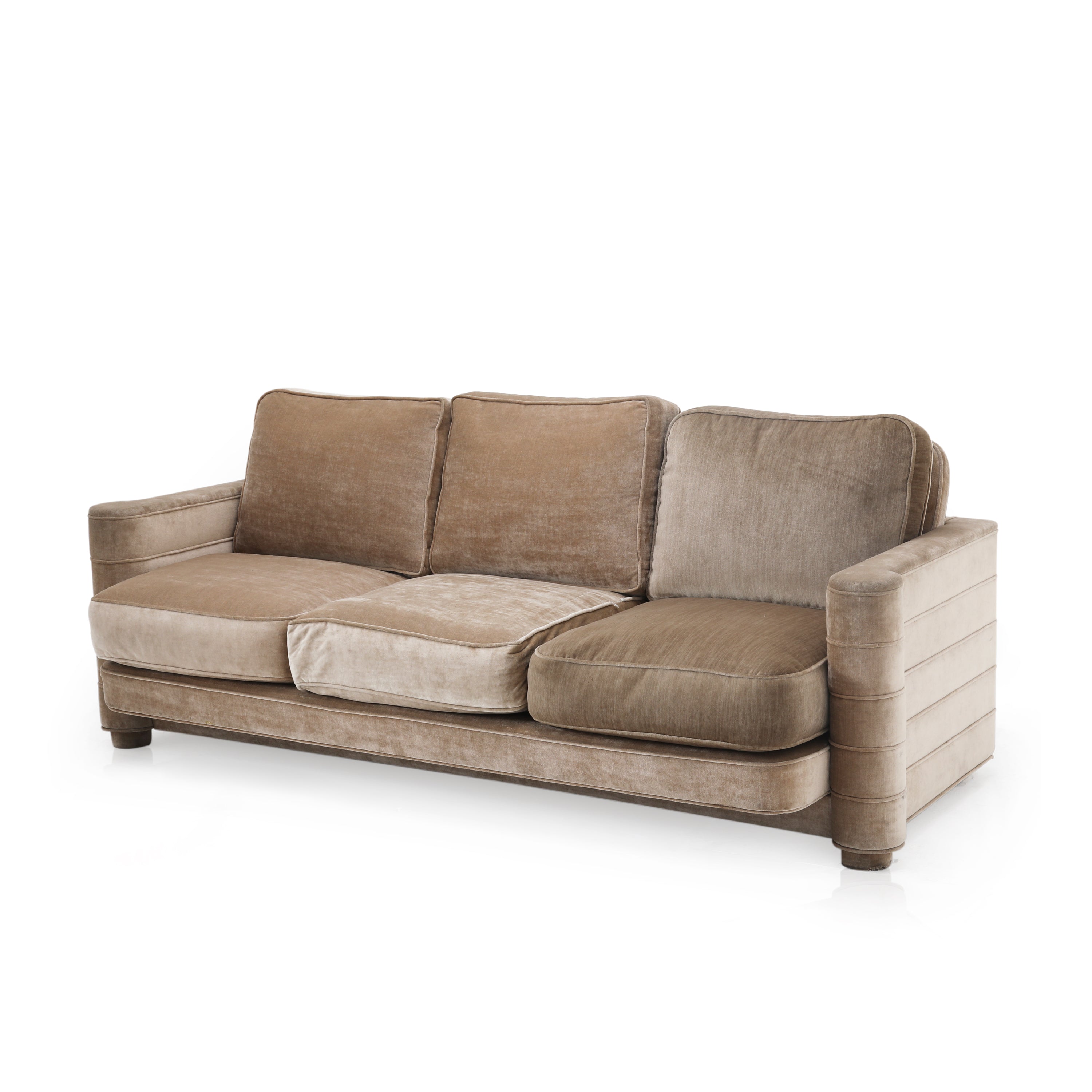 Details: Vintage deco sofa with heavy leather cushions. Some noticeable wear due to age. (Part of a set, see last picture for reference. Loveseat and...