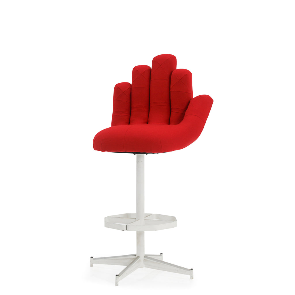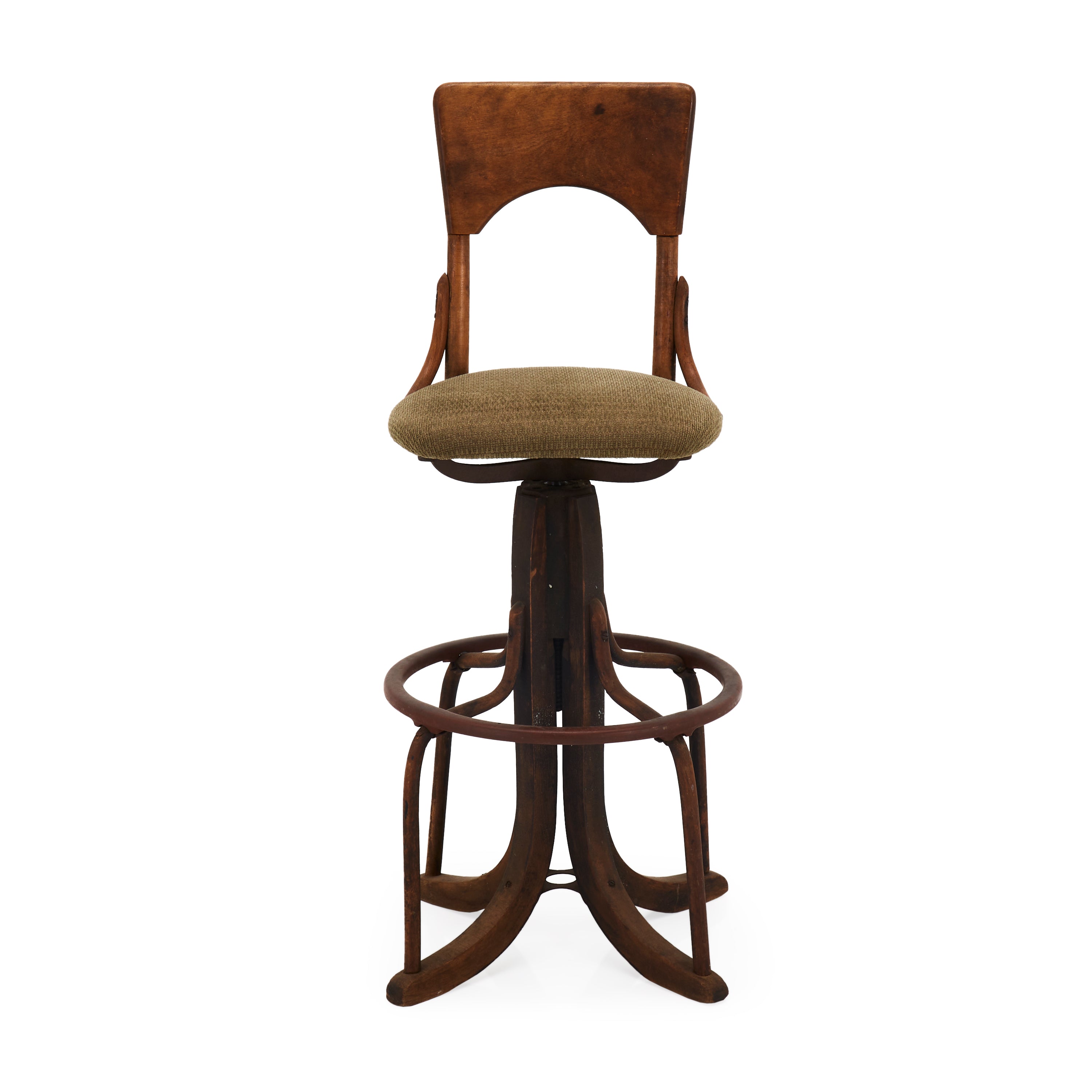 Details: Shiny gold barstool with off-white upholstered seat back and round seat cushion, hexagonal base Dimensions: 37" H x 23" W x 18" D Quantity:...