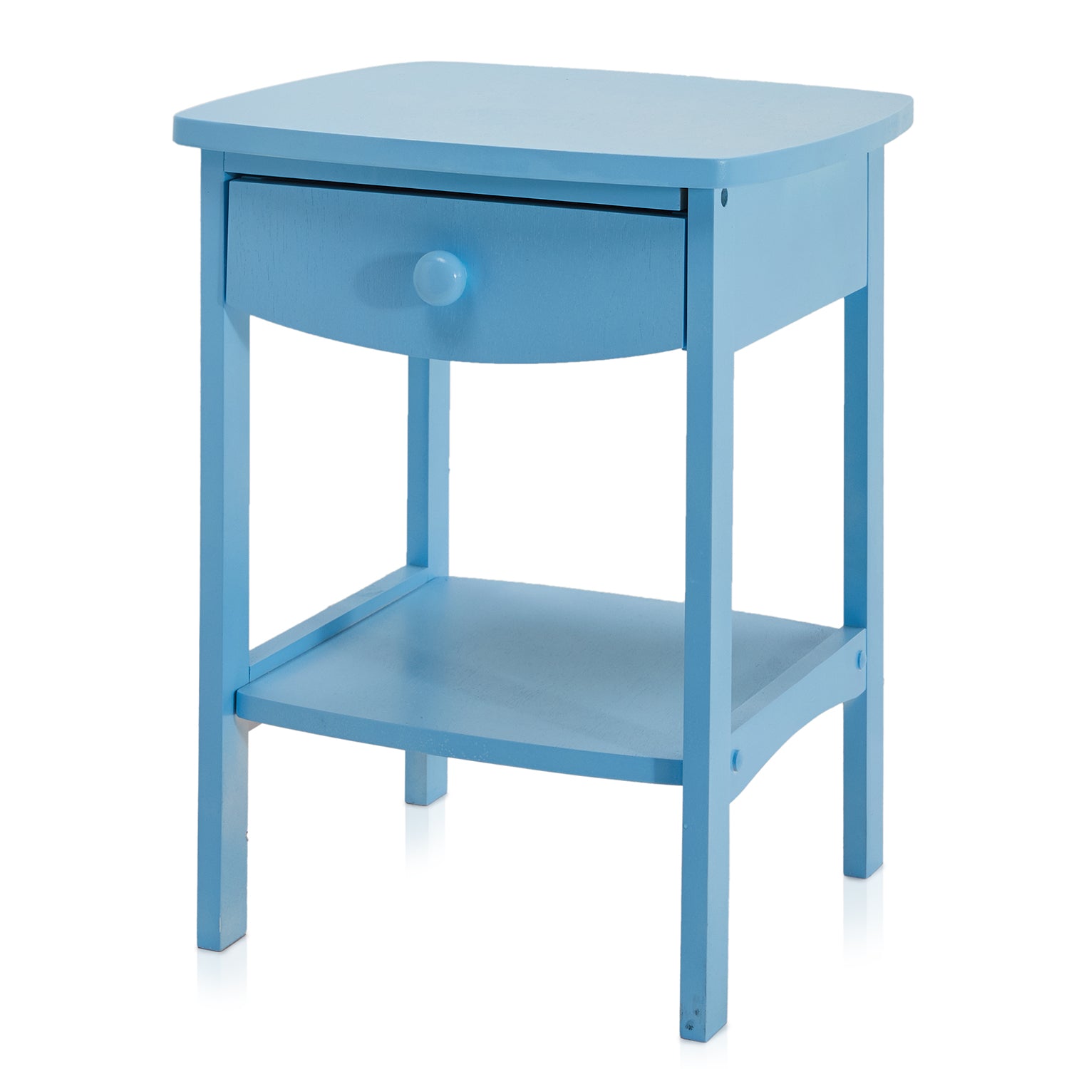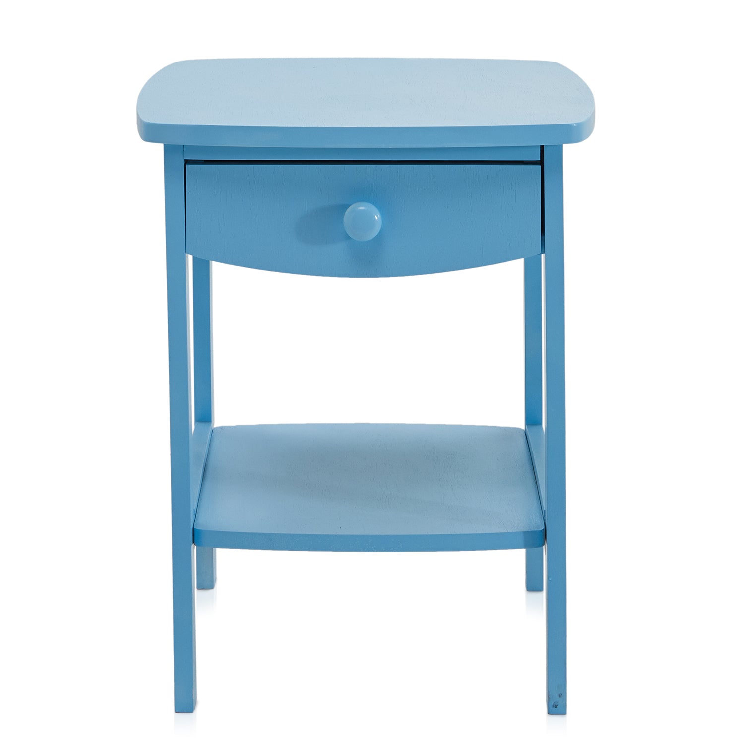 Details: Blue bedside table with classic two tier design and single drawer Dimensions: 22"H x 18" W x 18" D