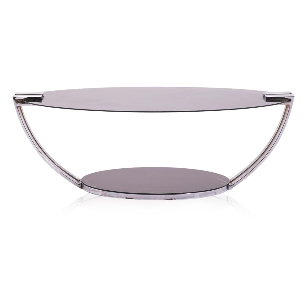 Details: Chrome glass coffee table with stepped sides design Dimensions: 16.25" H x 30" W x 34" D