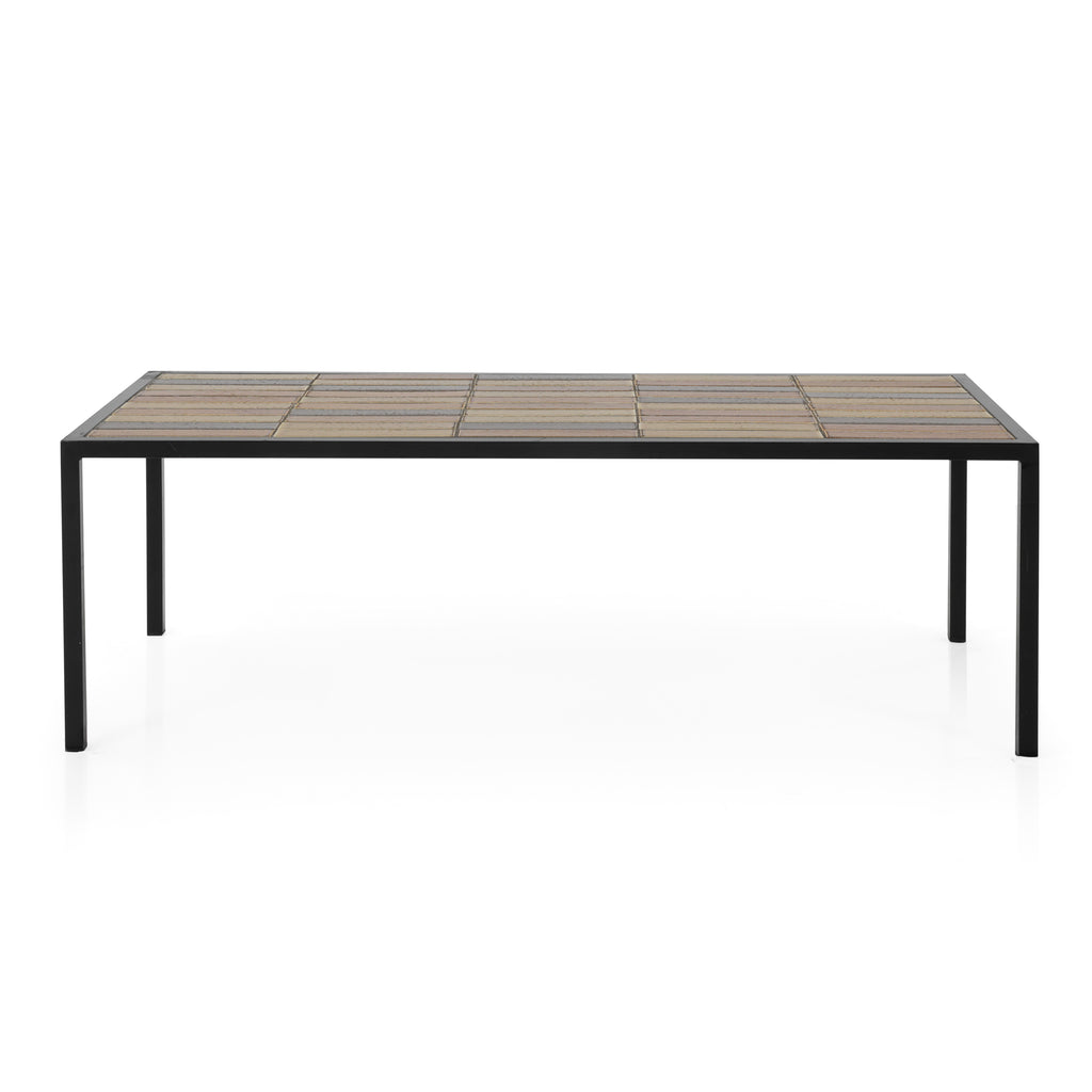 Details: Rectangular wood coffee table with tile mosaic inlay on top. Matching side table available (rented separately). Dimensions: 16.5" H x 56.5" W x 34"...
