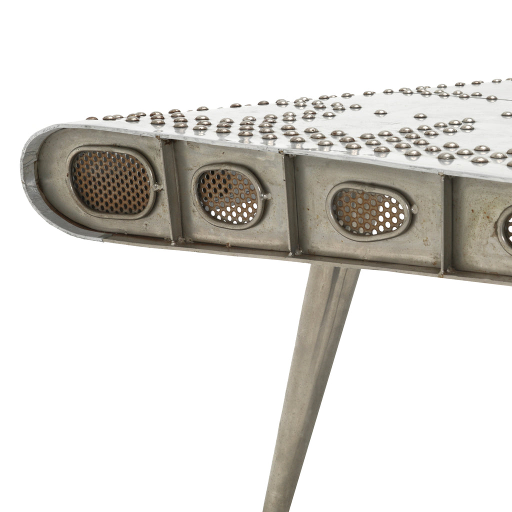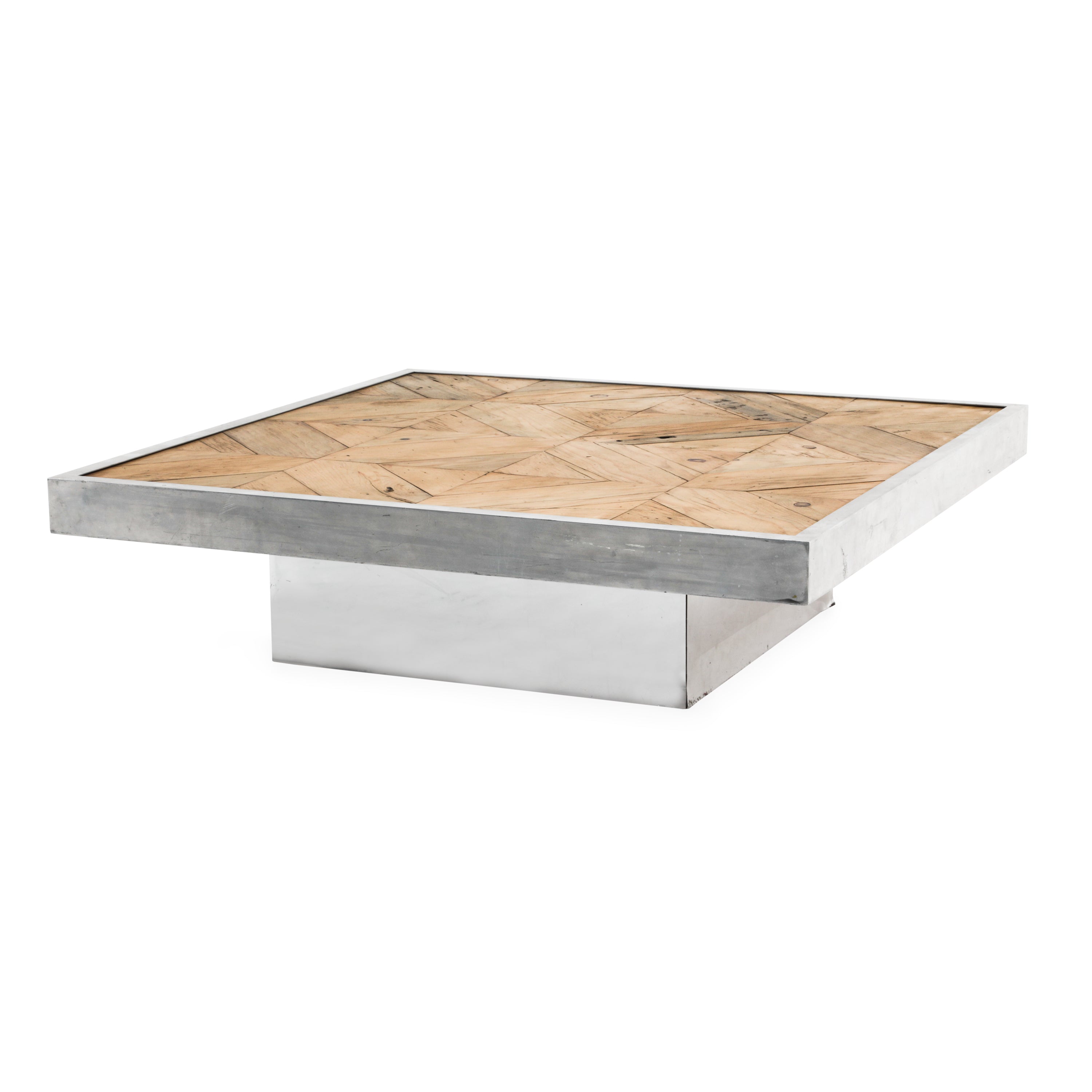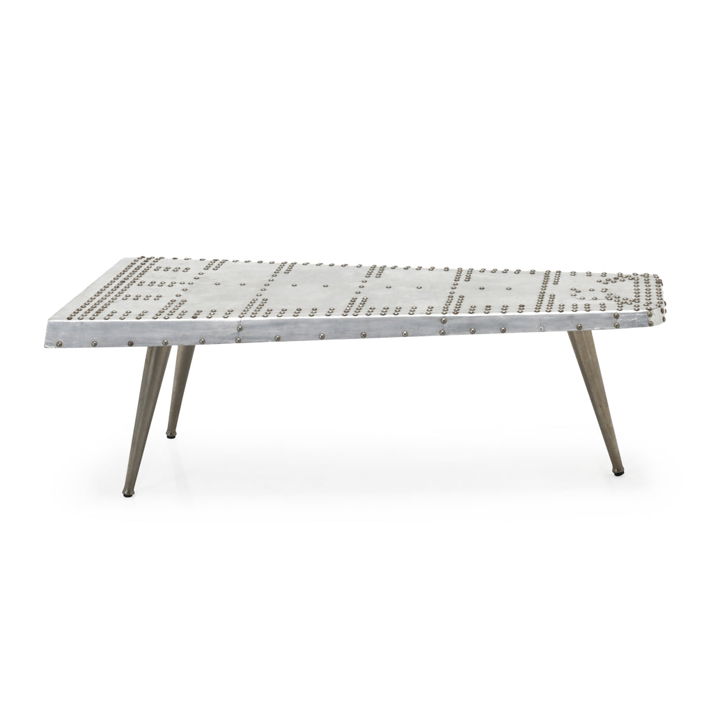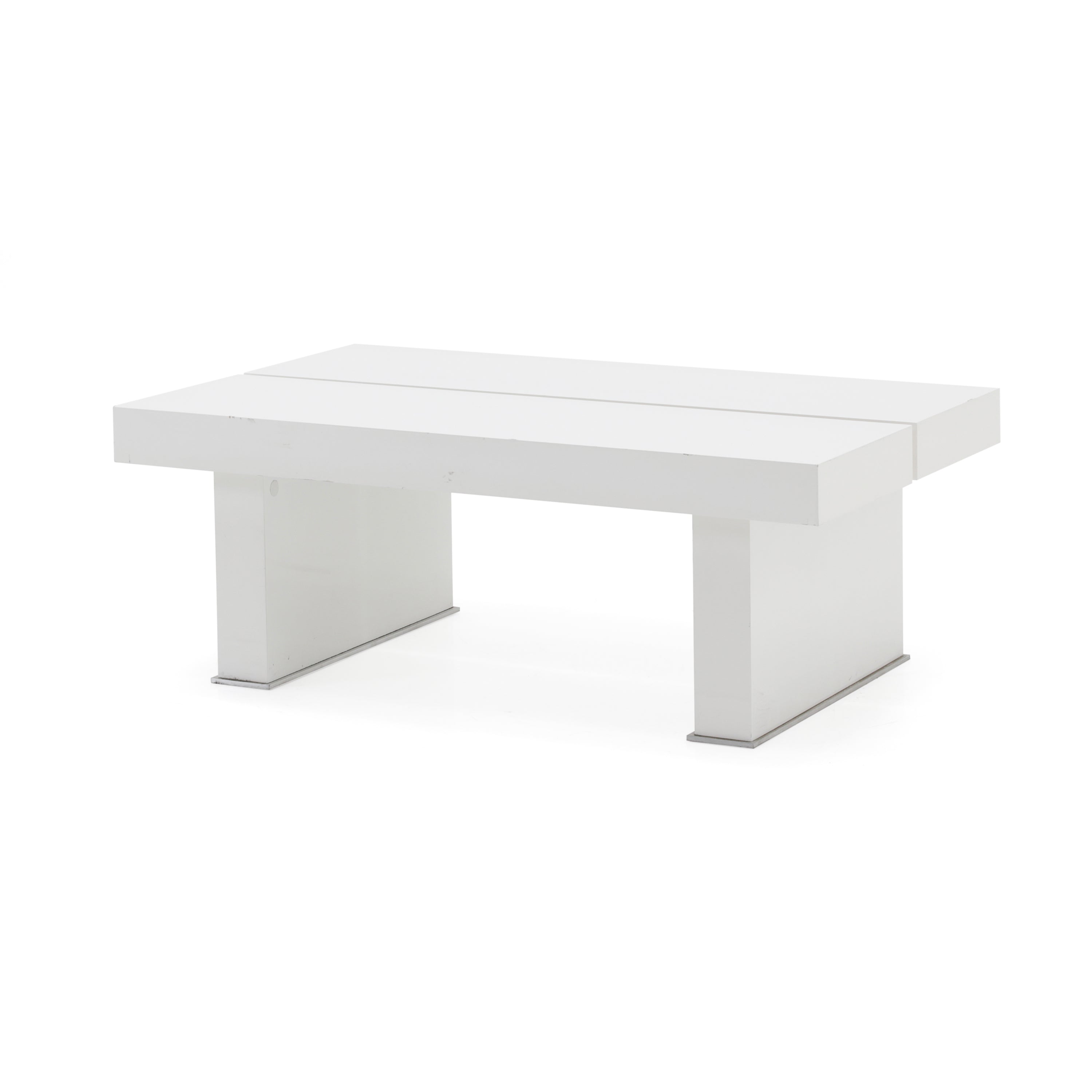Details: Fiberglass coffee table with laminated shades of gray, dark gray and natural dark wood top with slightly curved wood legs Dimensions: 14" H x 47" W...