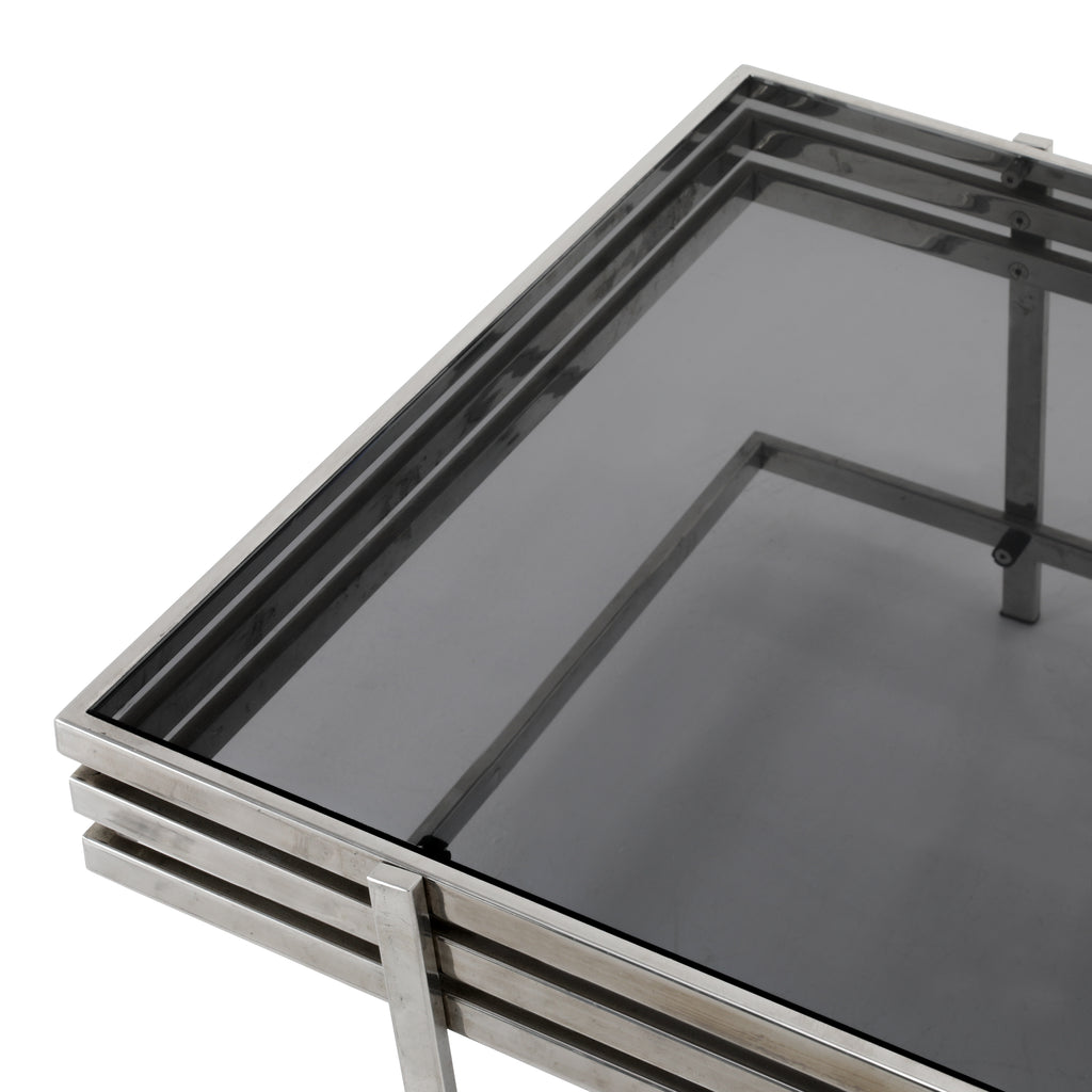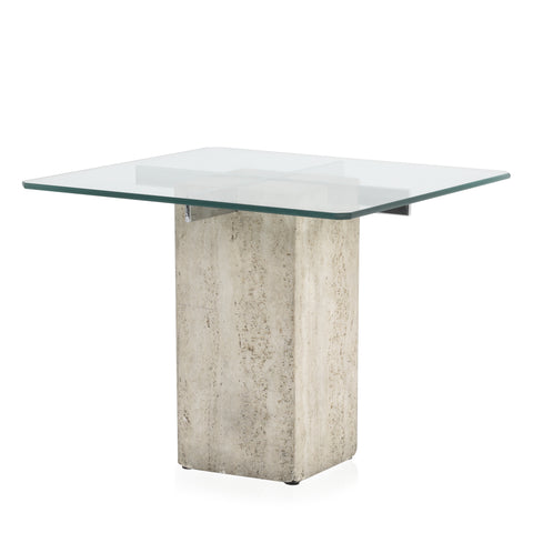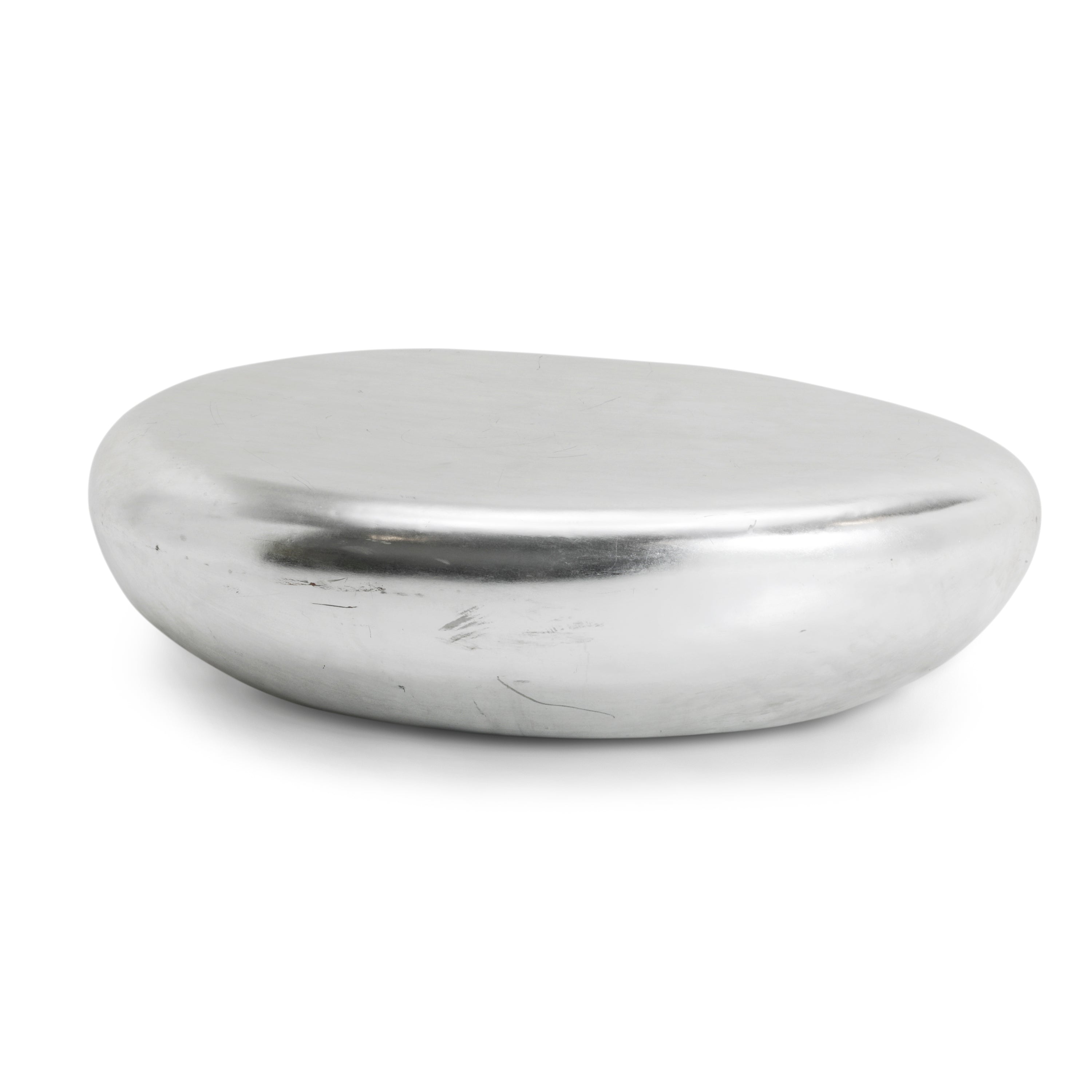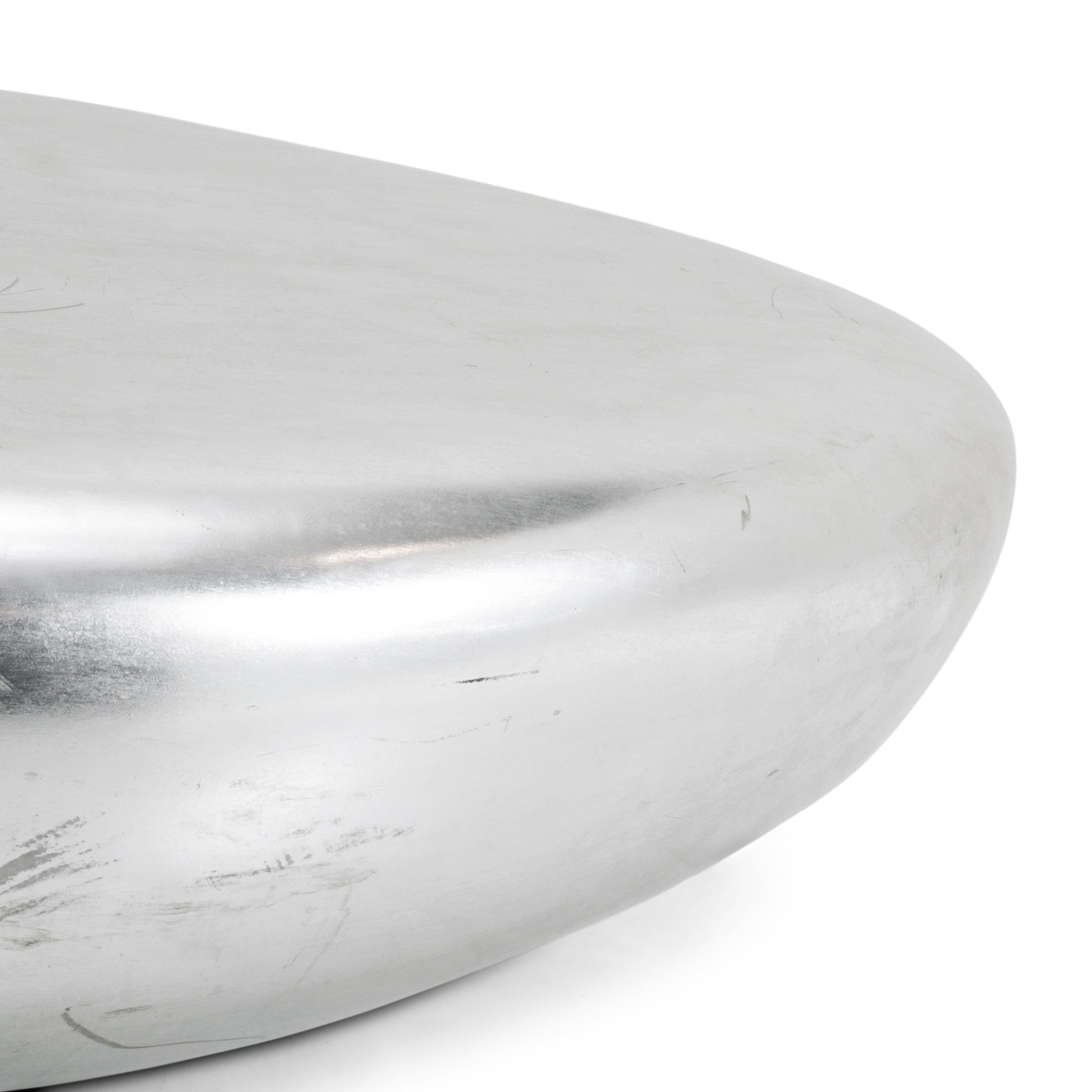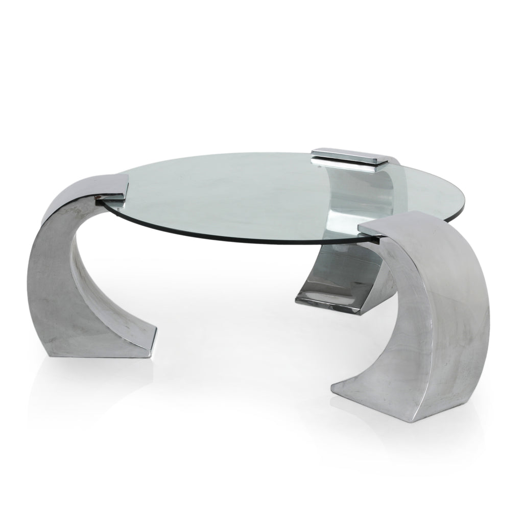 Details: Forged pearl cocktail / coffee table with curved edges and glass top. (Matching side table rented separately) Please note that the table is heavy...