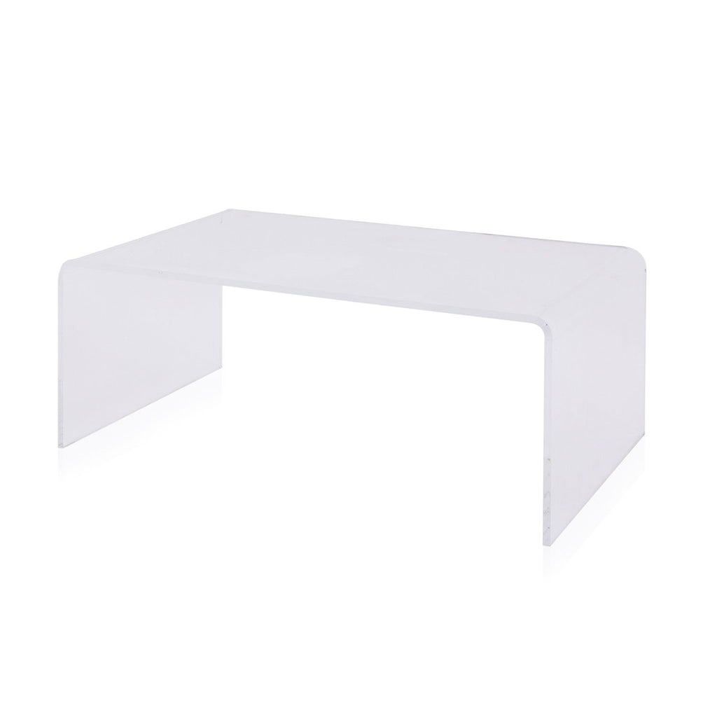 Details: Curved lucite clear coffee table Dimensions: 15" H x 40" W x 24" D Quantity: 1