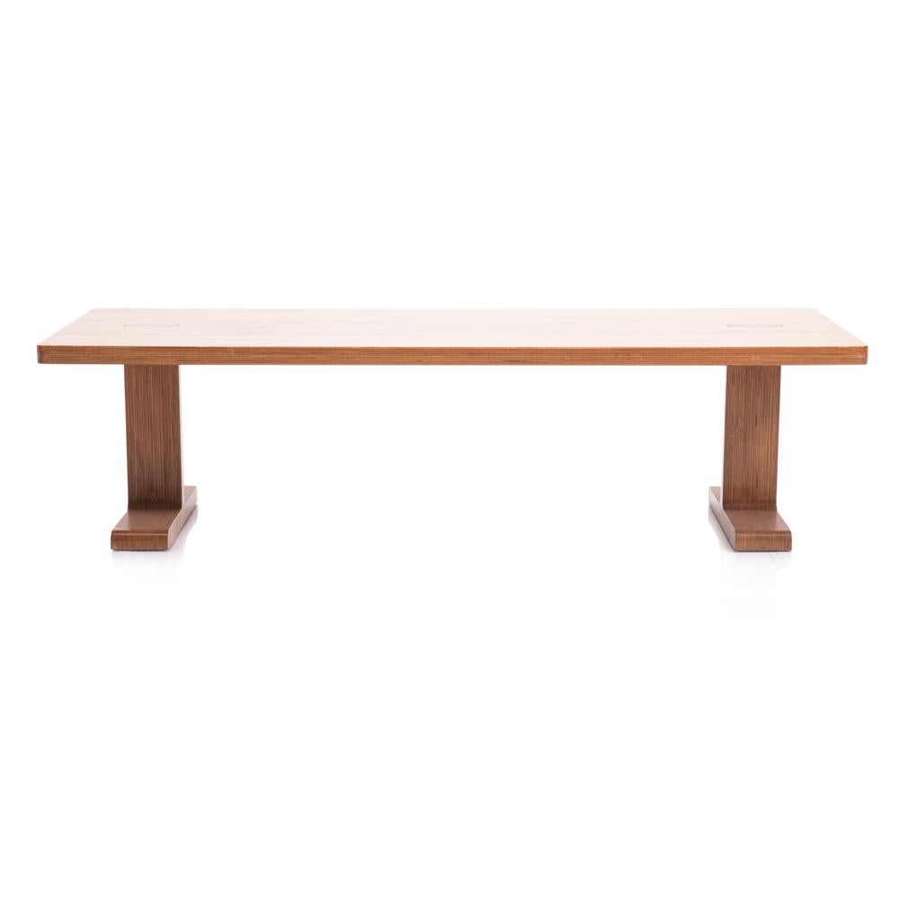 Details: Paul McCobb coffee table with rectangular wood top and skinny brass legs Dimensions: 15.5" H x 62.5" W x 22" D Quantity: 1