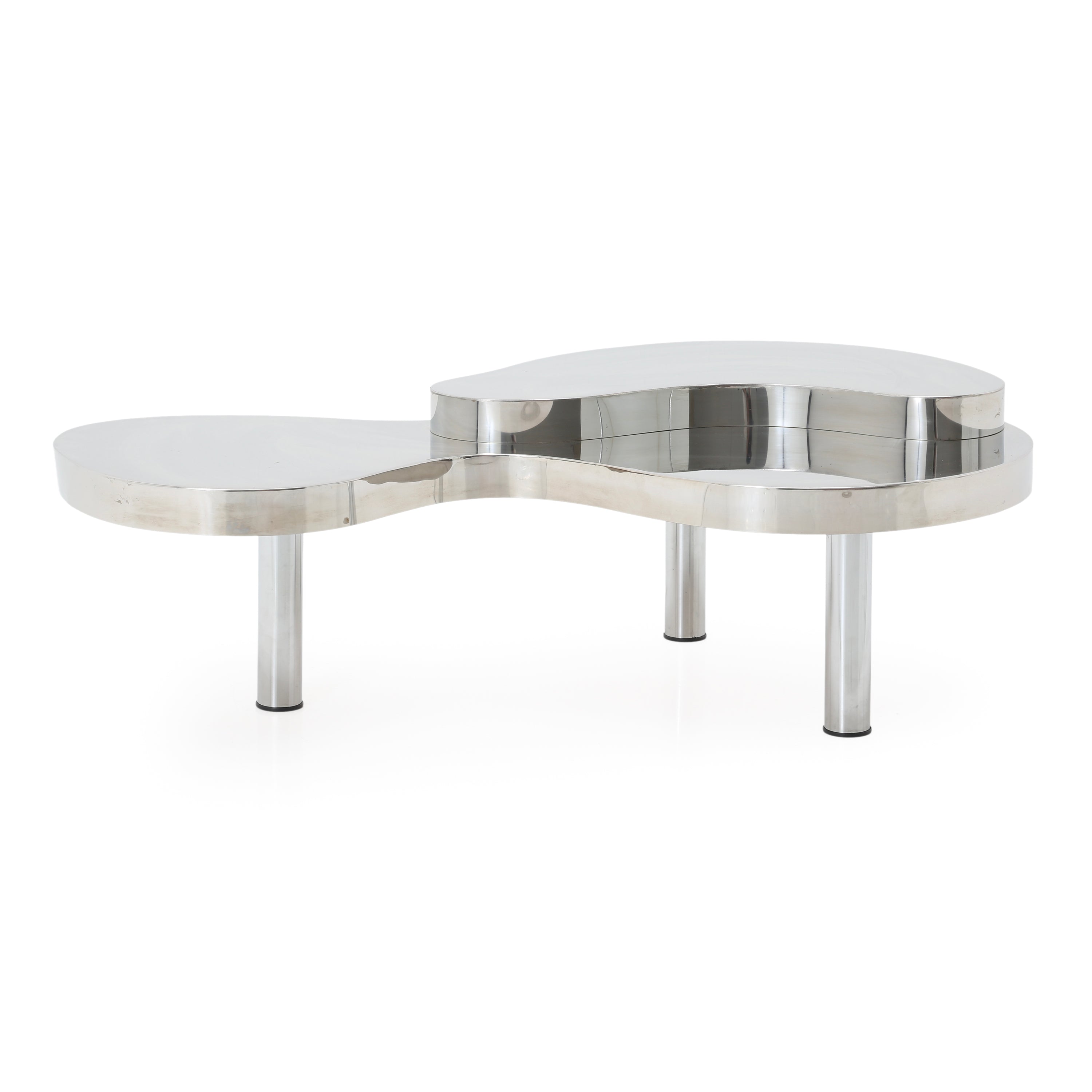 Details: Coffee table with curved shelves and thin legs. Dimensions: 27" H x 33" W x 21" D