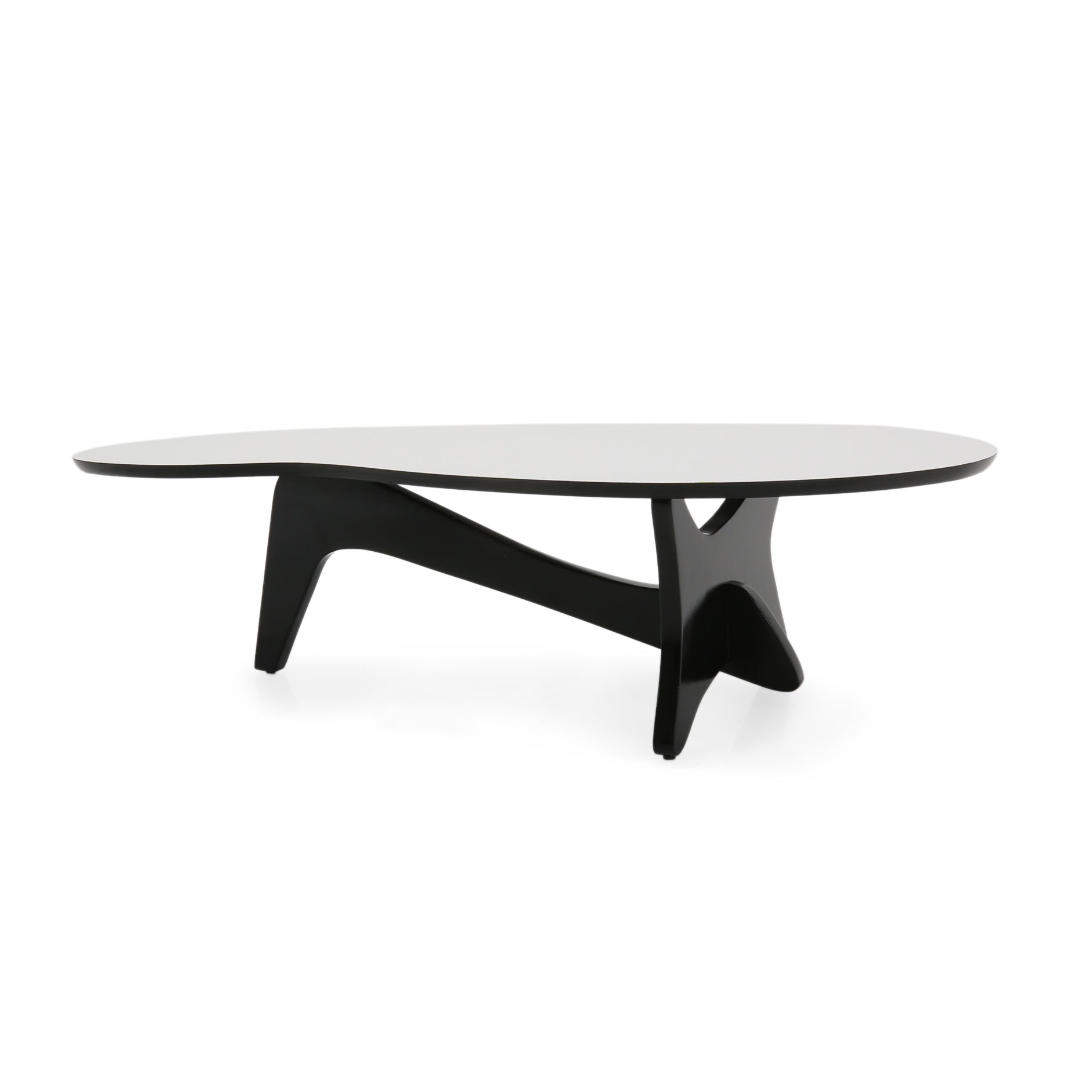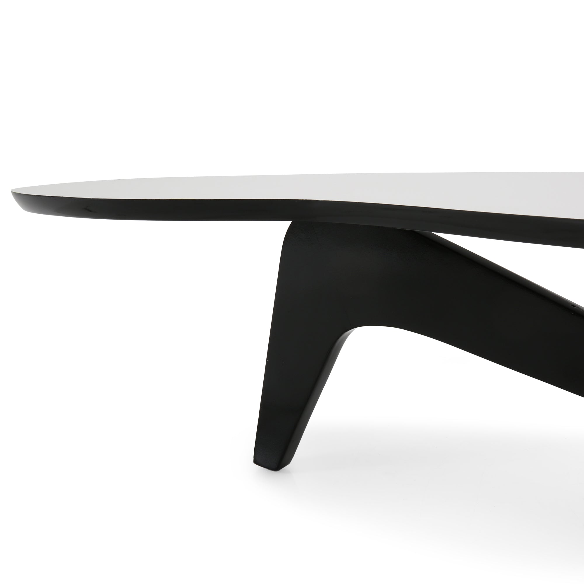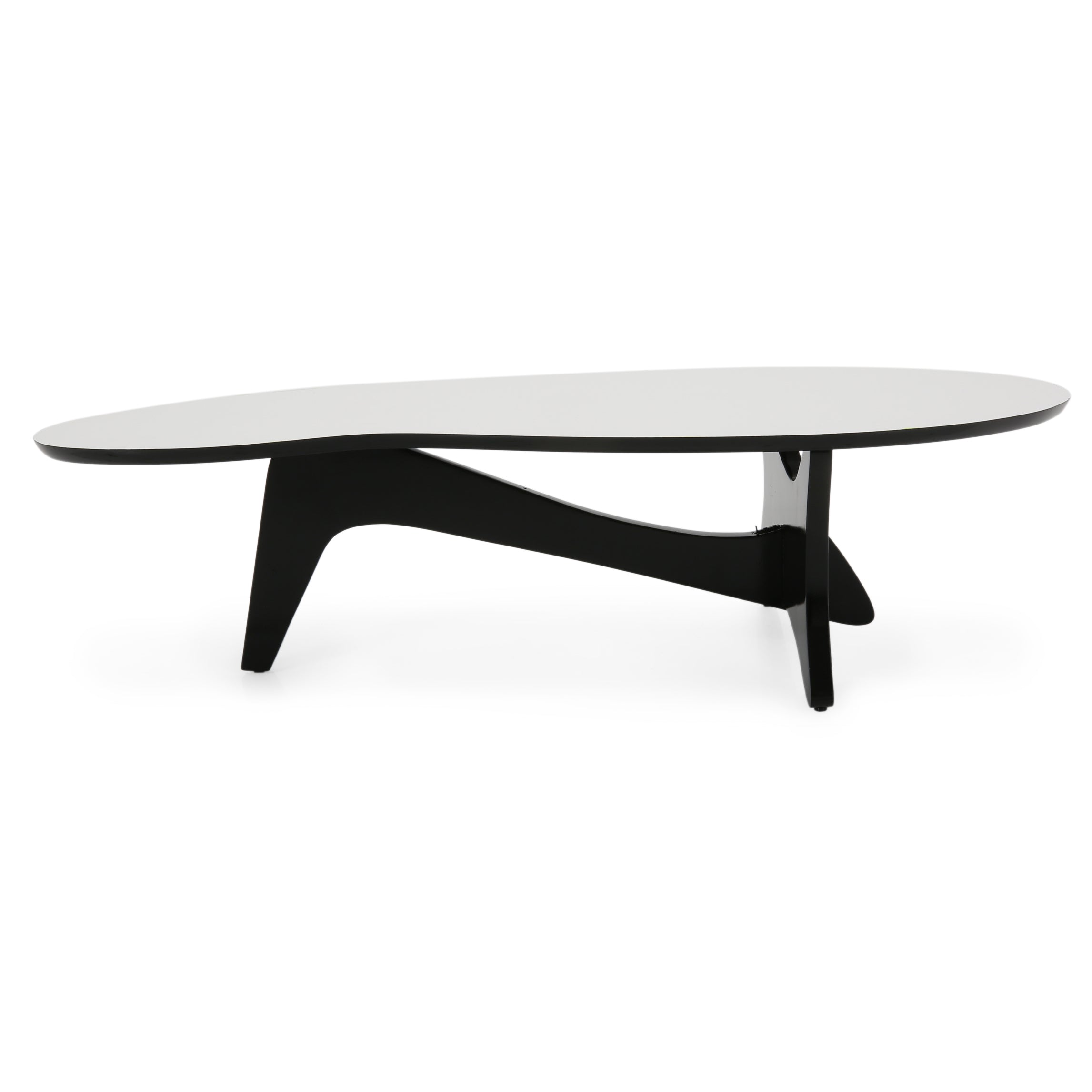 Details: Black coffee table with white top and glass cutaway window and metal "harp string" magazine rack underneath Dimensions: 14.6 " H x 60" W x 17.5" D ...
