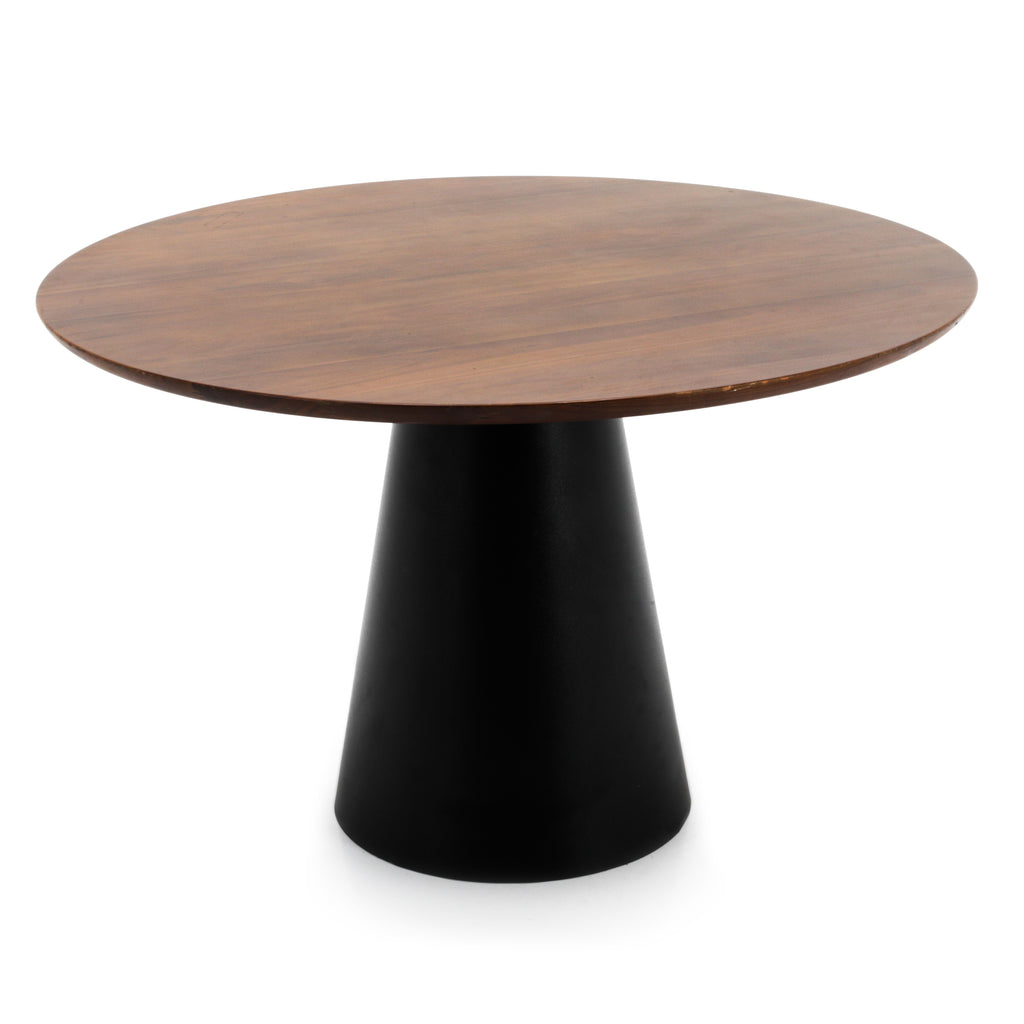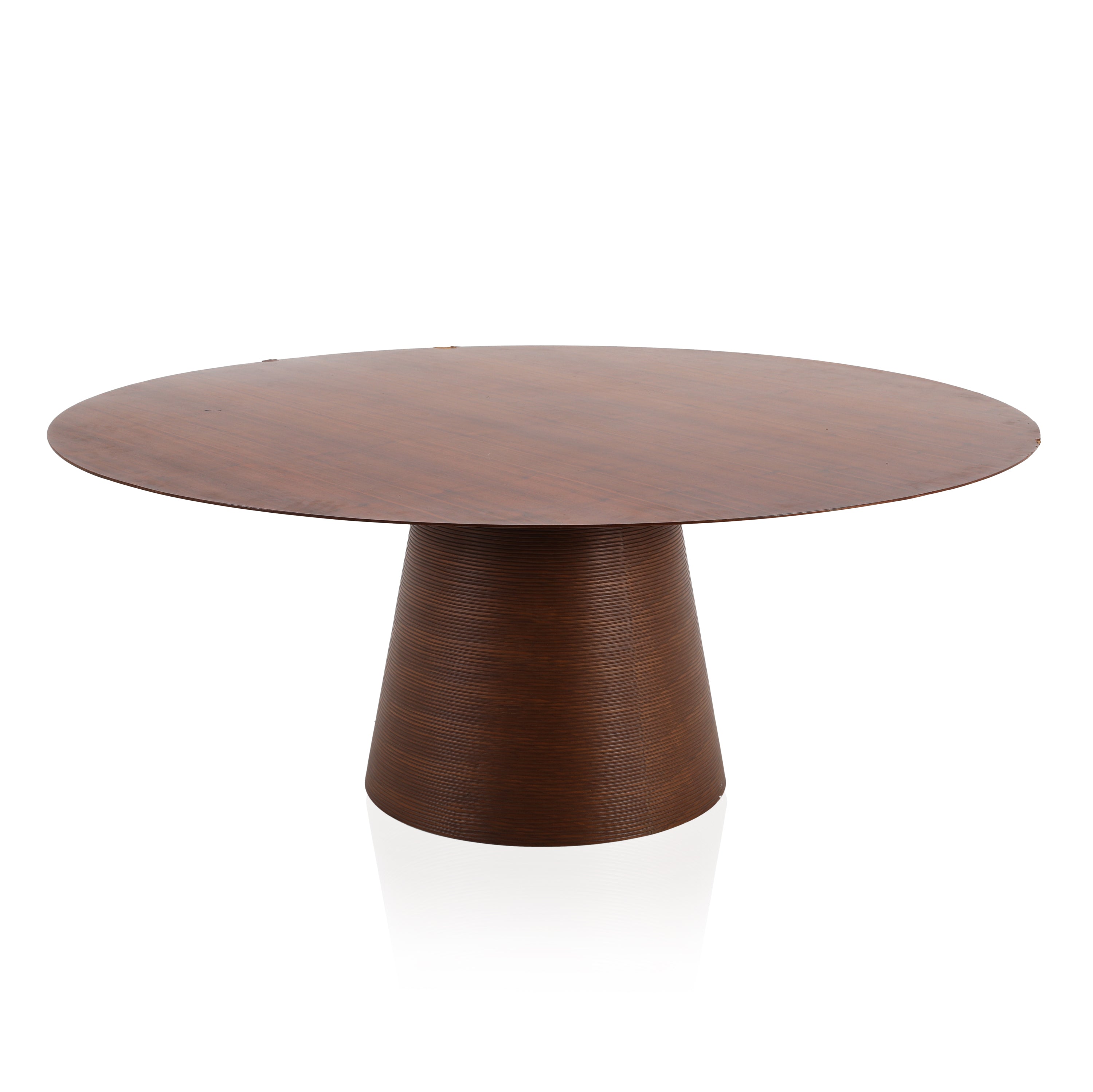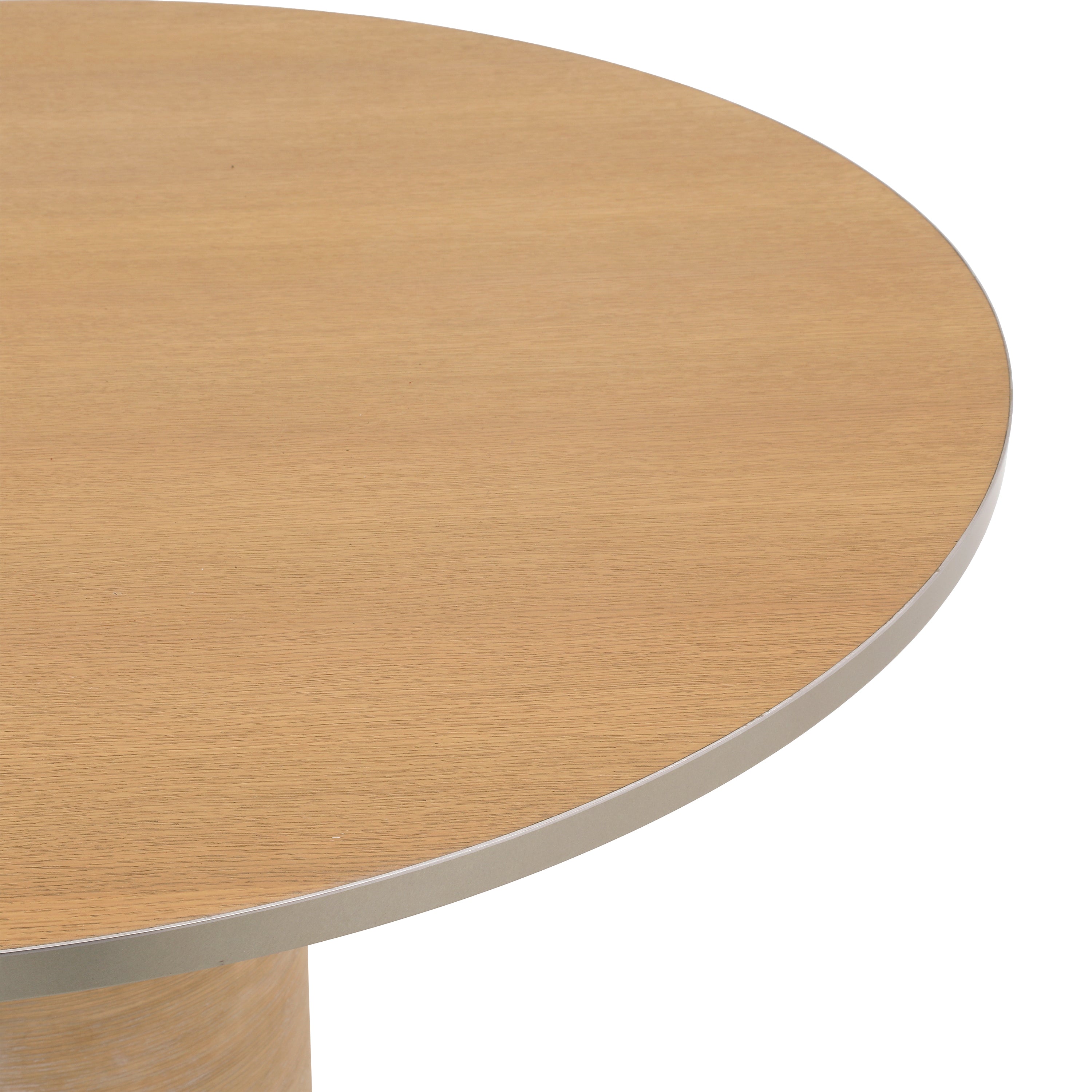 Details: Large round wood dining table. Some noticeable wear and tear on table top. (TEAM LIFT, REMOVABLE TOP WITH FRAGILE EDGE) Dimensions: 29.5" H x...