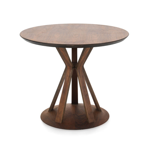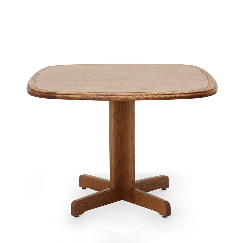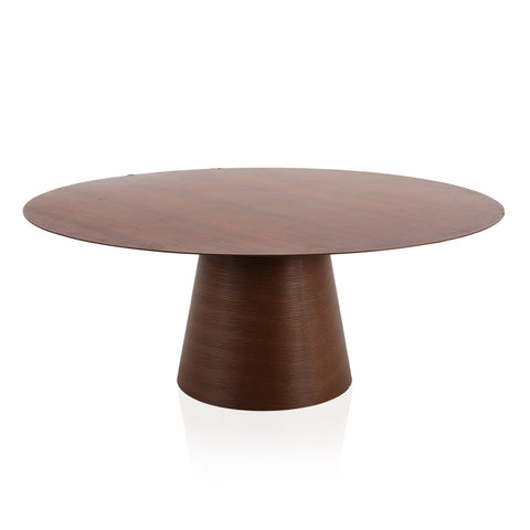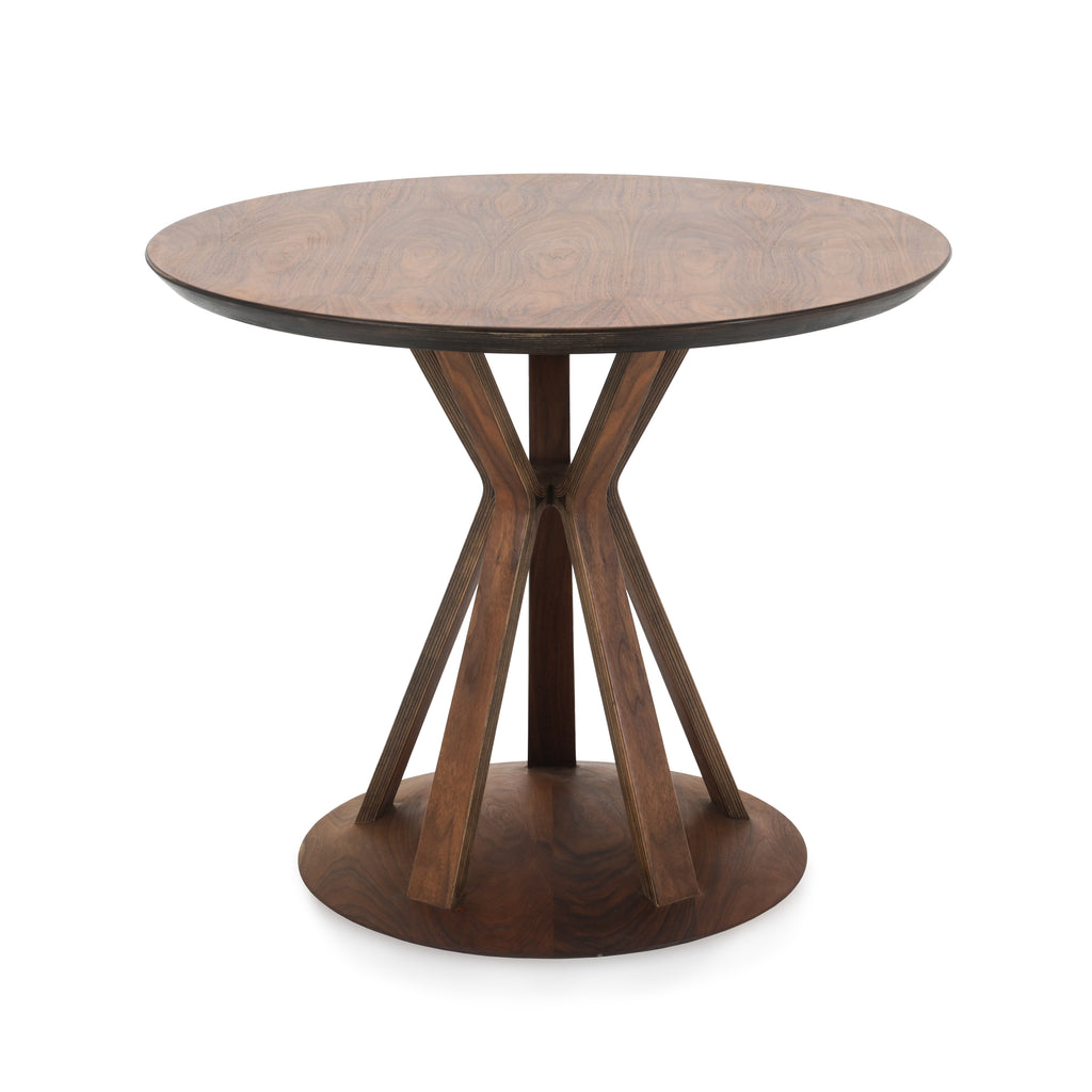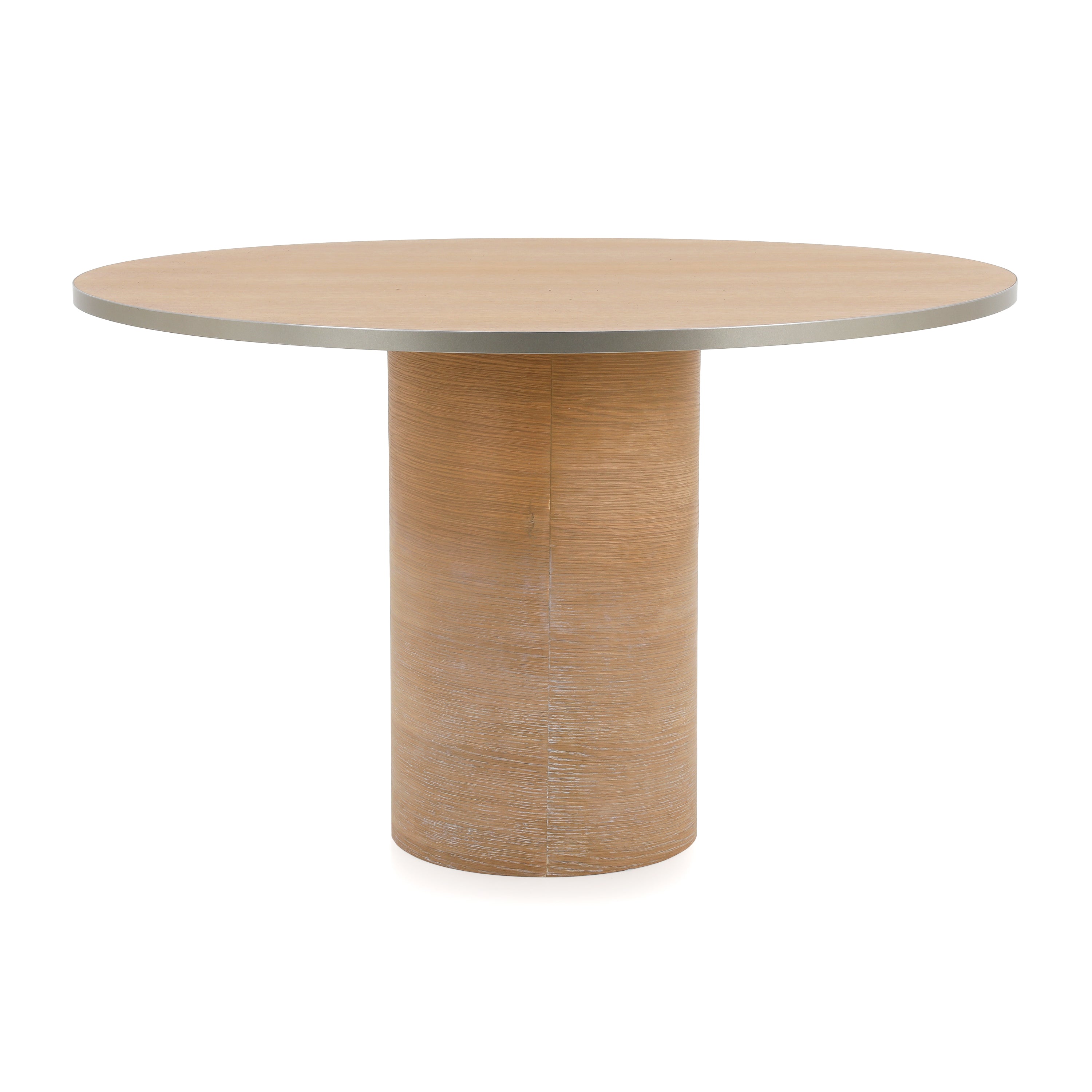 Details: Large round wood dining table. Some noticeable wear and tear on table top. (TEAM LIFT, REMOVABLE TOP WITH FRAGILE EDGE) Dimensions: 29.5" H x...
