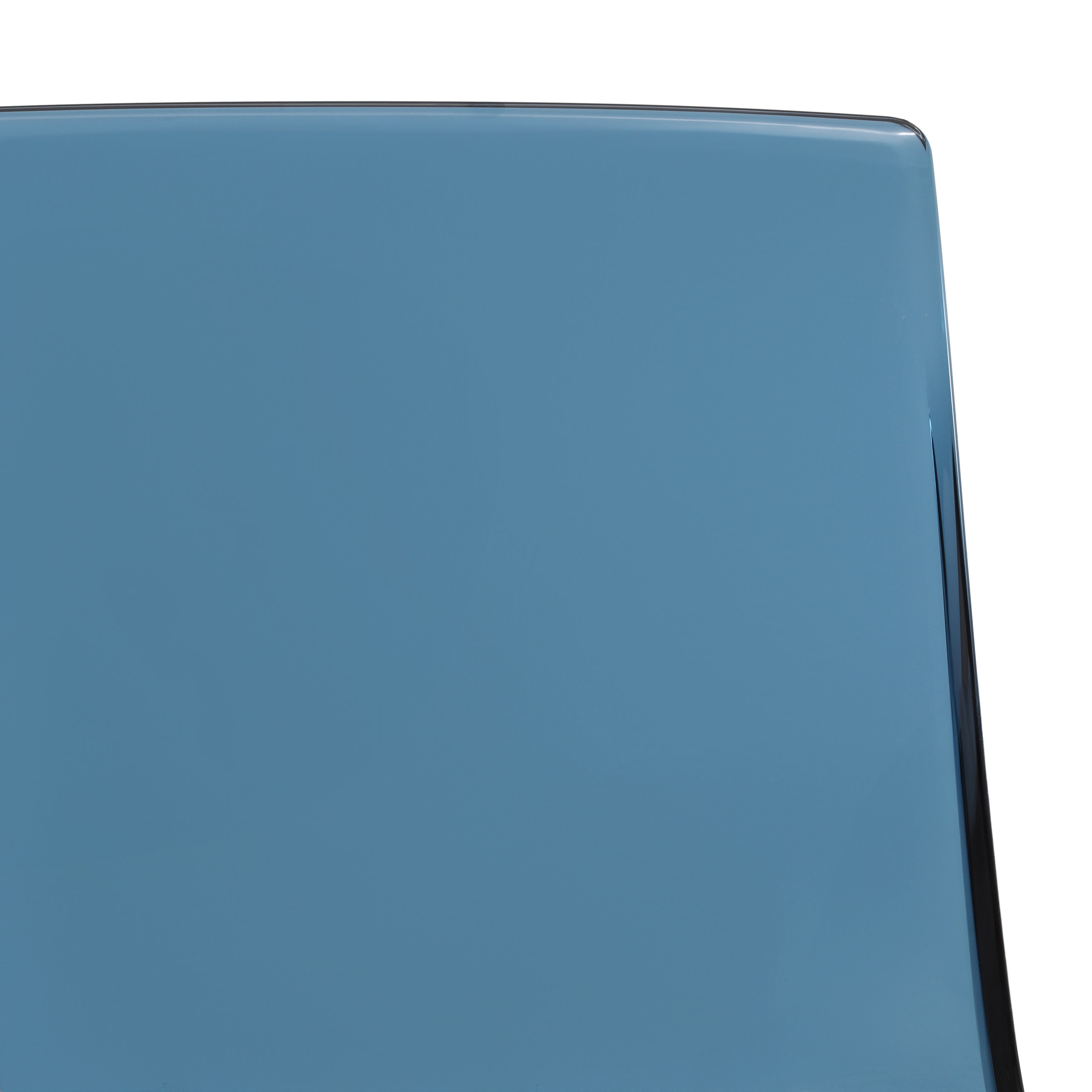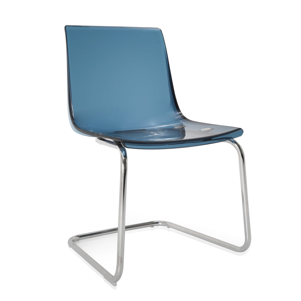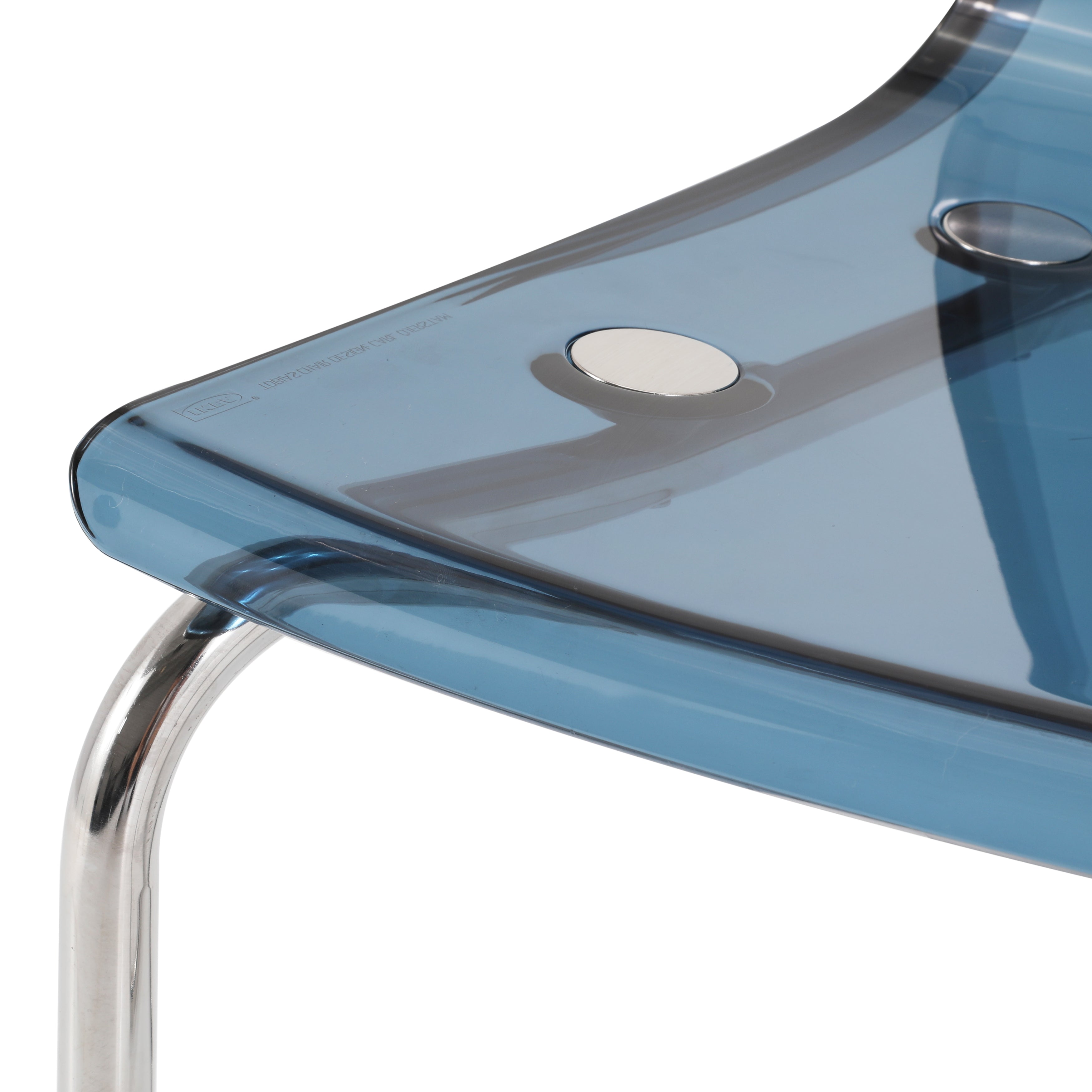 Details: Blue acrylic accent chair with chrome legs Dimensions: 32.25" H x 22" W x 22" H Quantity: 1