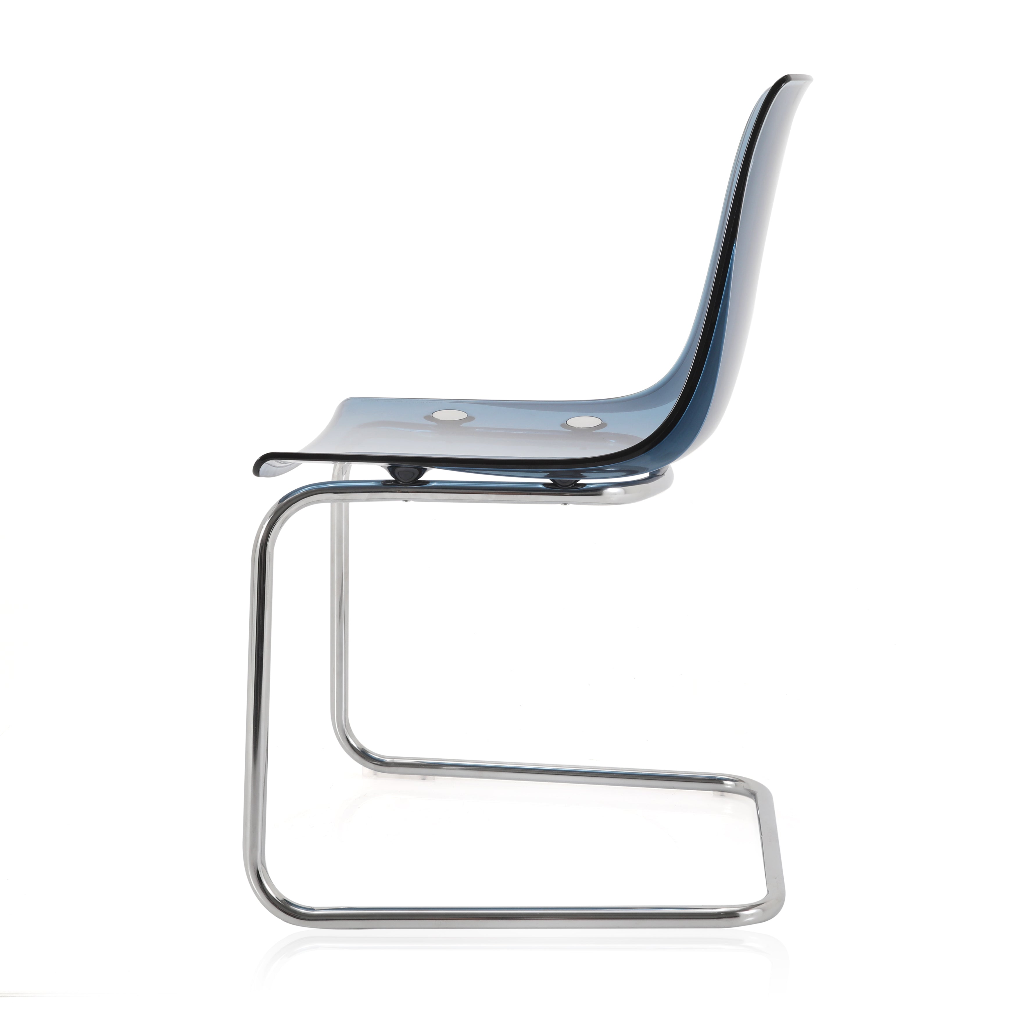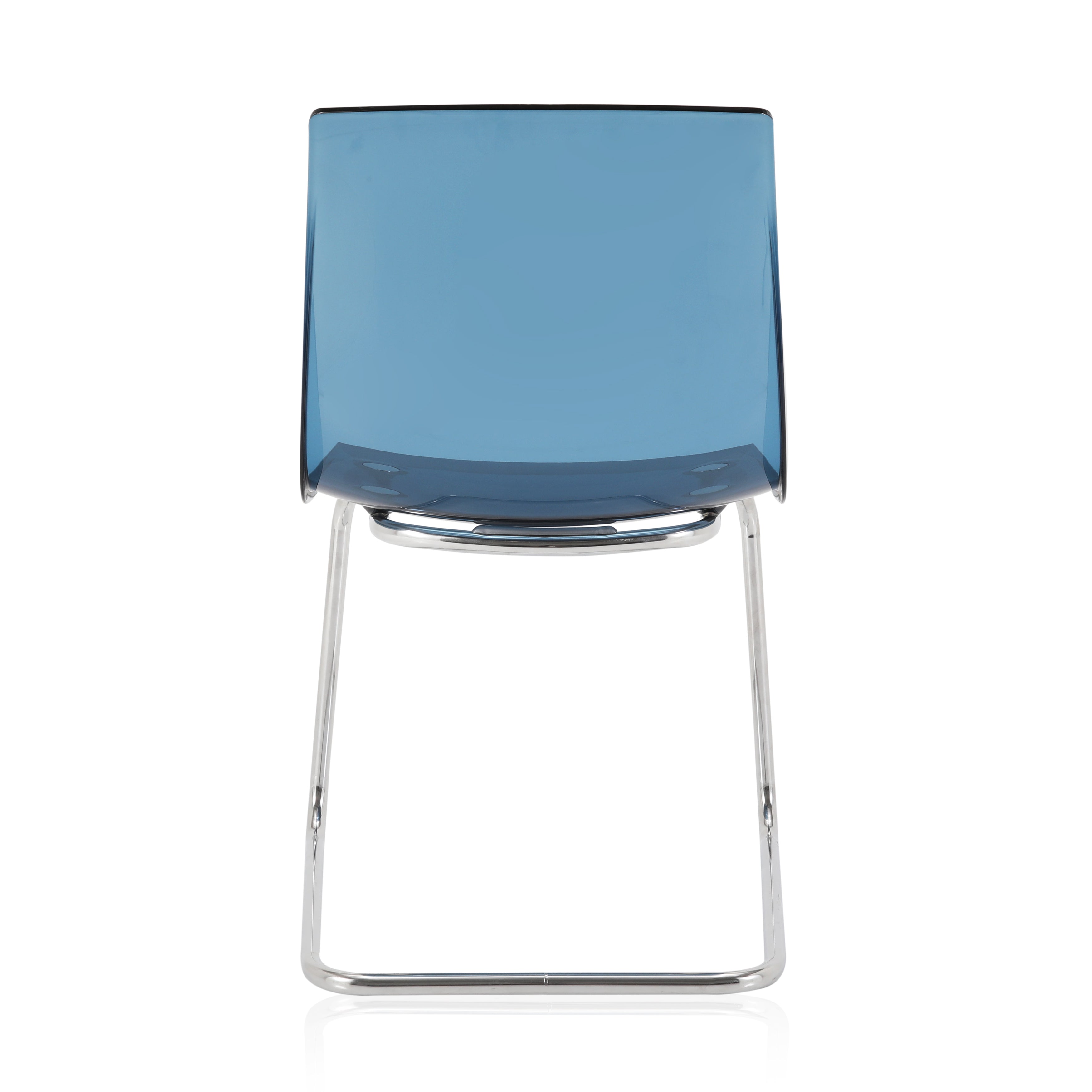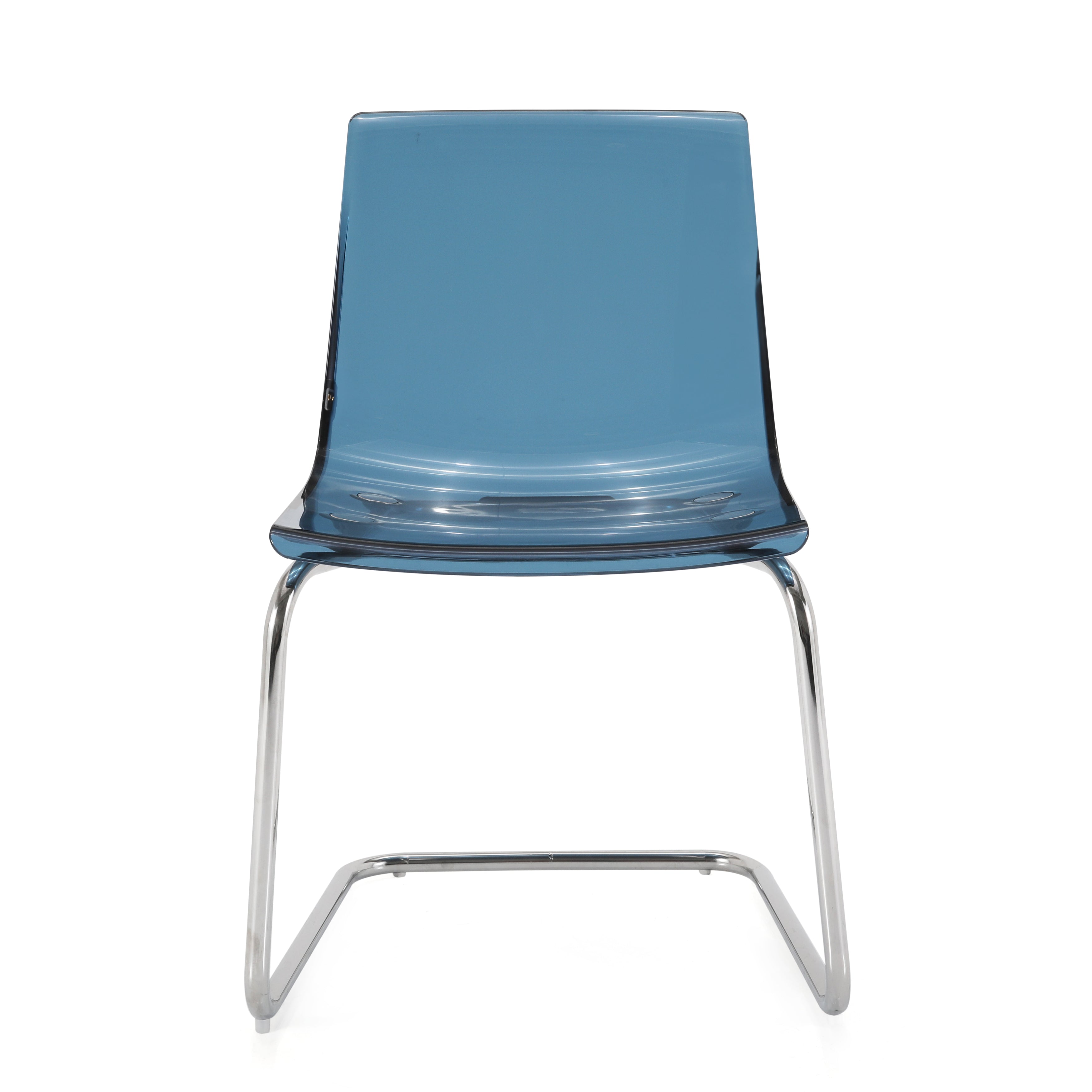 Details: Blue acrylic accent chair with chrome legs Dimensions: 32.25" H x 22" W x 22" H Quantity: 1