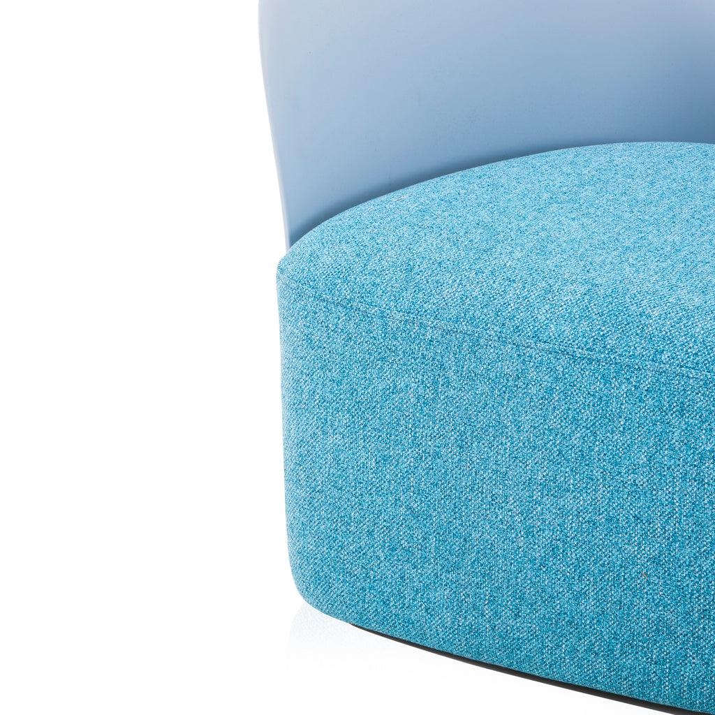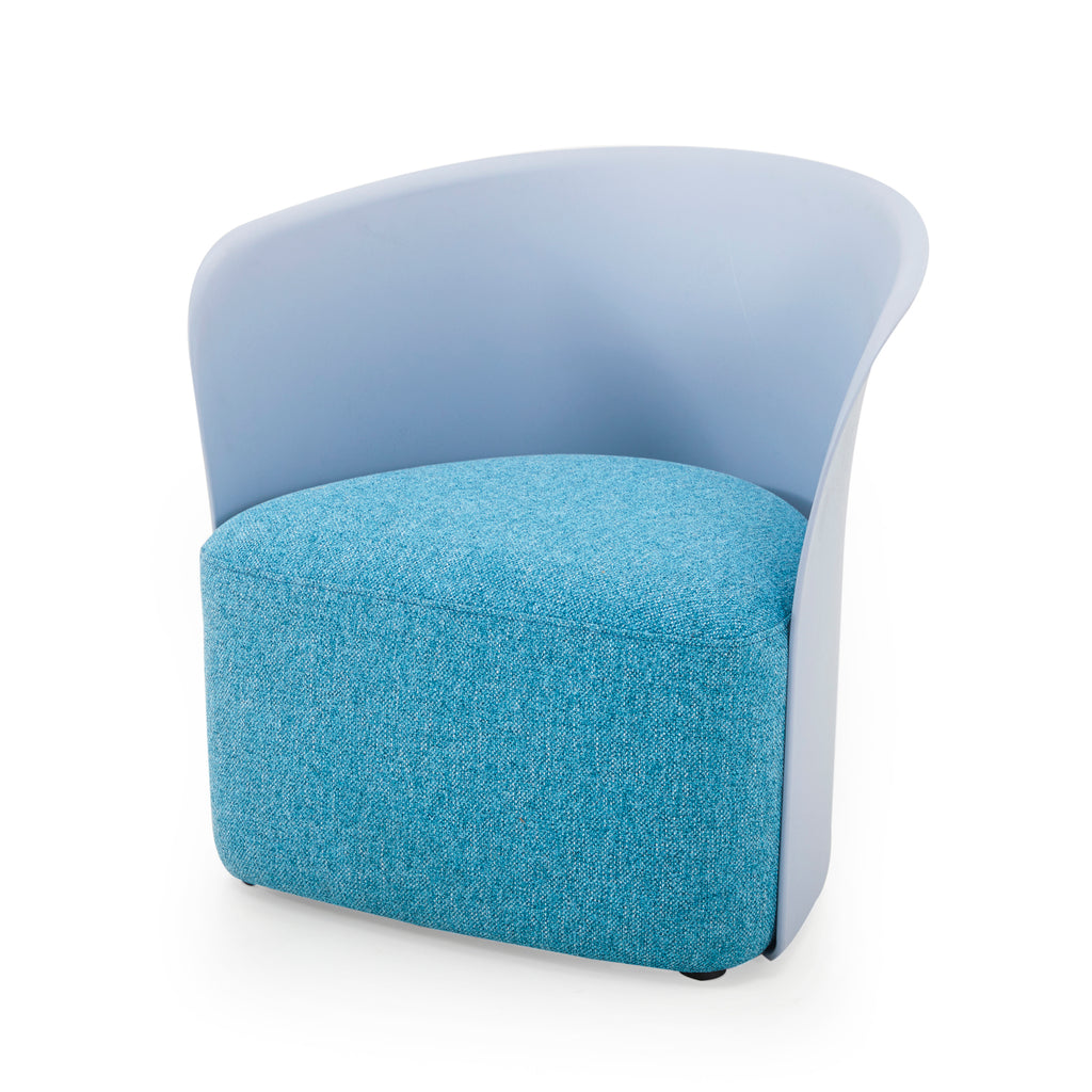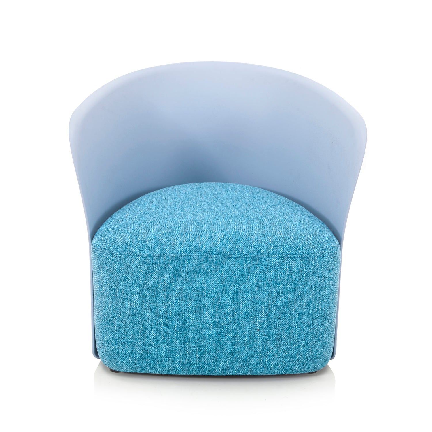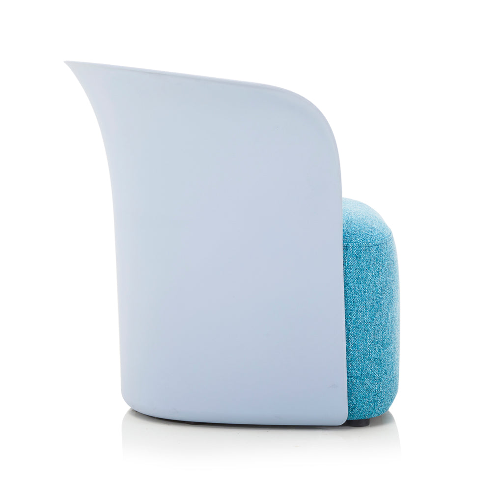 Details: Contemporary club chair with pale blue hard plastic shell and turquoise seat cushion Dimensions: 27" H x 28" W x 24" D