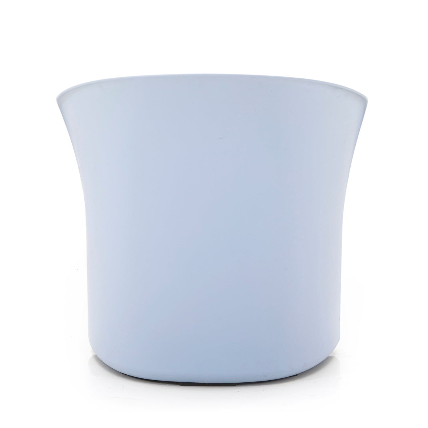 Details: Aqua blue round metal end table with three legs Dimensions: 12.5" H x 19.5" W x 18" D