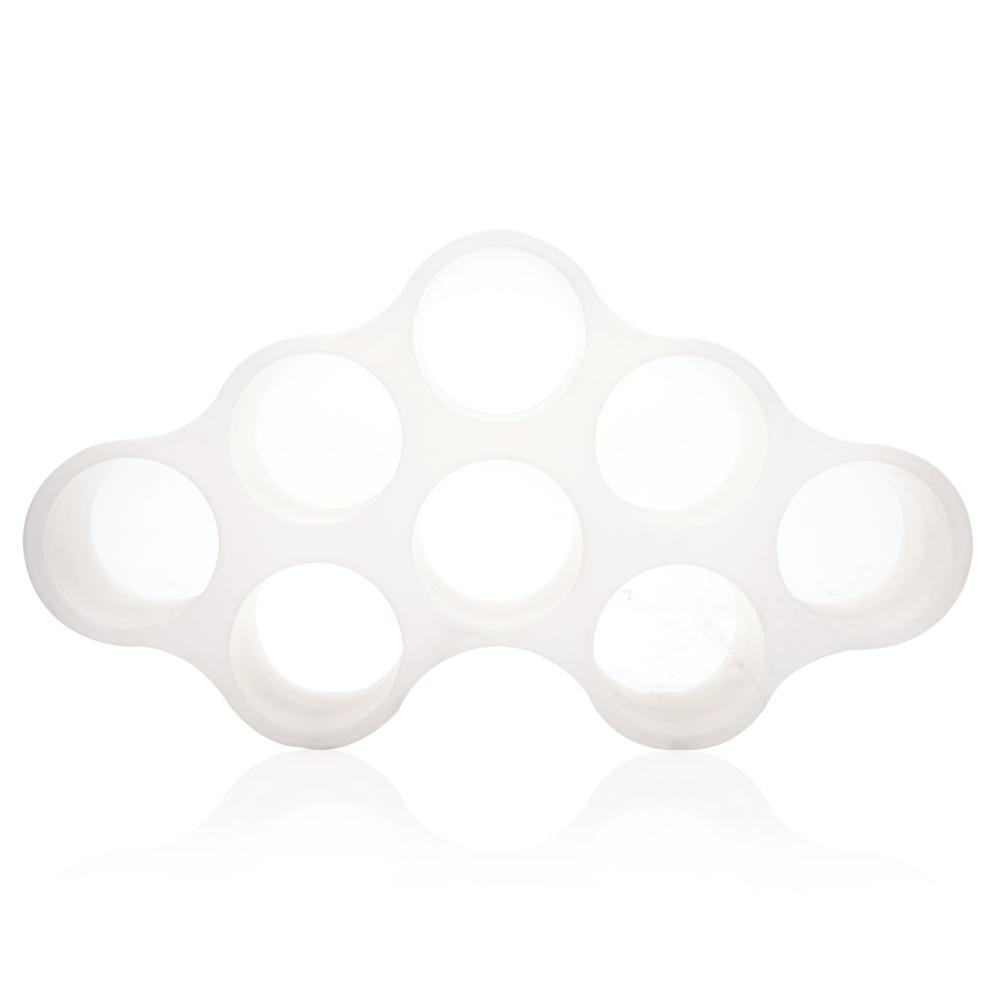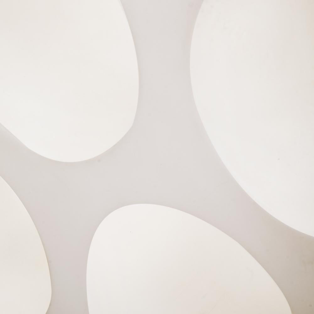 Details: lightweight, connected circles, opaque / frosted off-white molded plasticDimensions: 41" H x 73.5" W x 18" D QTY: 4