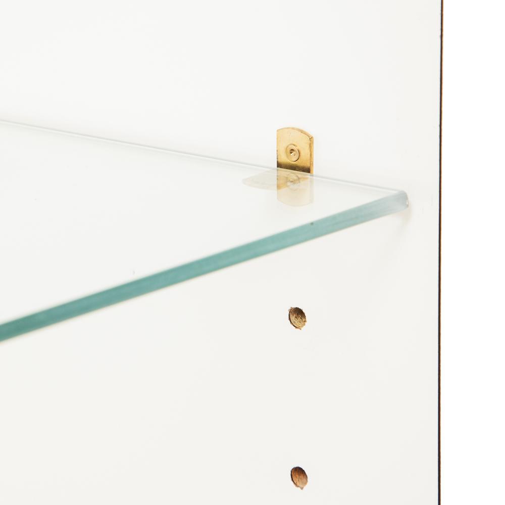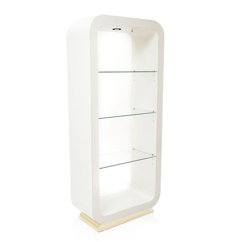 Dimensions: Cream/ Off-white Lacquer Bookshelf with Gold Base, 3x Glass Shelves Dimensions: 77" H x 34" W x 16" D