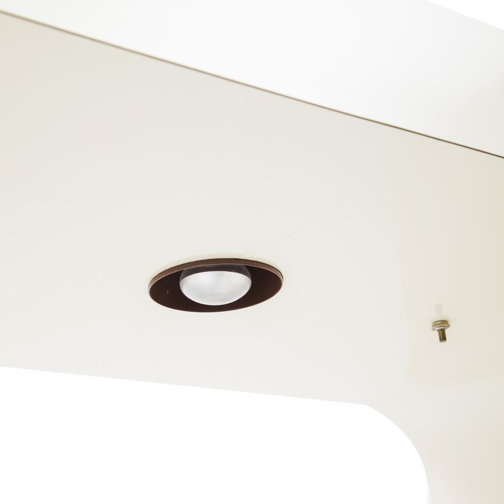 Details: Dark wooden table with 2 legs and adjacent structure made into a series of shelving units Dimensions: 36.5" H x 36" W x 35"...