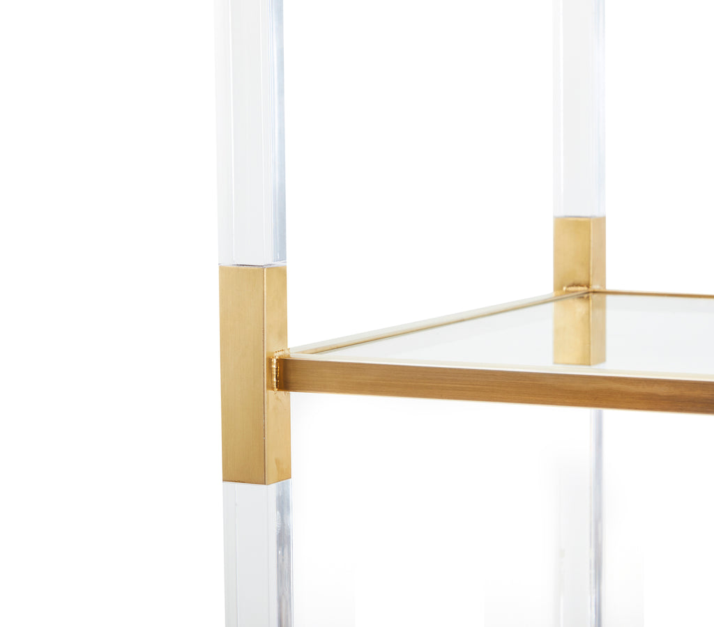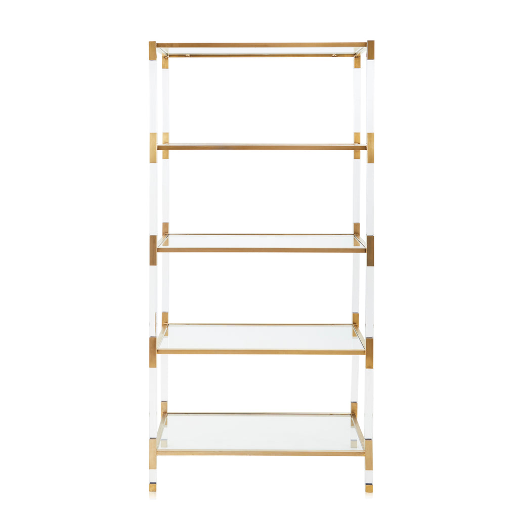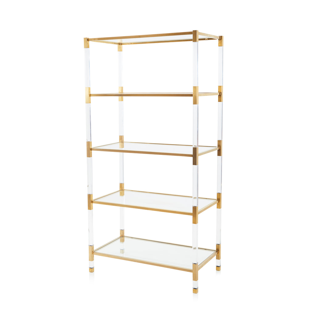 Details: Shelving unit with lucite stands and glass plates Dimensions: 70" H x 36" W x 20" D Quantity: 1