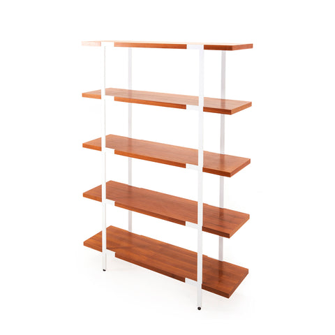 Details: 5-Tier wood plank bookshelf with white metal frameDimensions: 67" H x 48" W x 13" DQuantity: 1