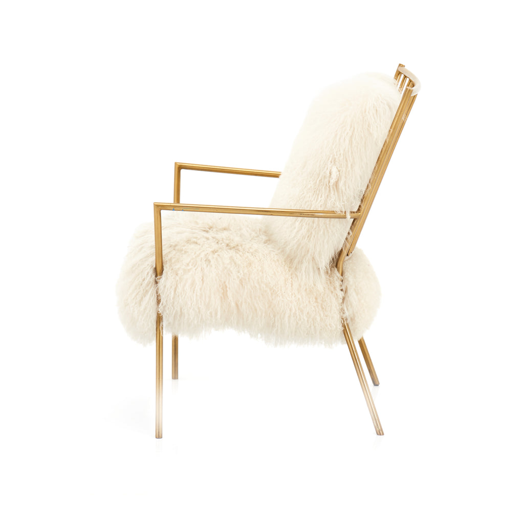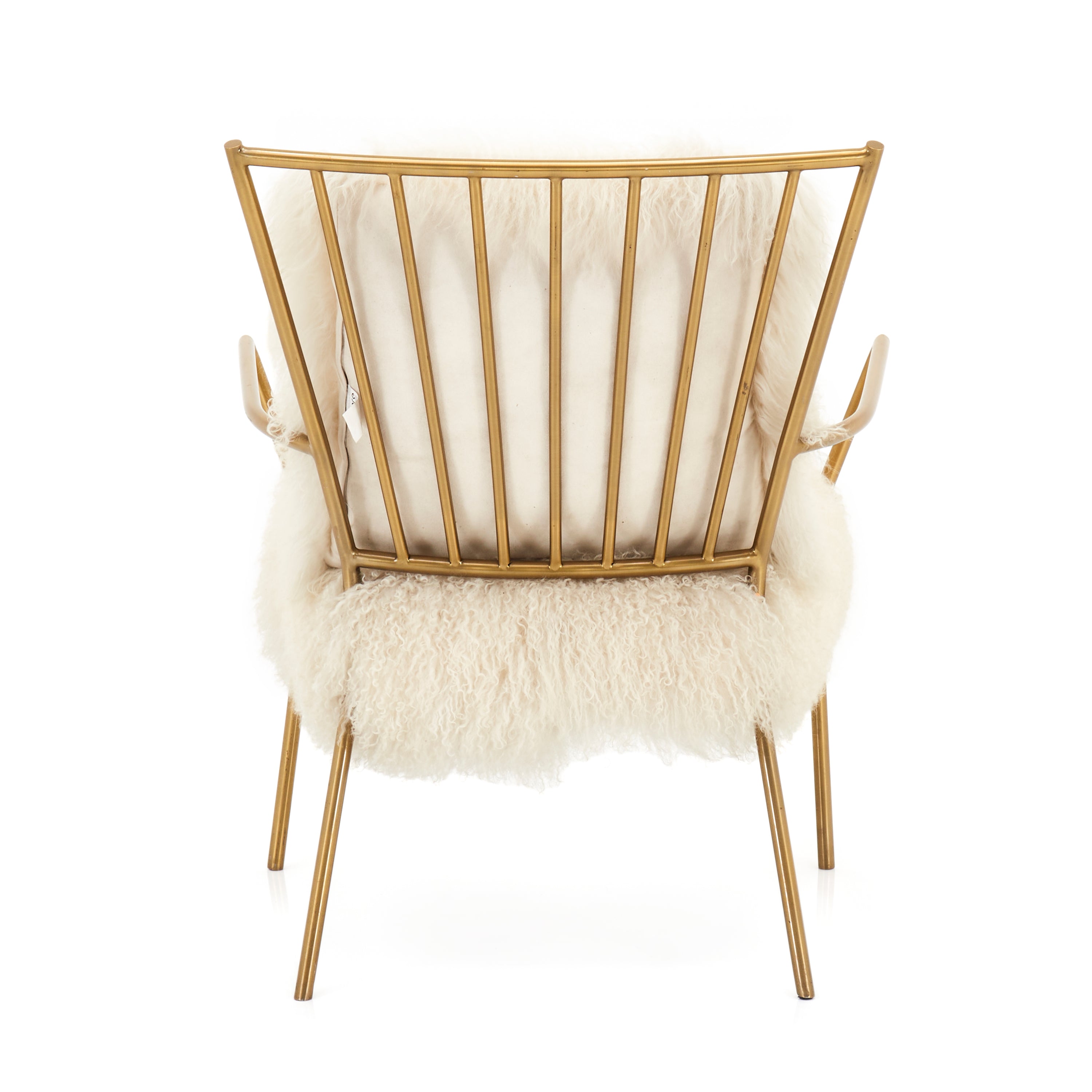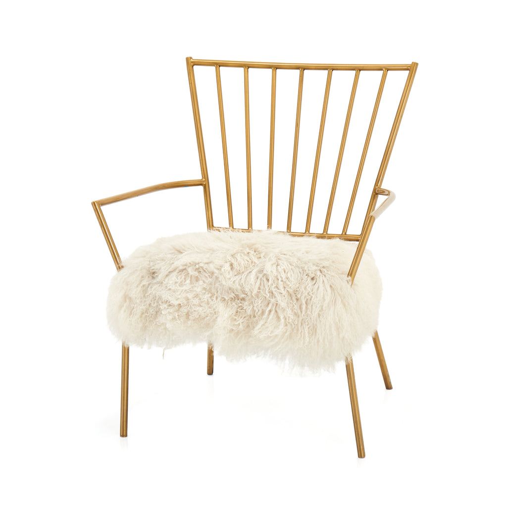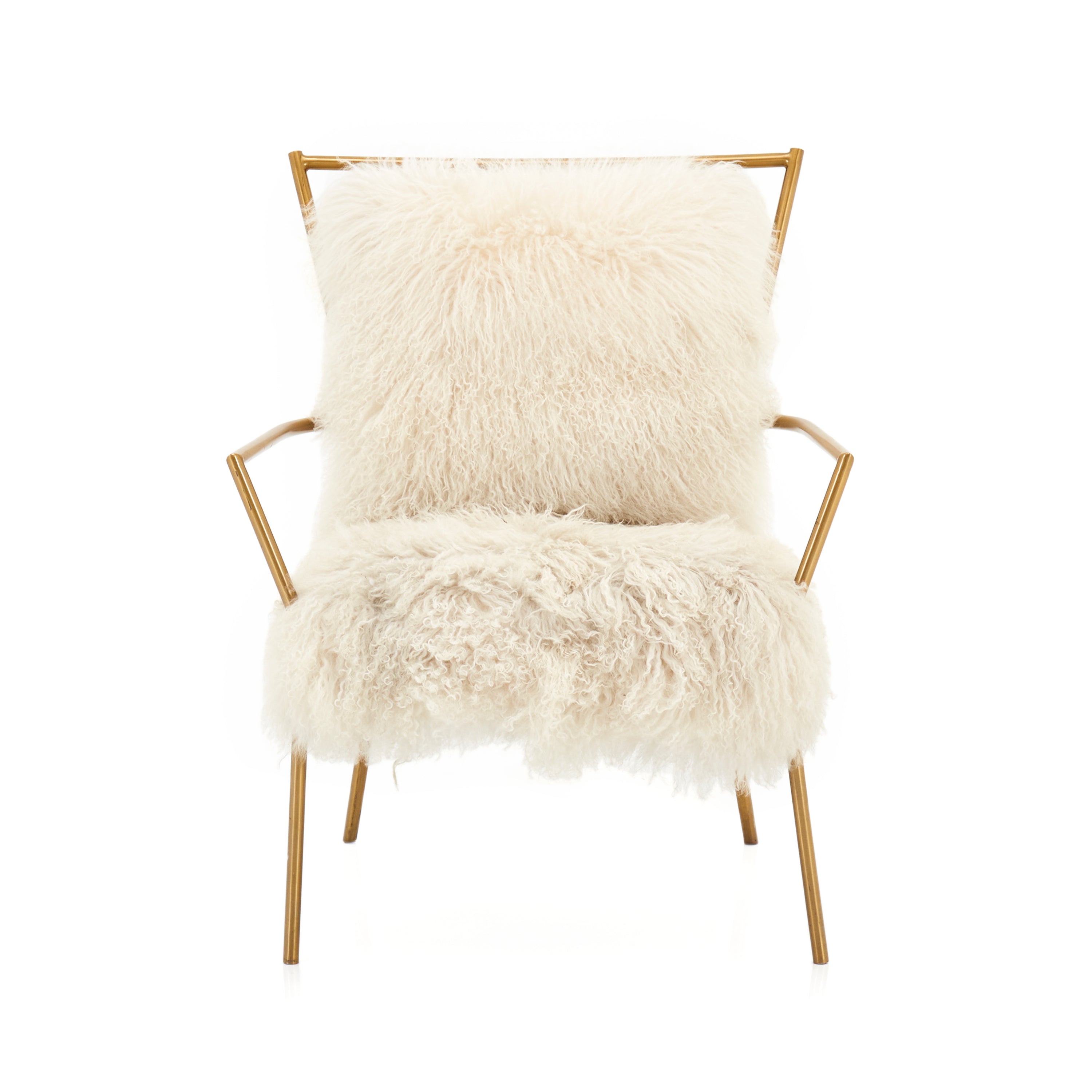 Details: Angular brass armchair with white sheepskin upholstery Dimensions: 35" H x 29" W x 29" D Quantity: 2