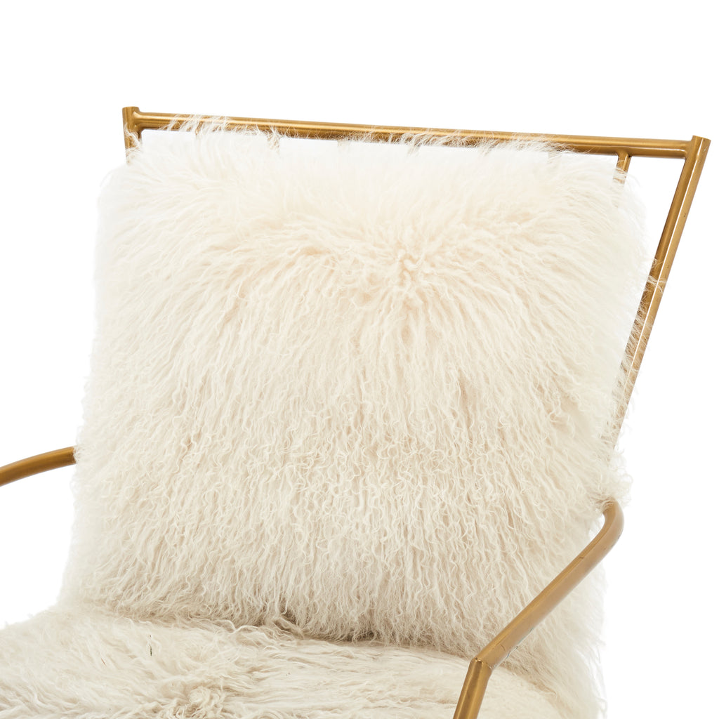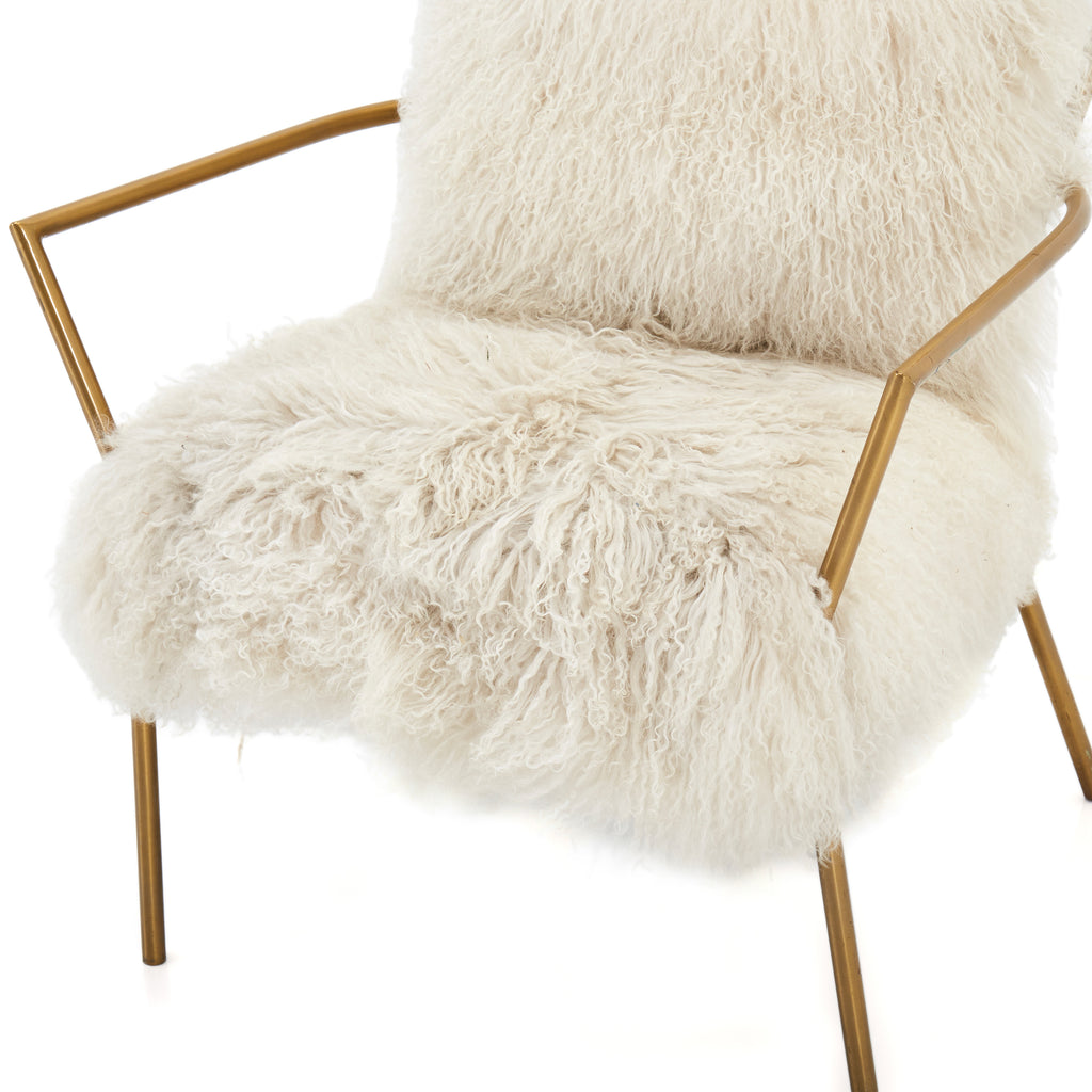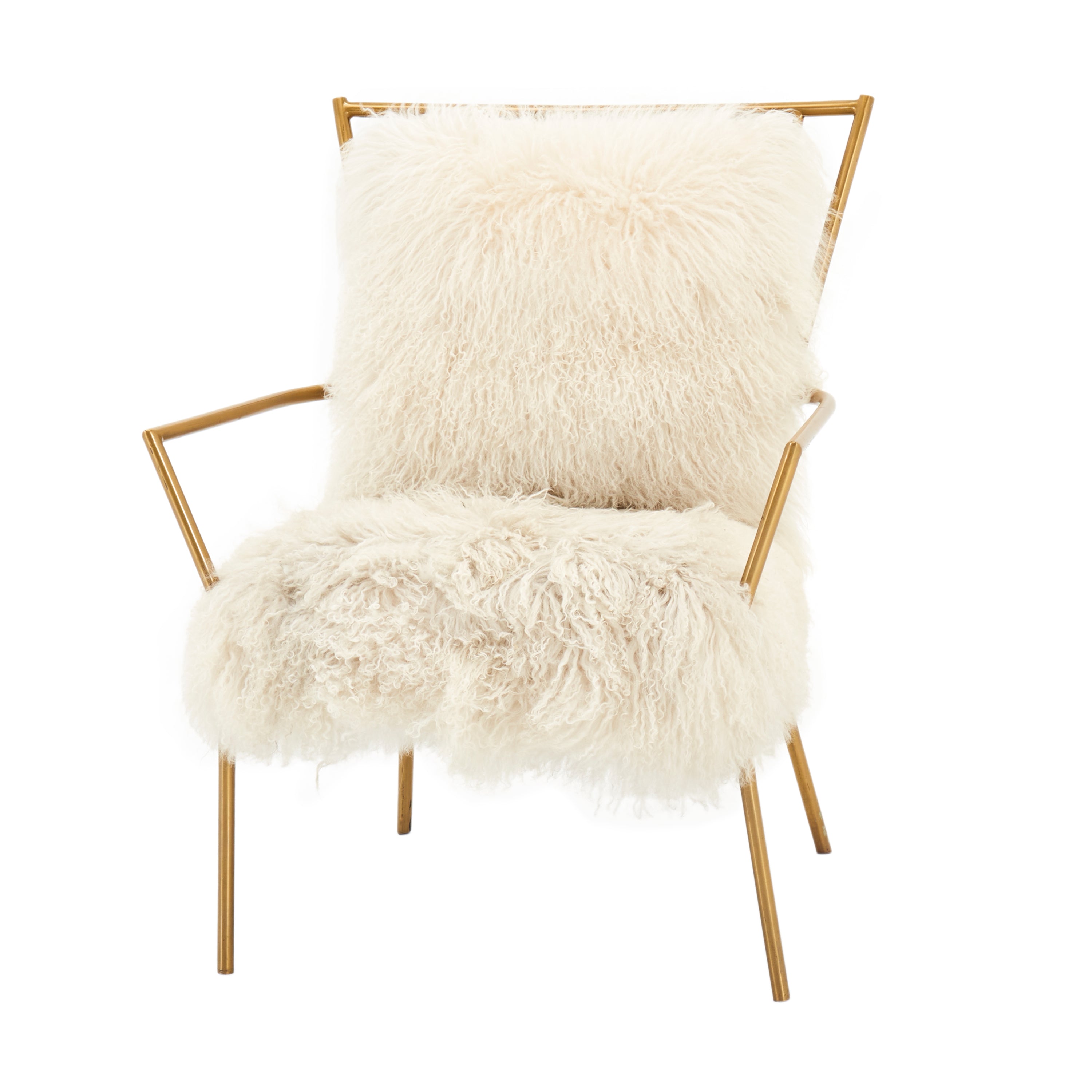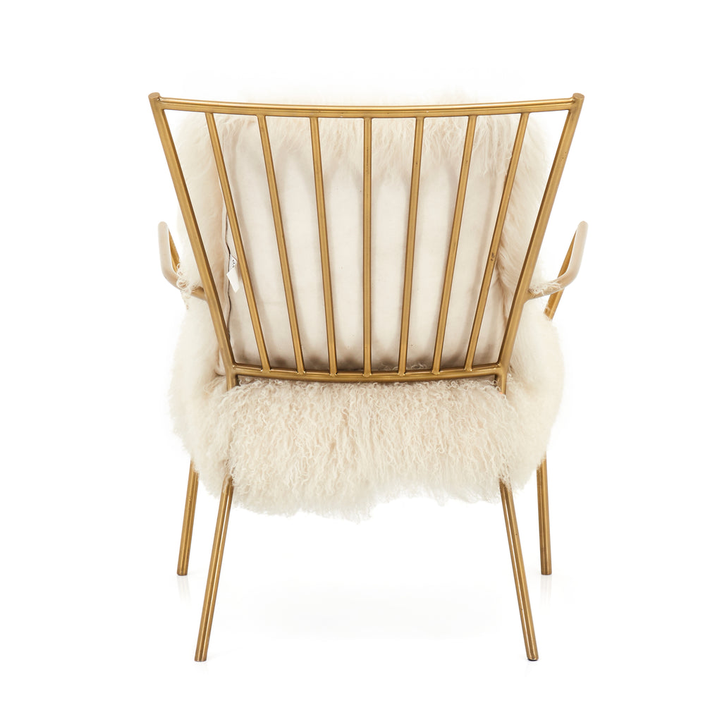 Details: Angular brass armchair with white sheepskin upholstery Dimensions: 35" H x 29" W x 29" D Quantity: 2