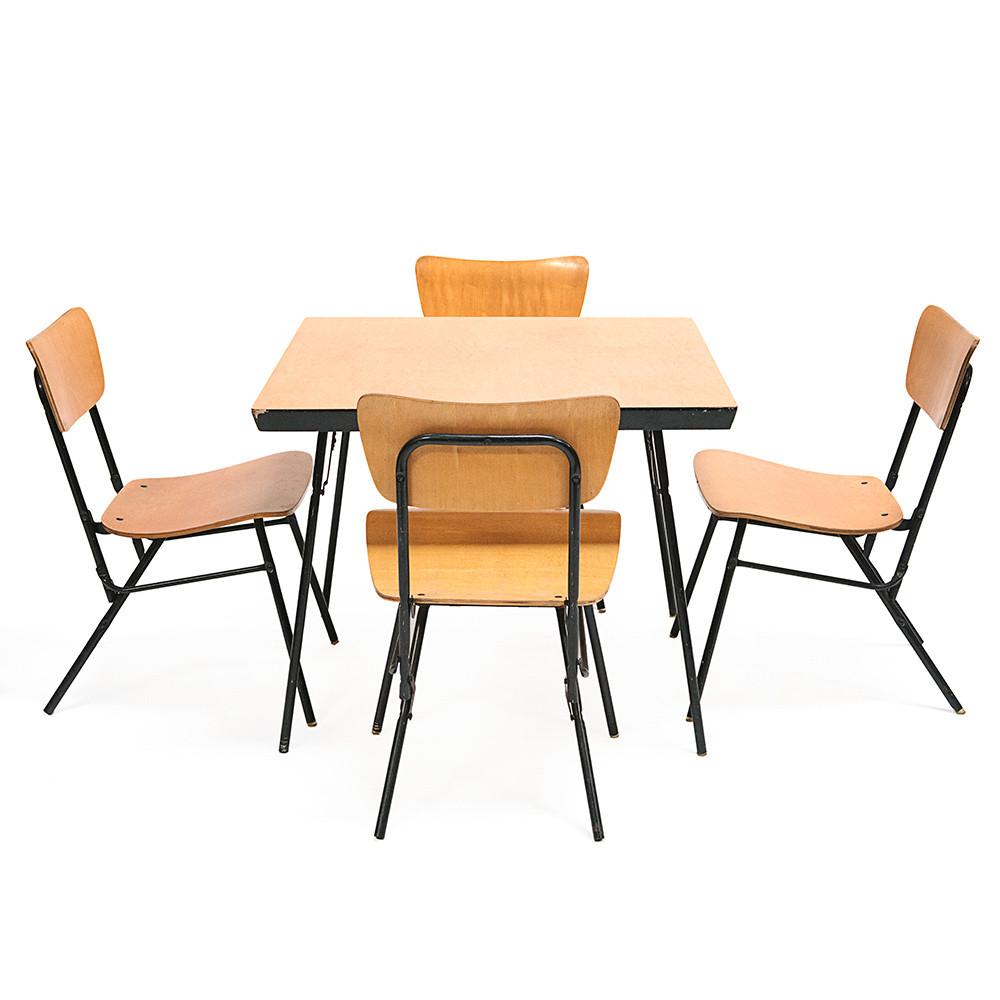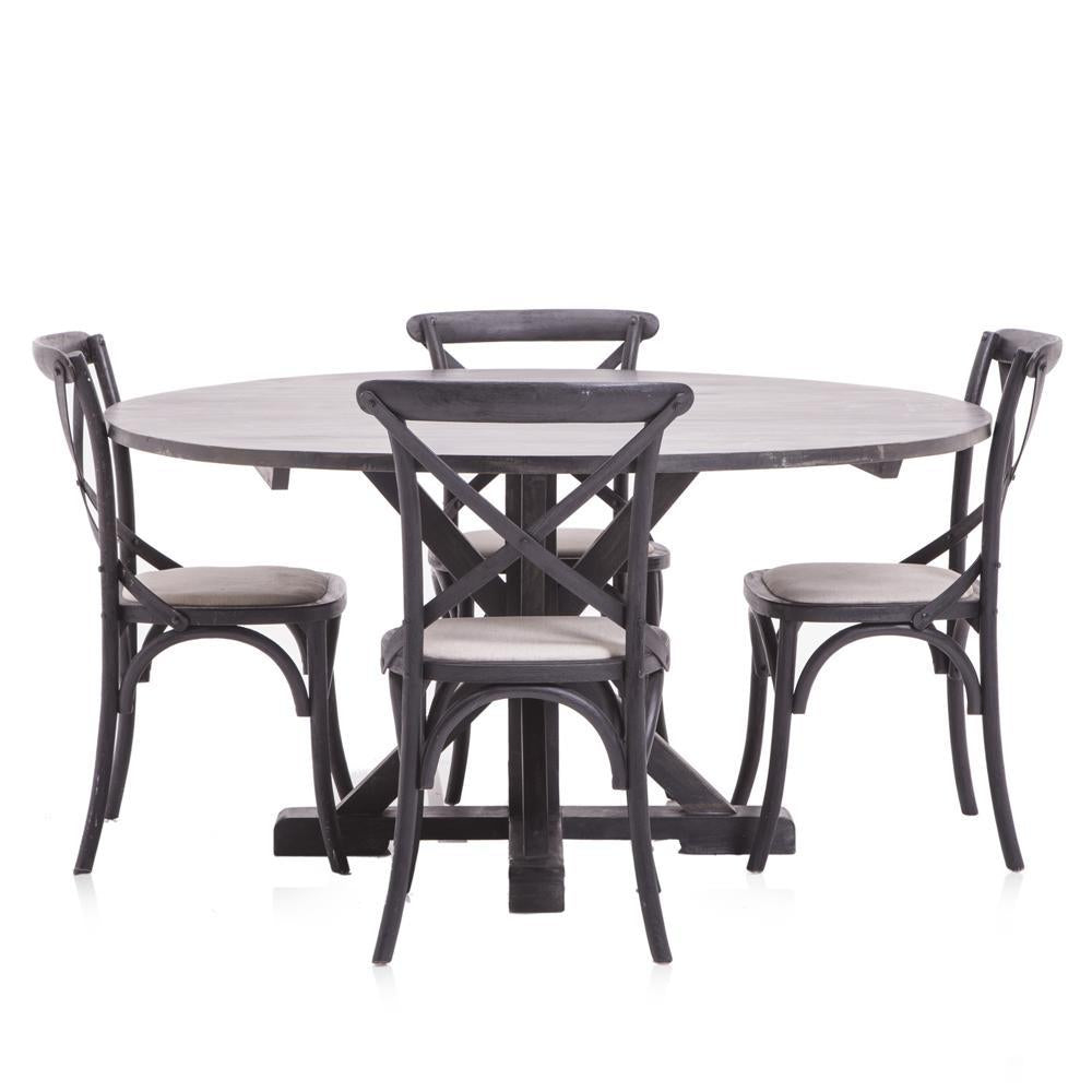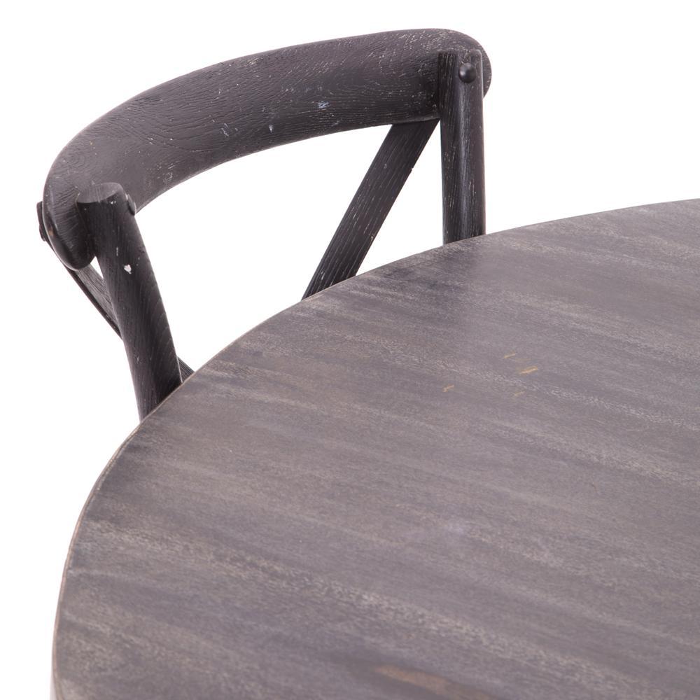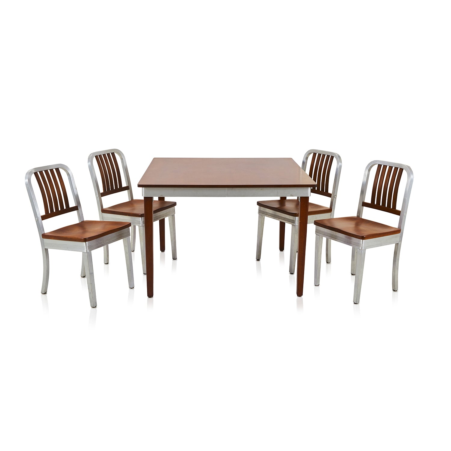 Details: Small wood dining table with curved rectangular top, two wooden legs and cross base (4 matching chairs also available) Dimensions: 29" H x 56"...