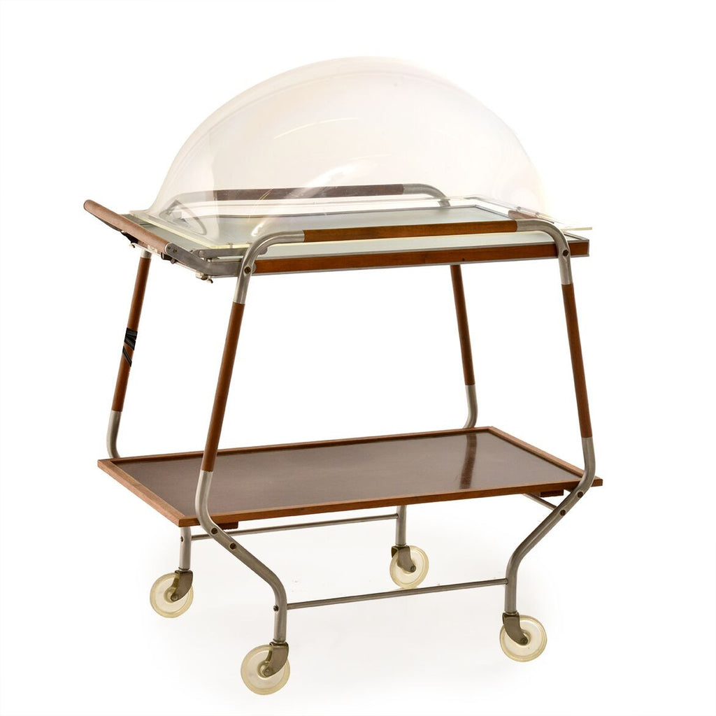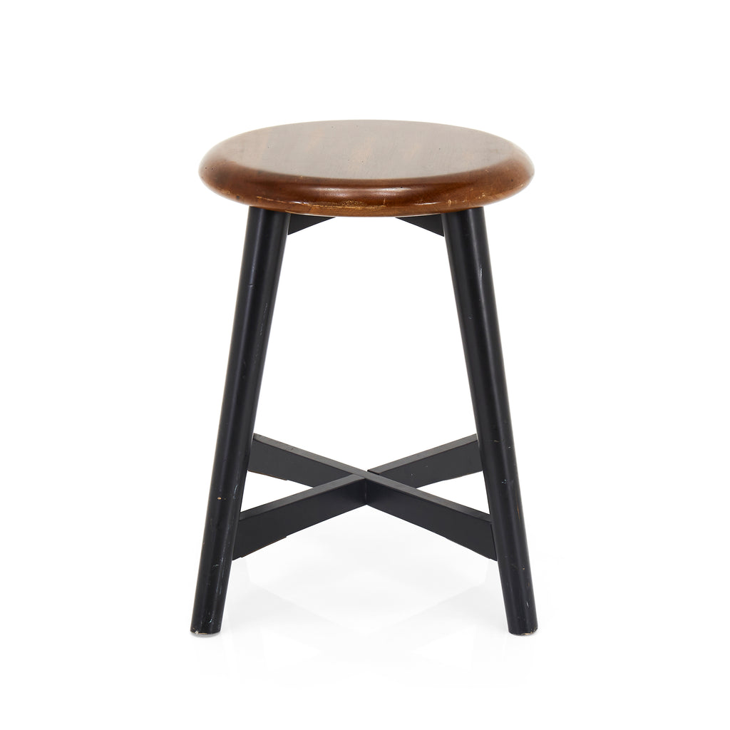 Details: Mid-century circular table with dark wood top and metal base. oval top version available as well (rented separately).Dimensions: 20" H x 18" W x...