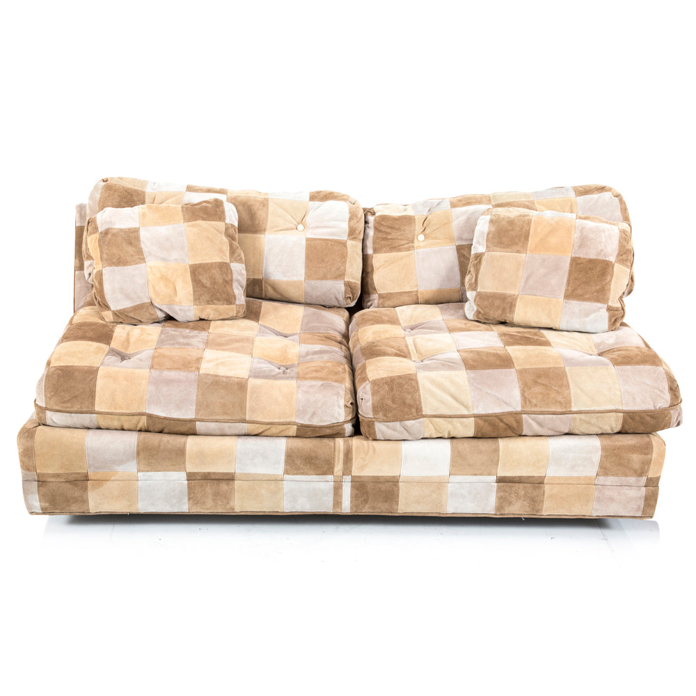 Details: Yellow plaid rolling wheels daybed sofa with adjustable brown leather cushions ($175 EACH)($350 for the pair) Dimensions: 36" H x 76" W x 31" D Quantity:...